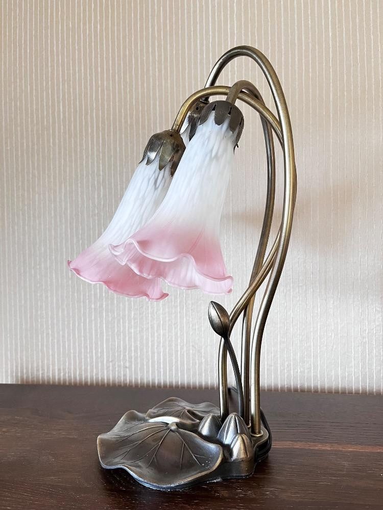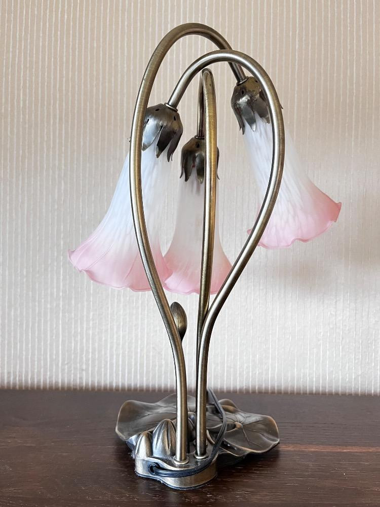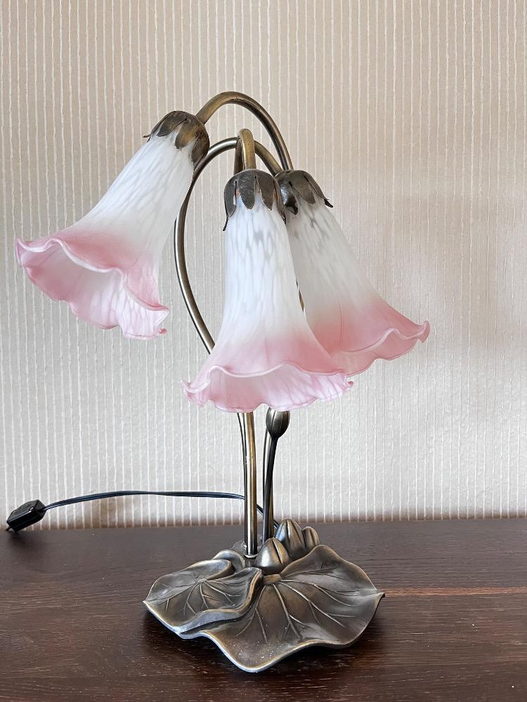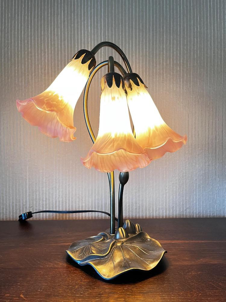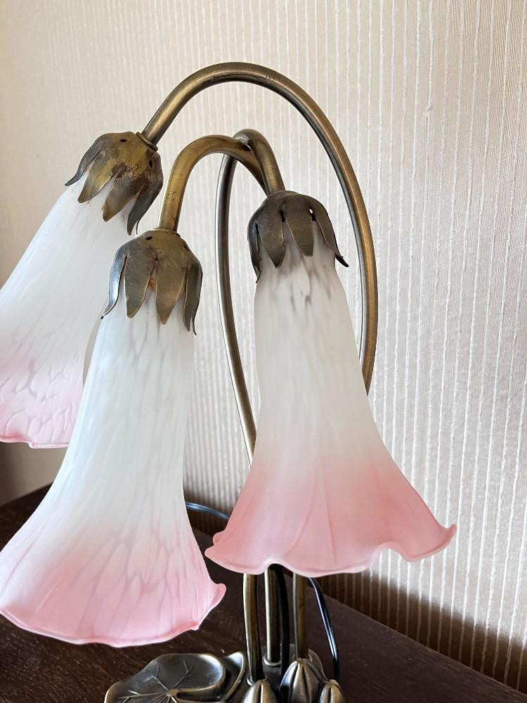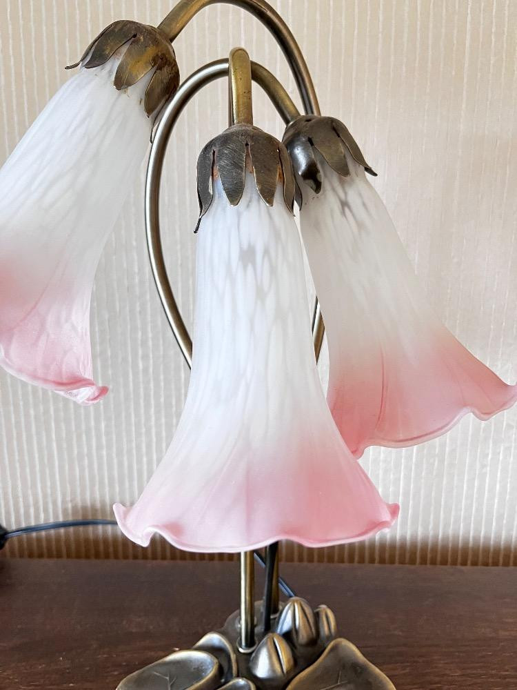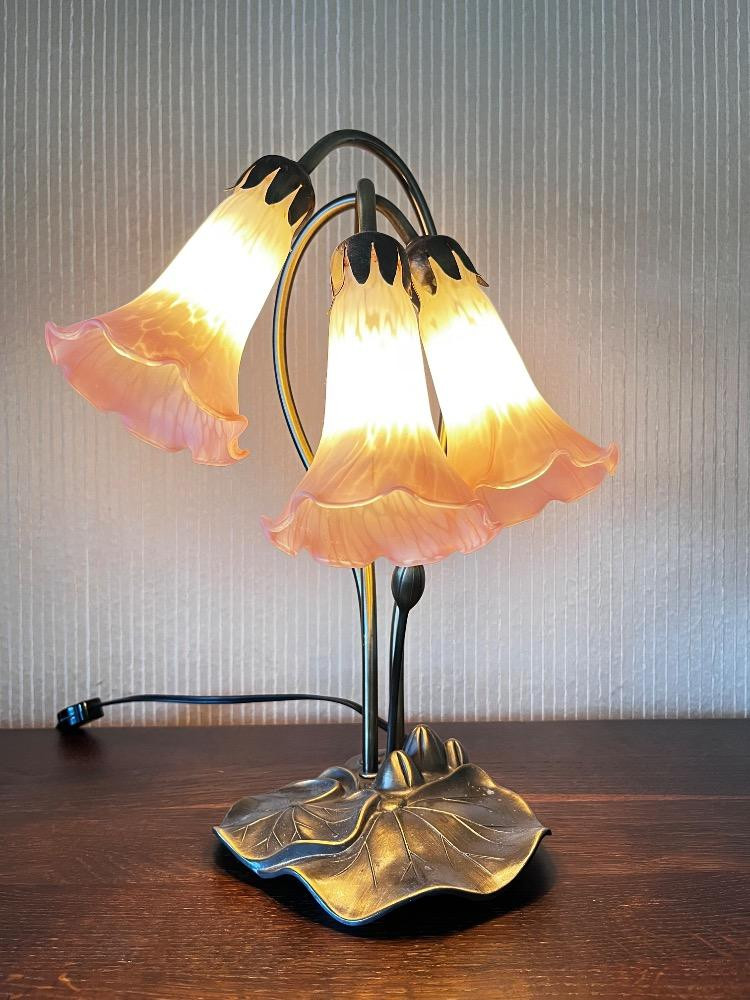 Tiffany Style Lily Pad Lamp w/ 3 Tulip Glass Shades. Lamp 16" H