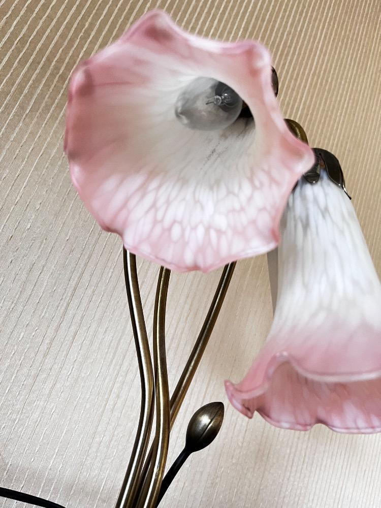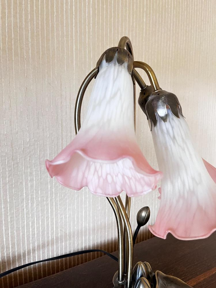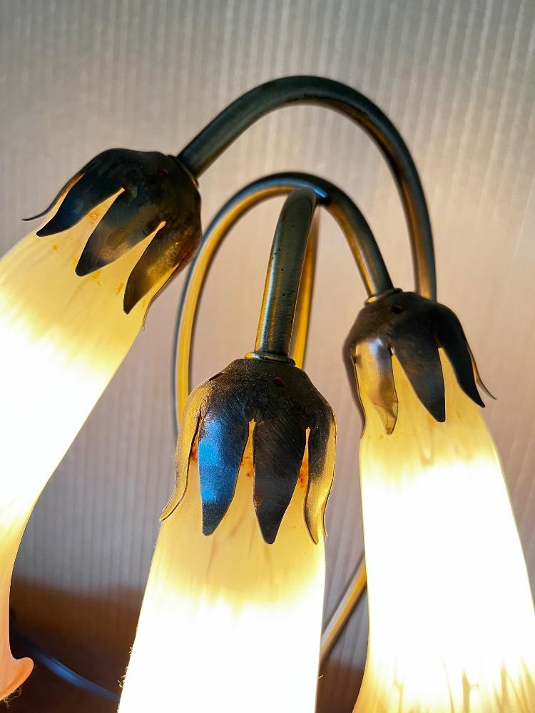 Lot # 33 - Tiffany Style Lily Pad Lamp w/ 3 Tulip Glass Shades