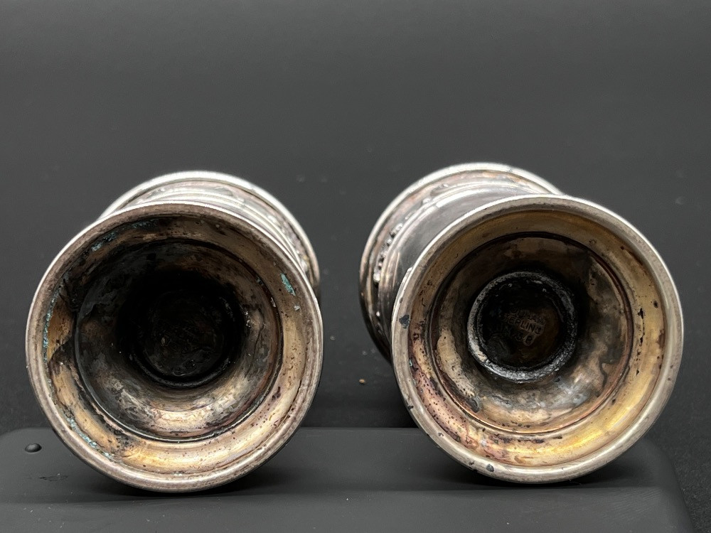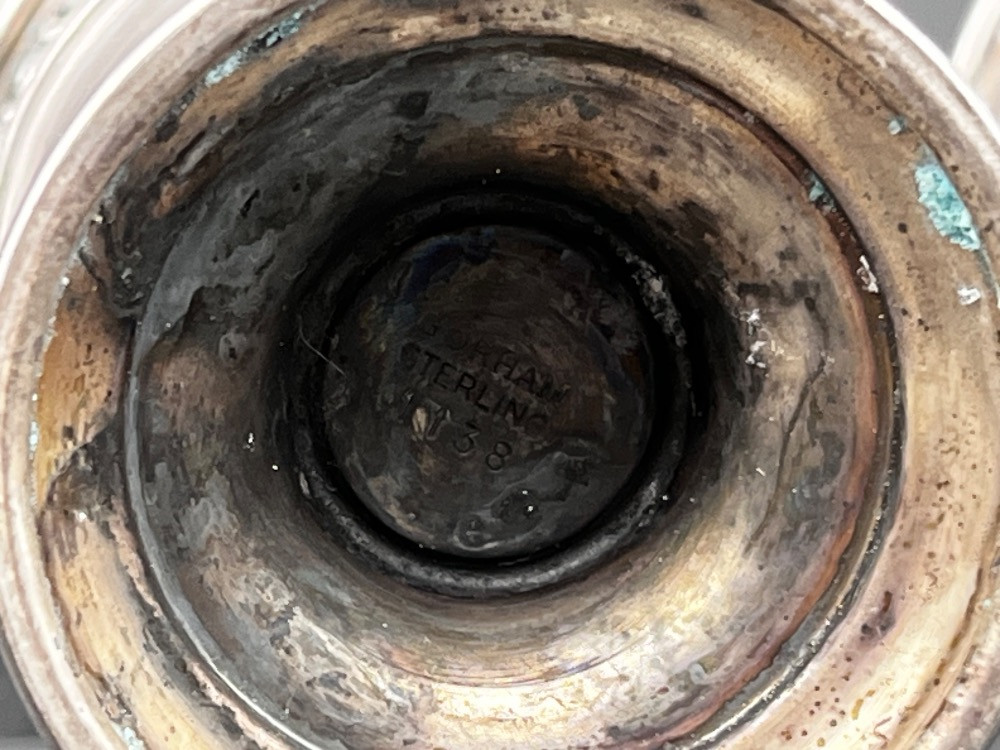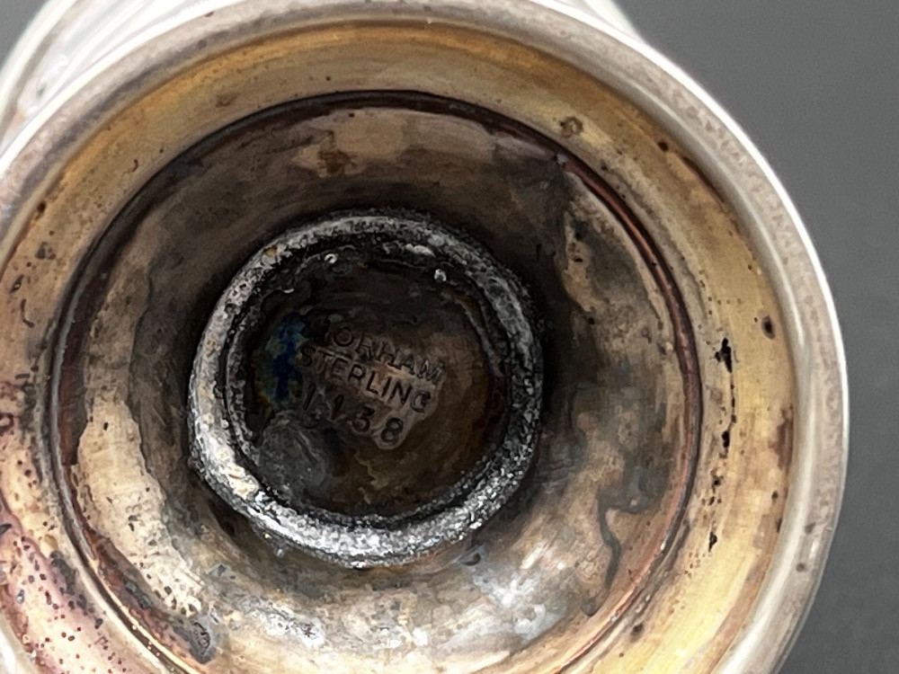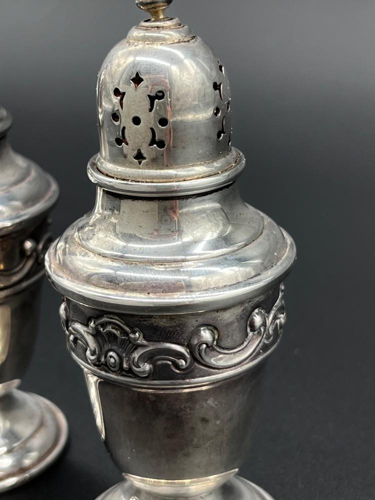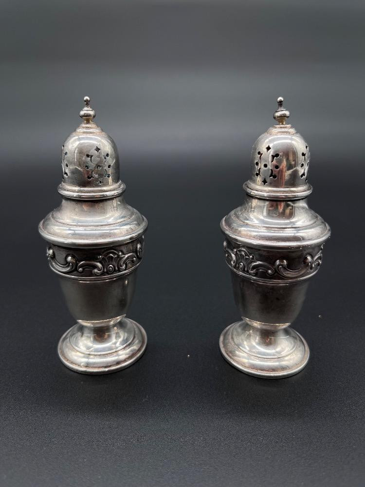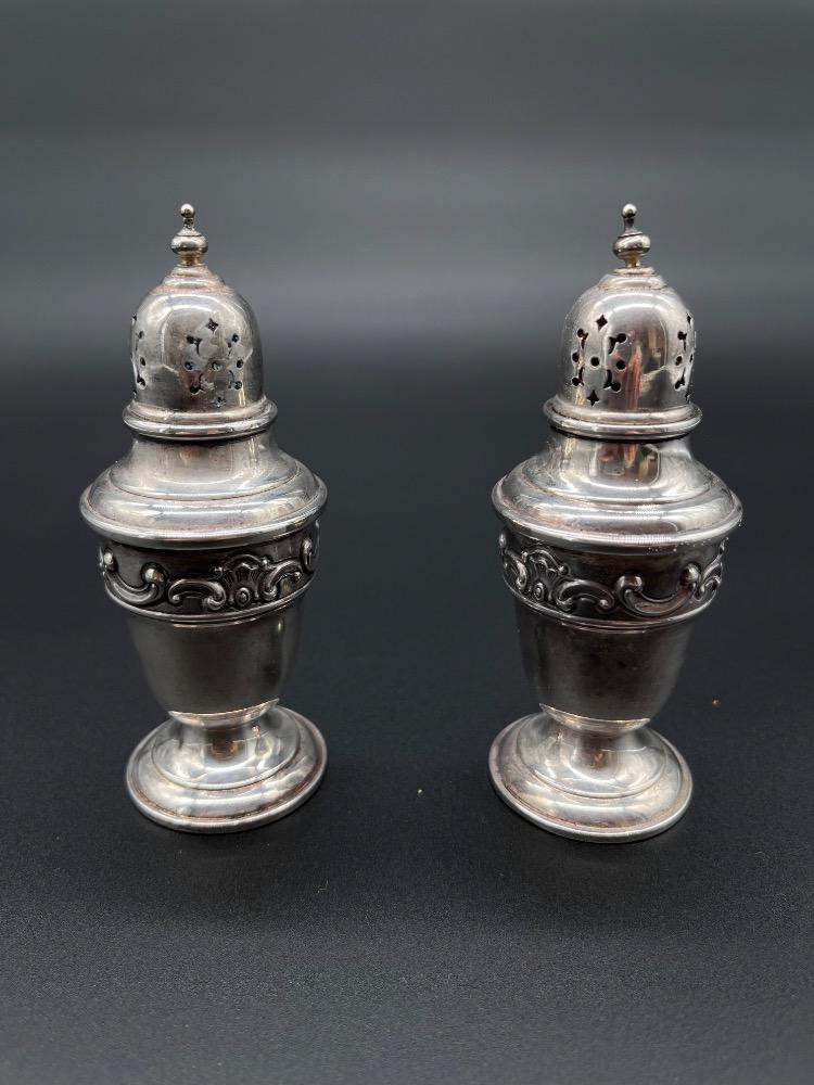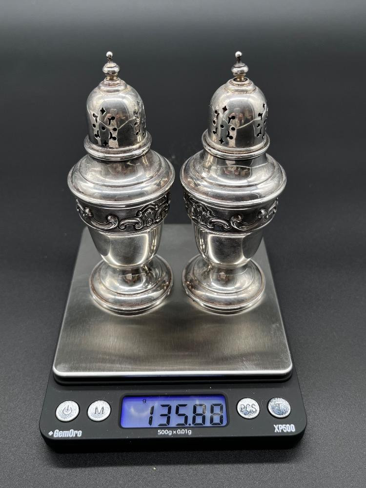 Vintage Gorham Sterling Silver Salt & Pepper Shakers – 135.88g. Disclaimer: We do not test the metals of the items listed for auction. By placing a bid, you acknowledge and agree that you are purchasing the item "as is" and without any guarantee of metal quality. We do not offer refunds based on metal content or purity.