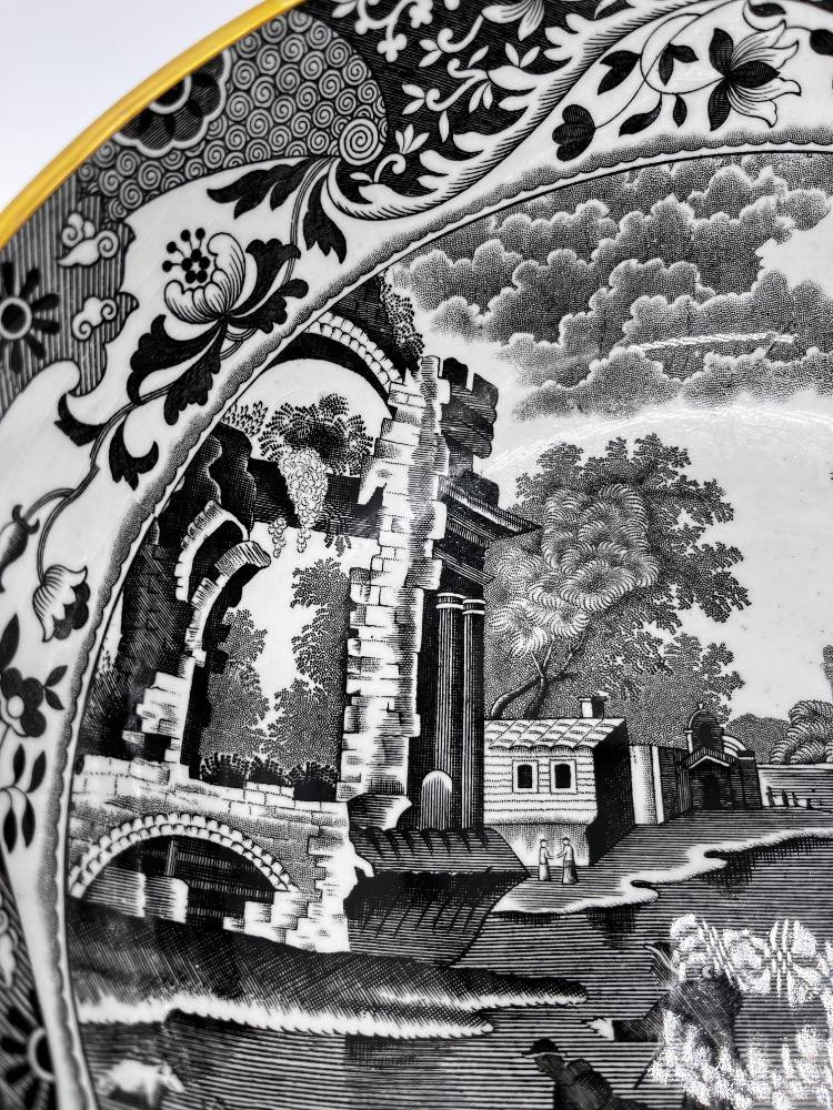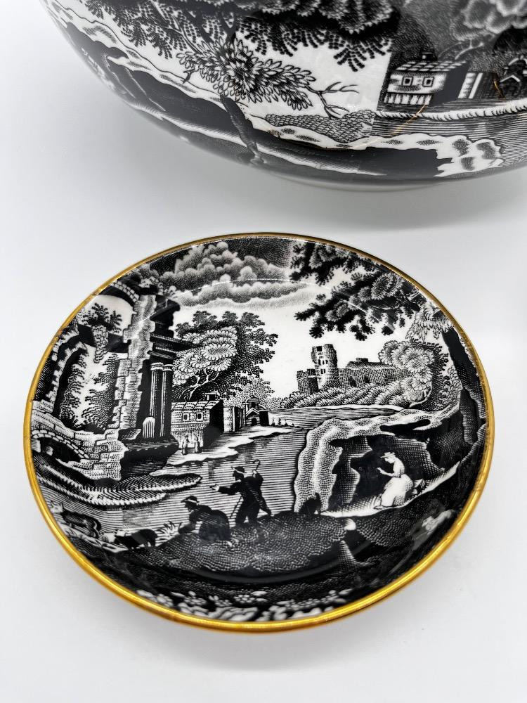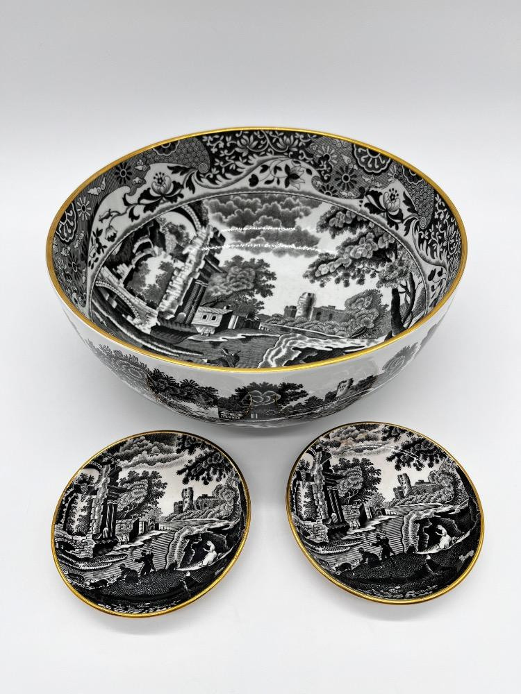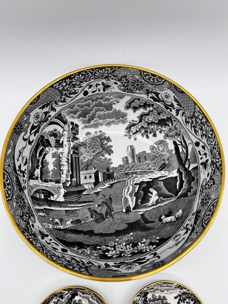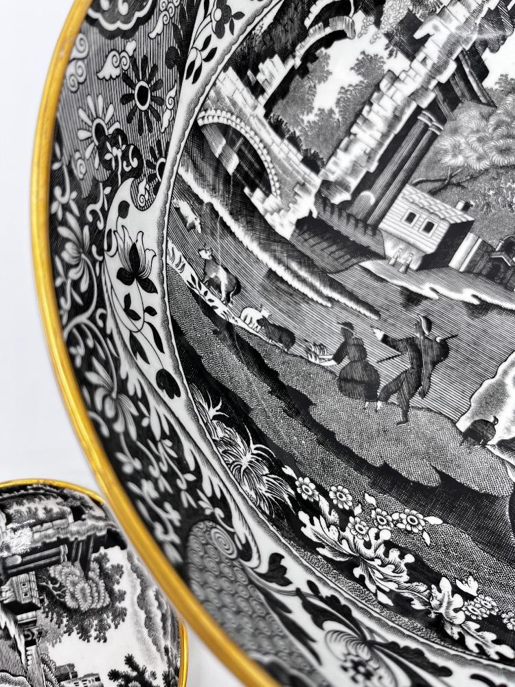 Lot # 40 - Spode Italian Black & Gold Bowl w/ Two Plates – England, c.1816