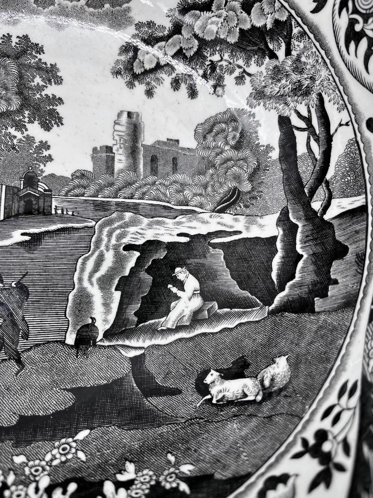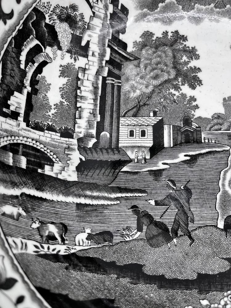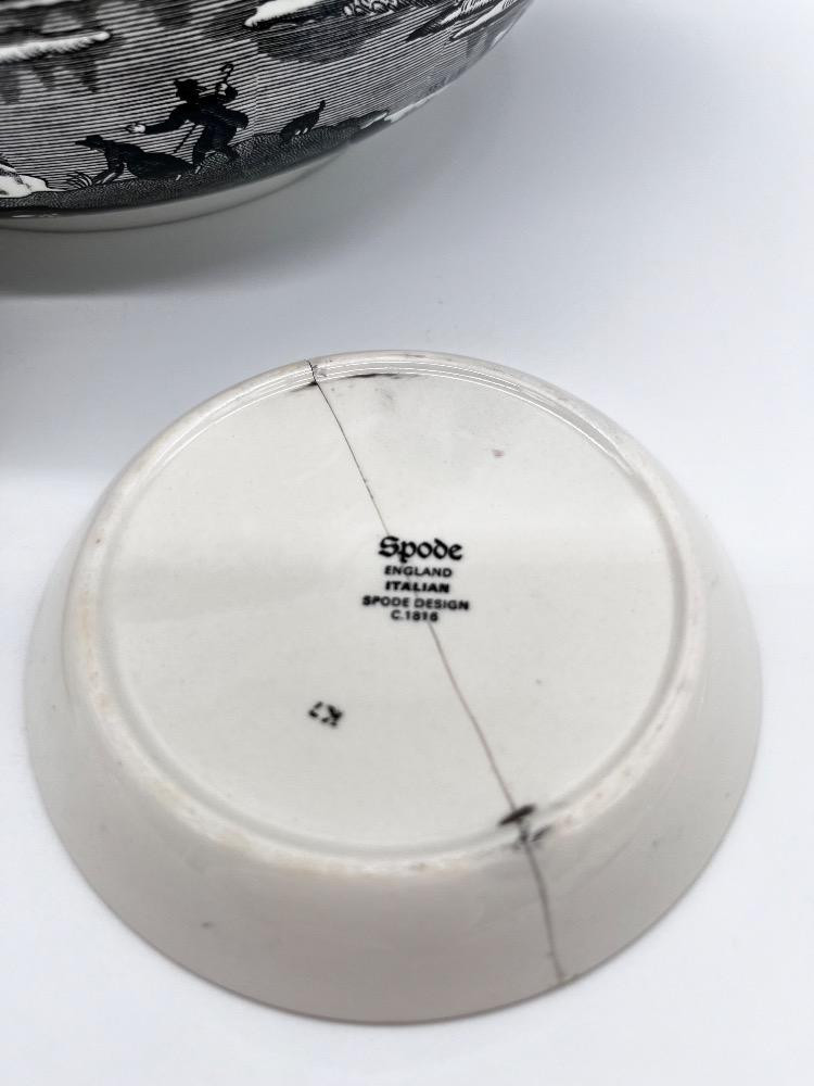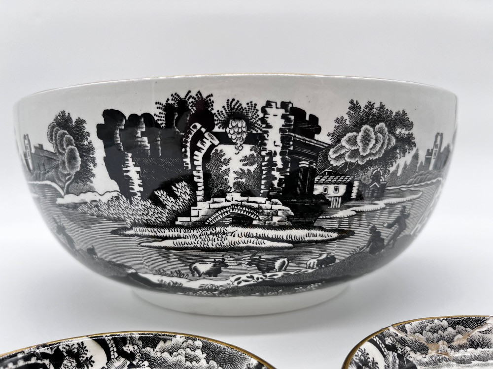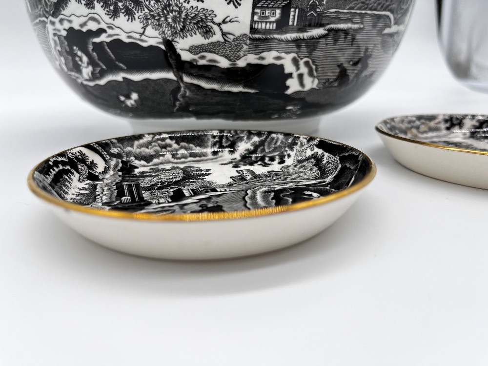 Lot # 40 - Spode Italian Black & Gold Bowl w/ Two Plates – England, c.1816