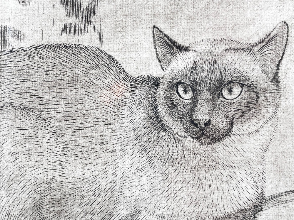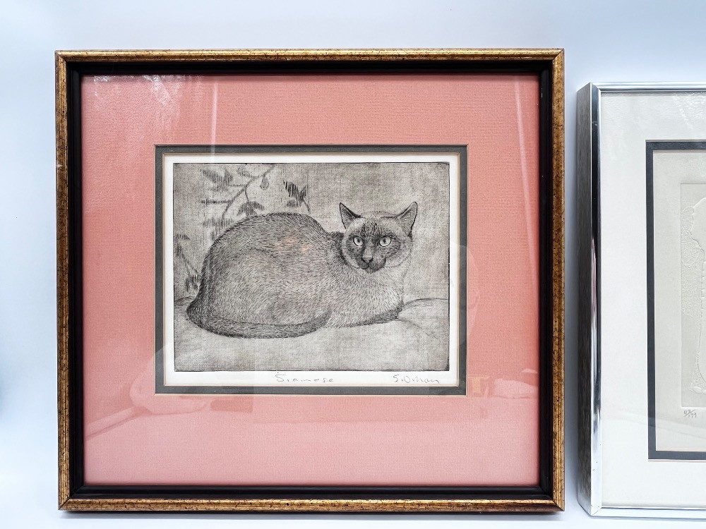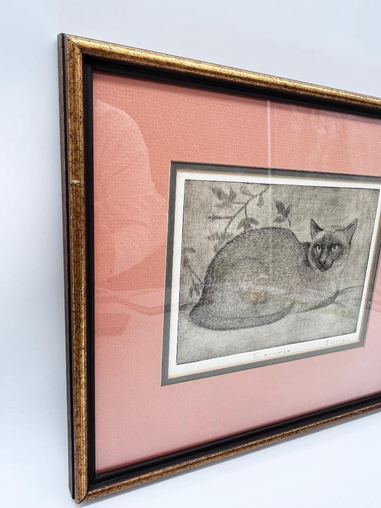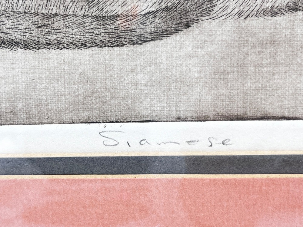 Sheridan Oman 'Siamese' Etching – Signed Framed Cat Art Print - 13" H x 14" W