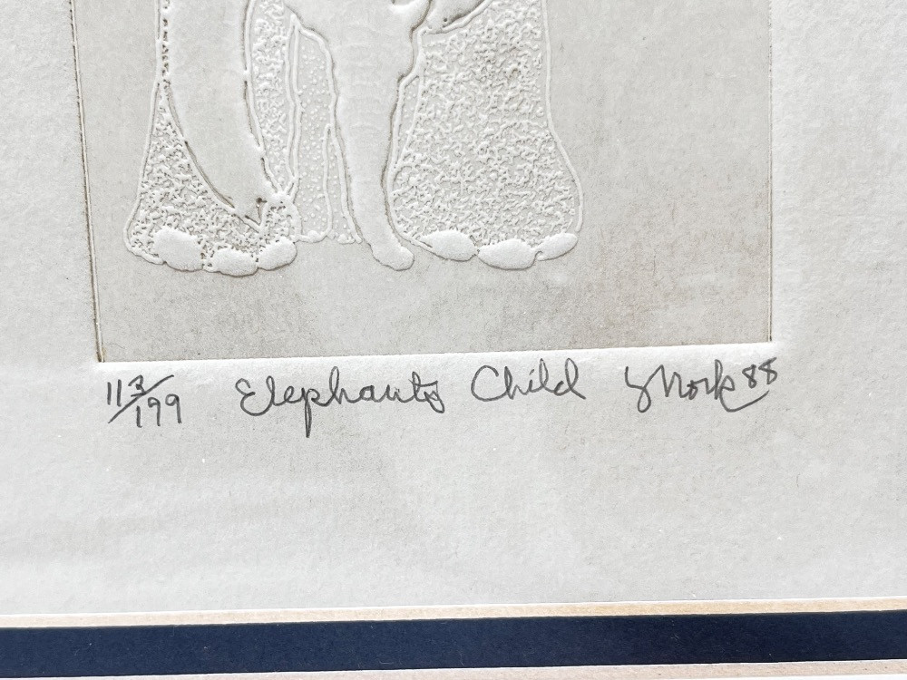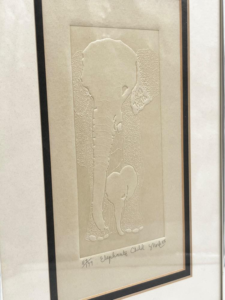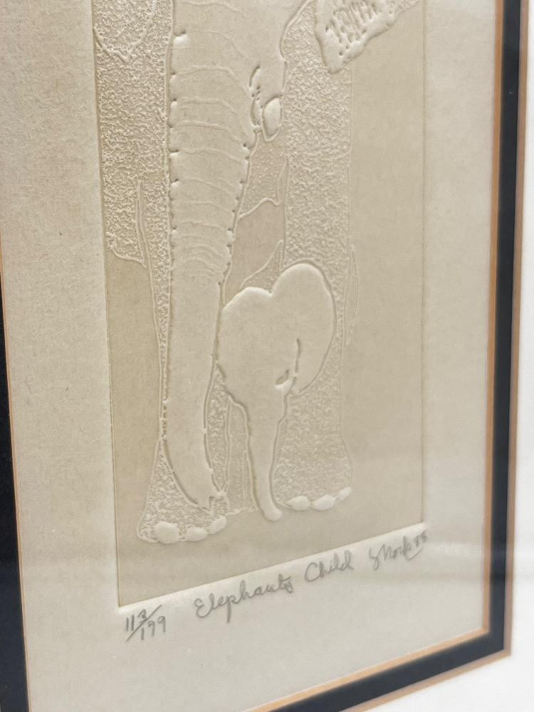 Sheridan Oman 'Siamese' Etching + Elephant's Child Embossed Print. Embossed Signed Artwork – Elephant's Child By American Renaissance, Inc - 12" H x 8" W