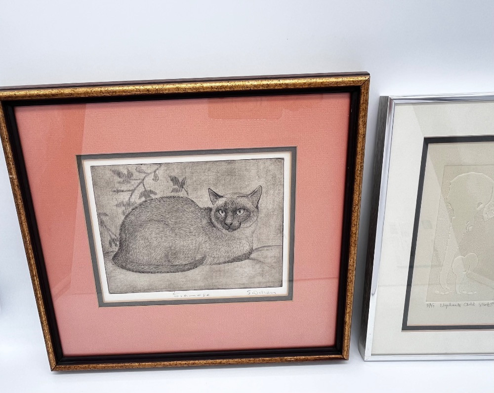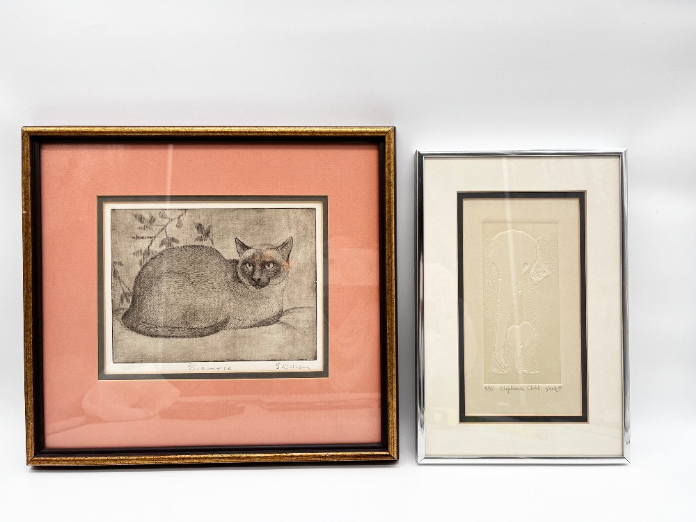 Lot # 41 - Sheridan Oman 'Siamese' Etching + Elephant's Child Embossed Print