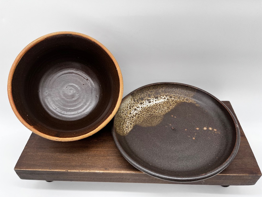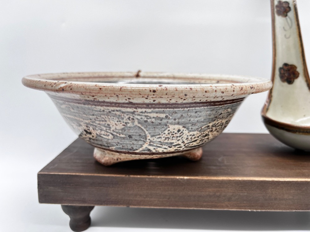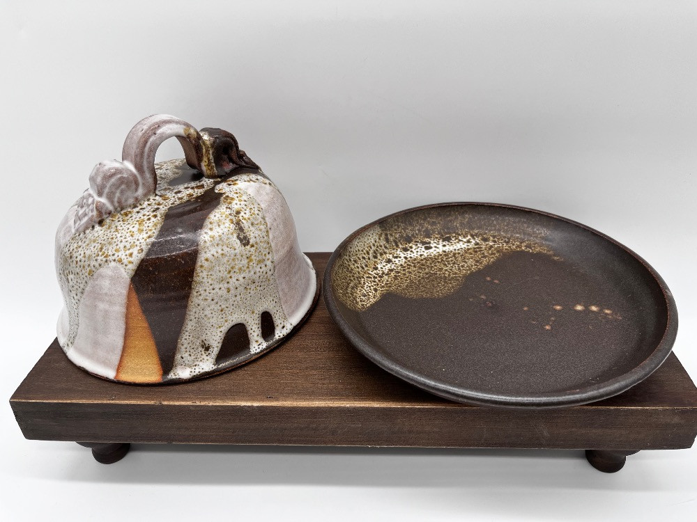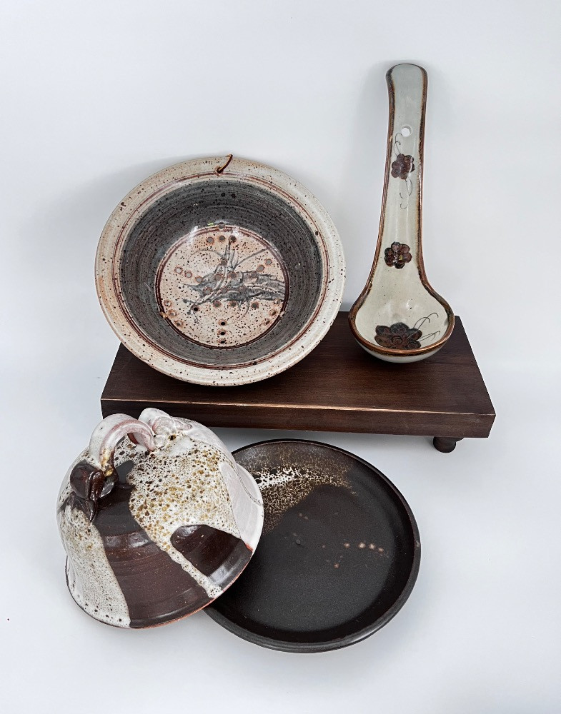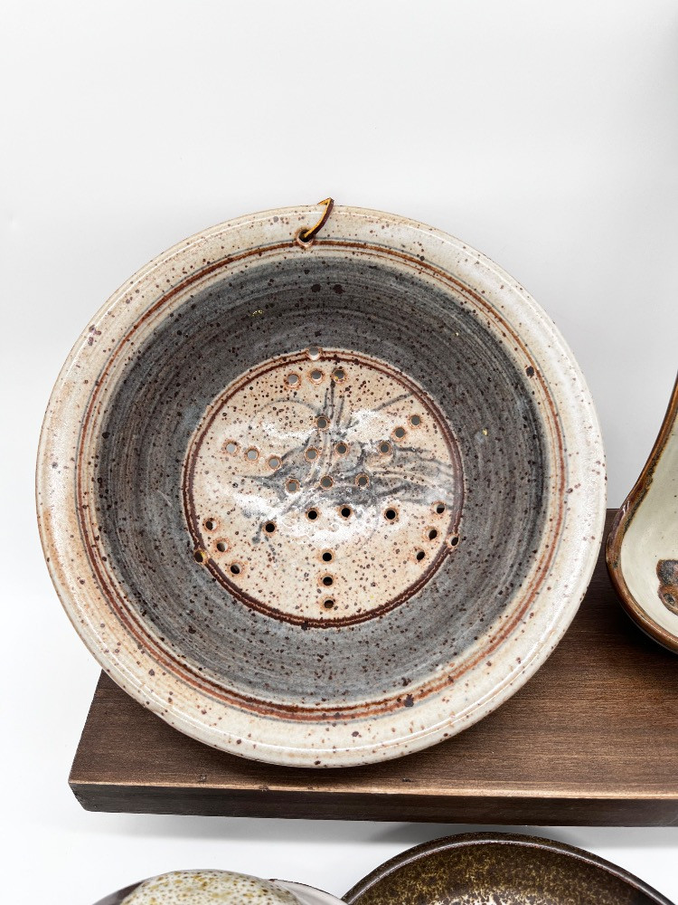 Lot # 53 - Vintage Ken Edwards Ladle & Studio Pottery Butter Bell, Colander Set