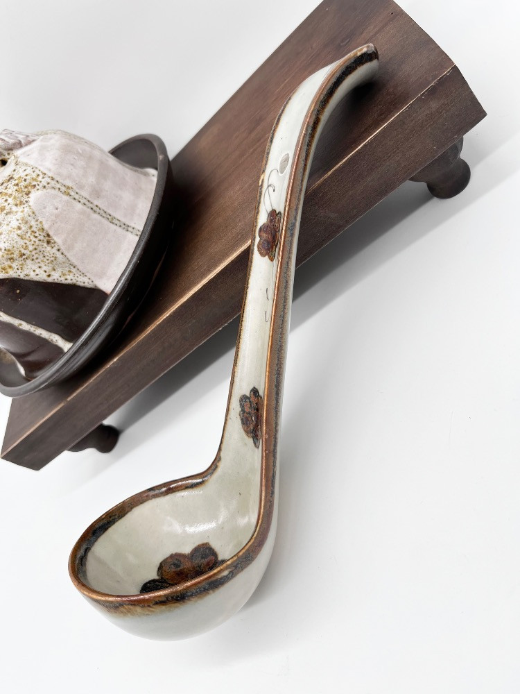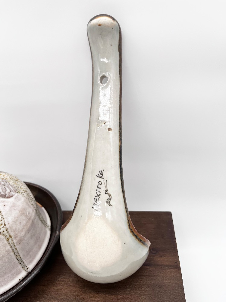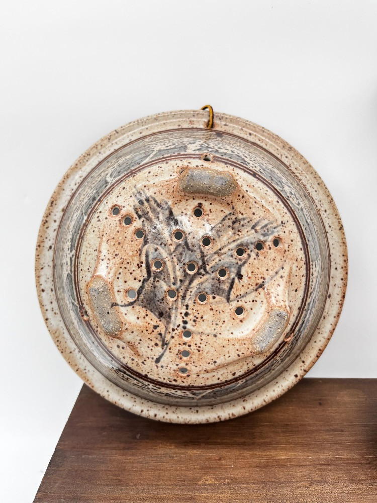 Vintage Ken Edwards Ladle & Studio Pottery Butter Bell, Colander Set. Vintage Ken Edwards Hand-Painted Mexican Ladle - 3 3/4" W x 11" H Butter Bell - 7 1/2" W x 5 1/2" H Colander - 9" W x 3" H