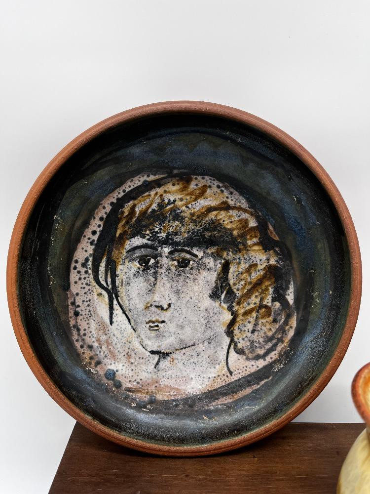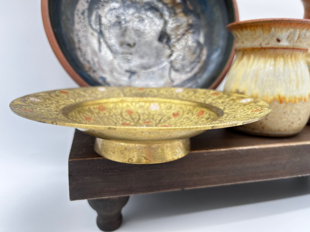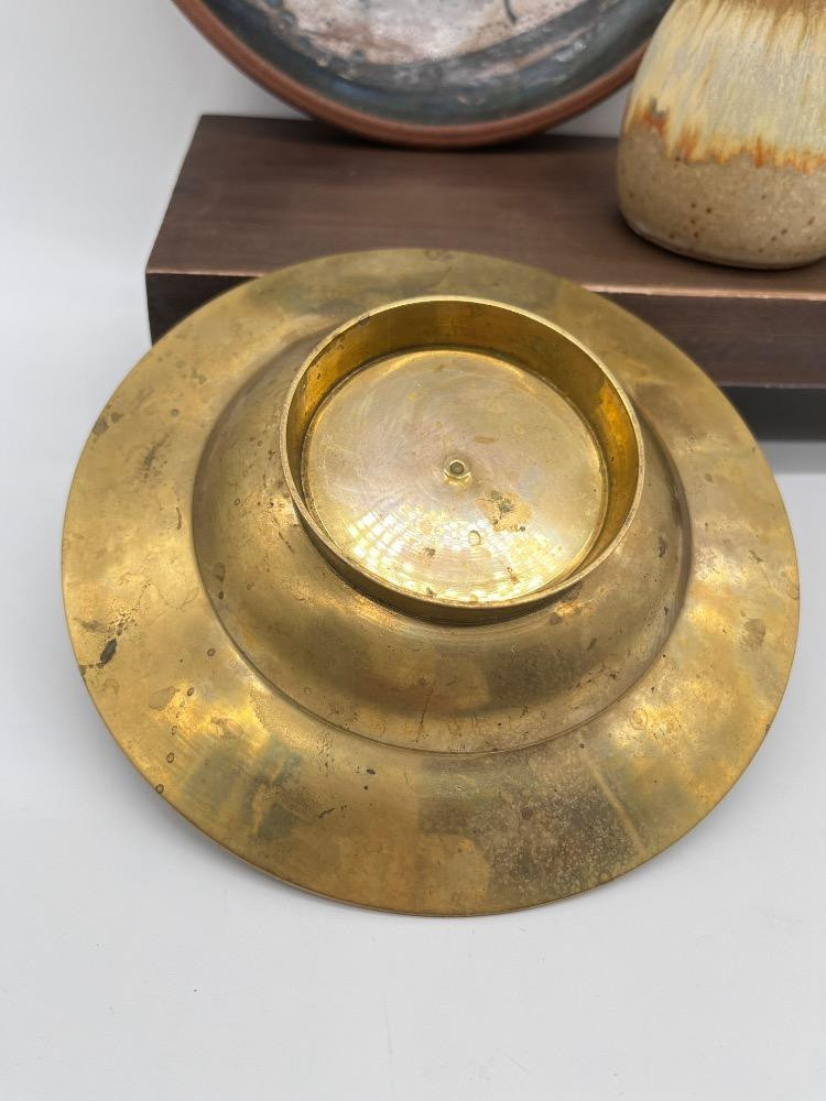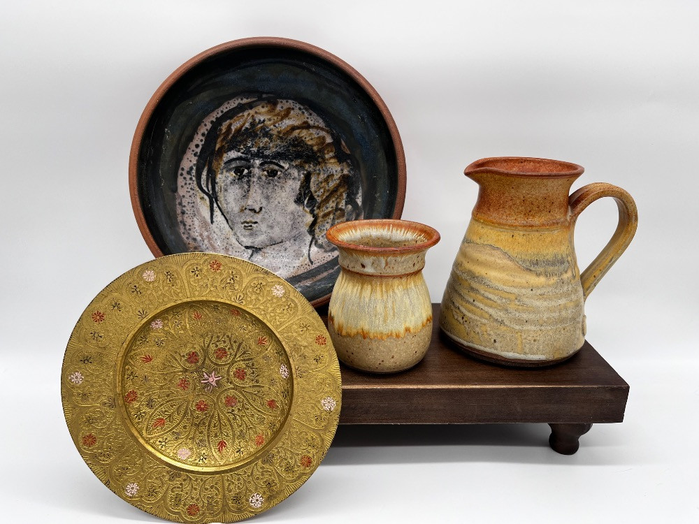 Egyptian Brass Bowl & Mixed Pottery, Including Val Knight Signed Piece & More! Egyptian Brass Pedestal Serving Bowl - 7" Plate Portrait Design - 9 1/2" x 2" H