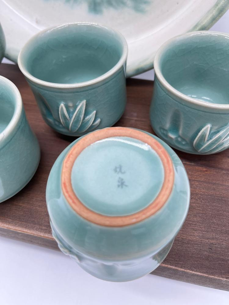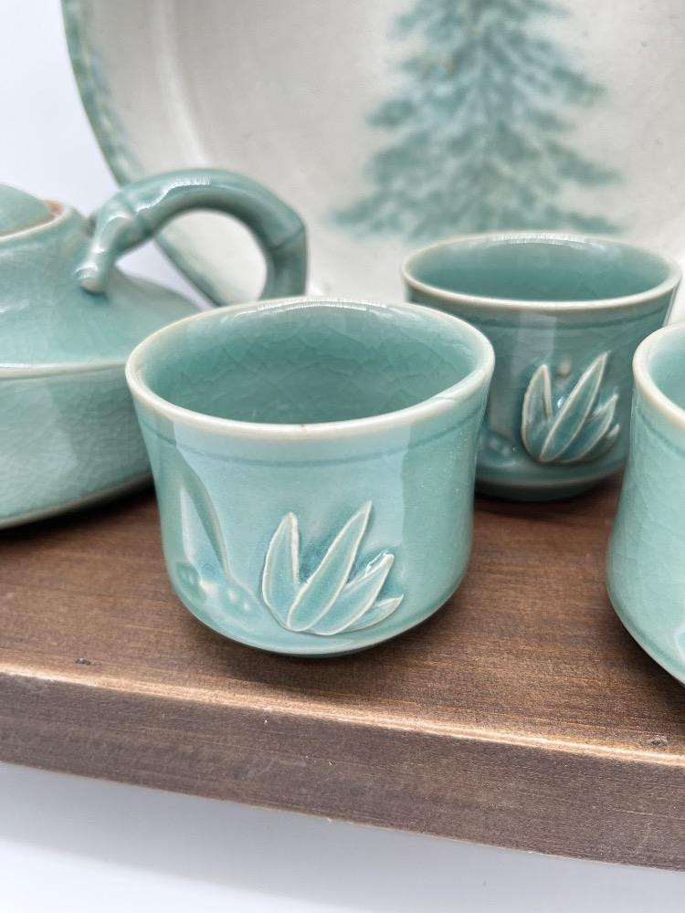 Antique Korean Celadon Teapot Set – Joseon Dynasty Royal Art Porcelain 2" H Cups