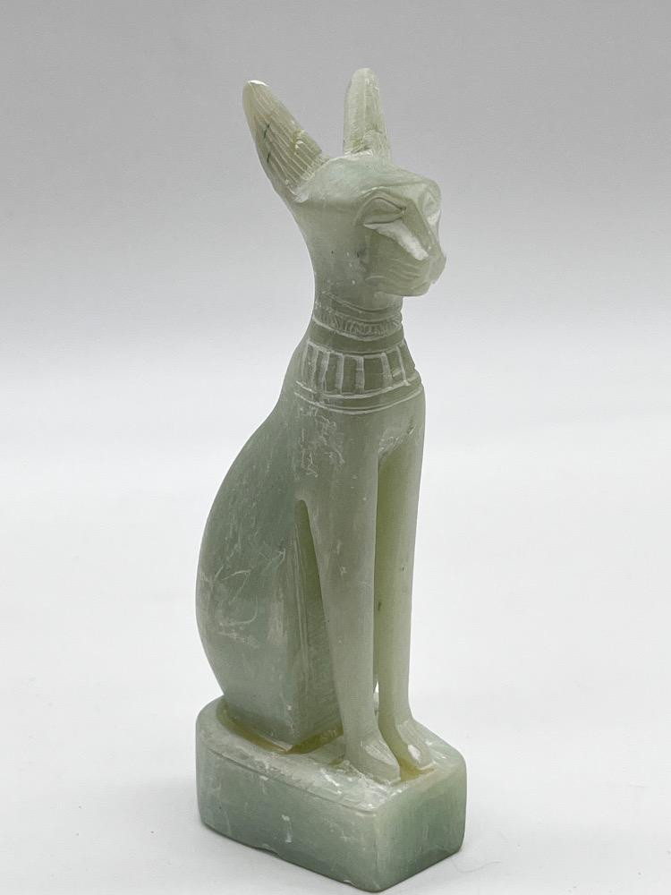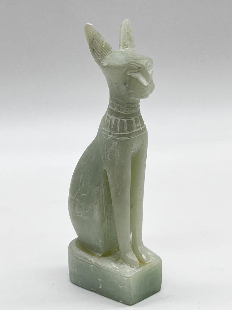 Lot # 63 - Egyptian Bastet Cat Figurine – Hand-Carved Alabaster, Dated 1999