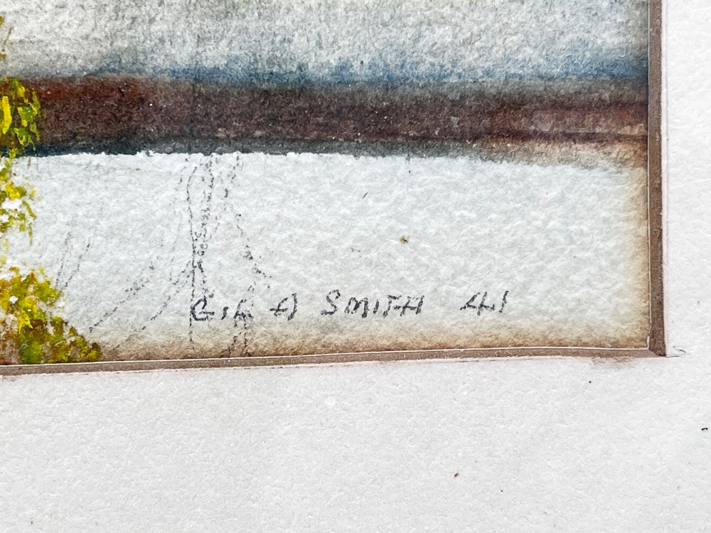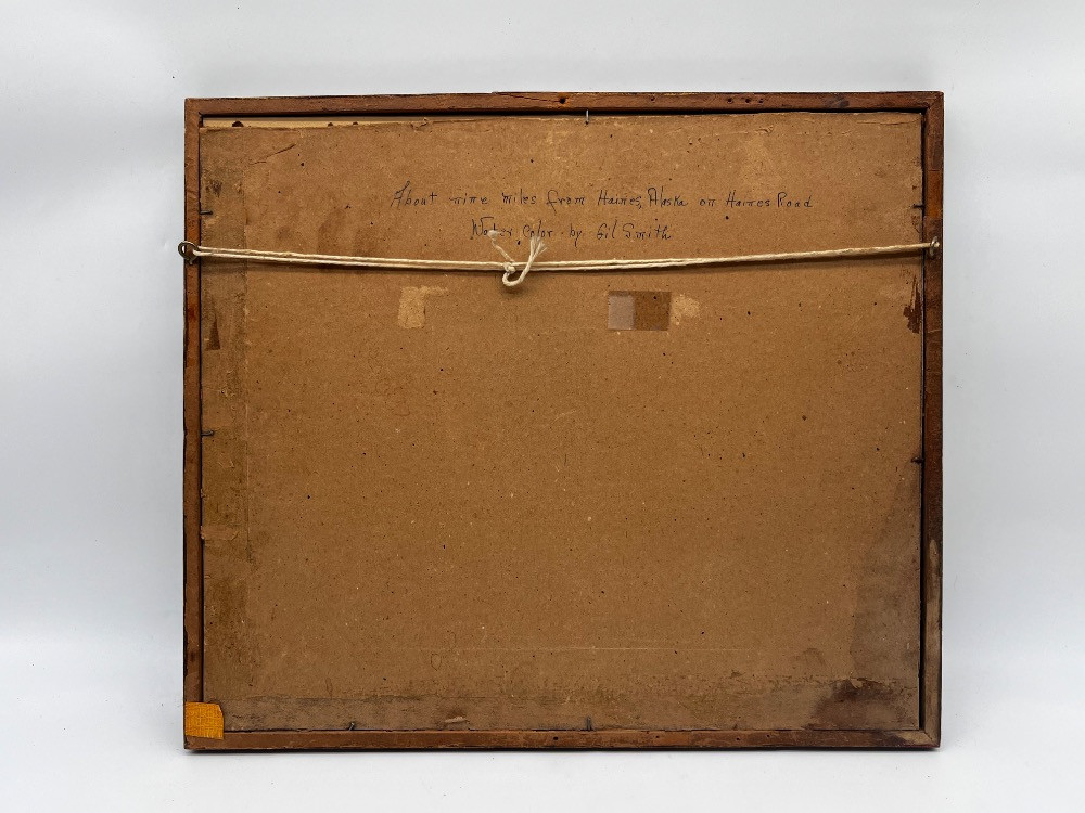 Framed "Haines Road, Alaska" by Gilbert Smith – Signed. 14 1/2" W x 13" H Damage On Top Of Wood Frame.