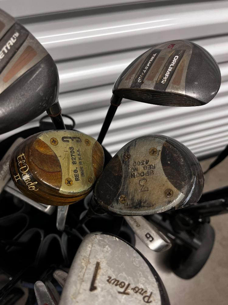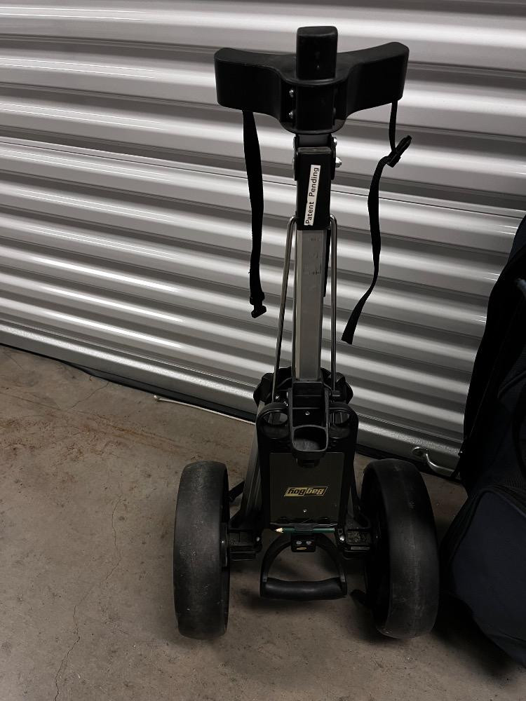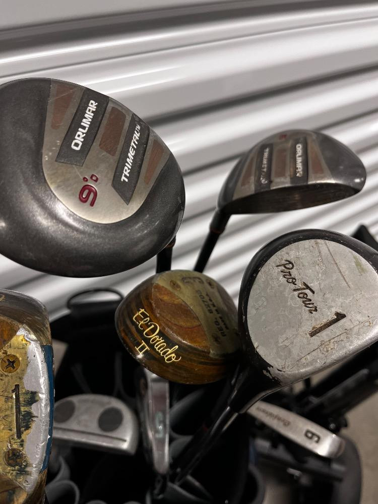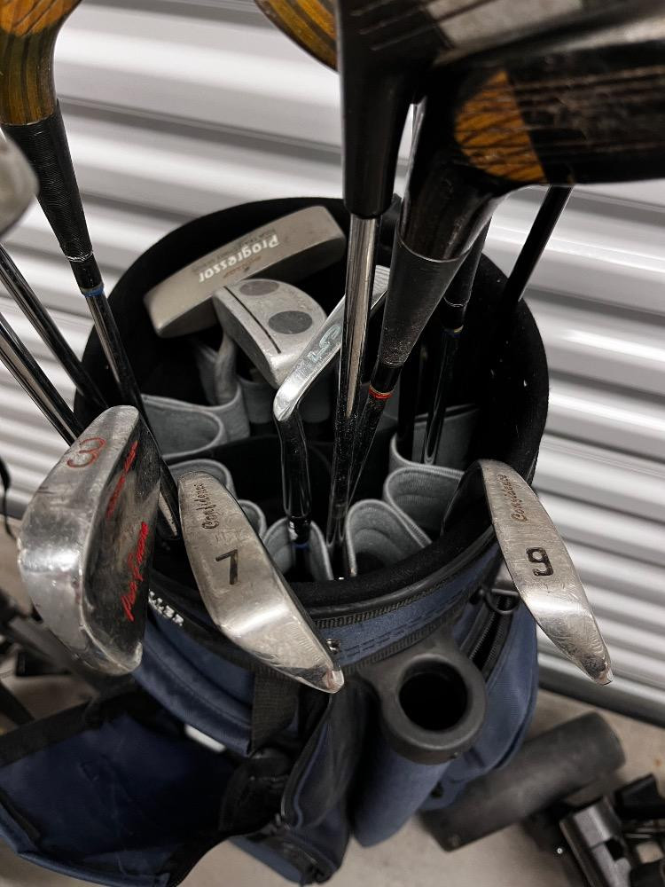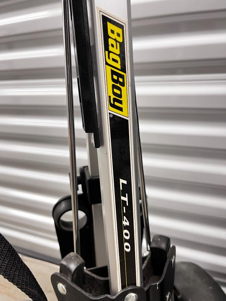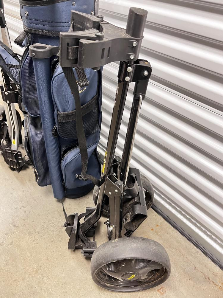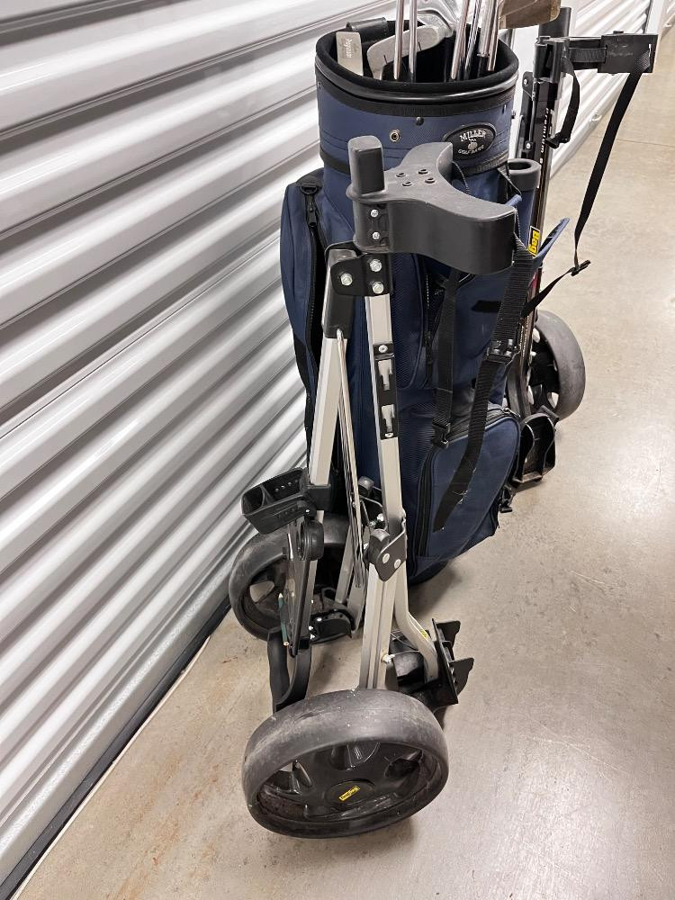 Vintage Golf Set – Miller Bag, Bag Boy Carts & Assorted Branded Clubs. Bidding on this lot is an agreement that: (1.) You will have at least 2 capable, able bodied persons to lift and load at a minimum. (2.) You will bring a hand truck and/or any other tools needed to remove this item. If these steps are not followed your item will be forfeit and no refund given.