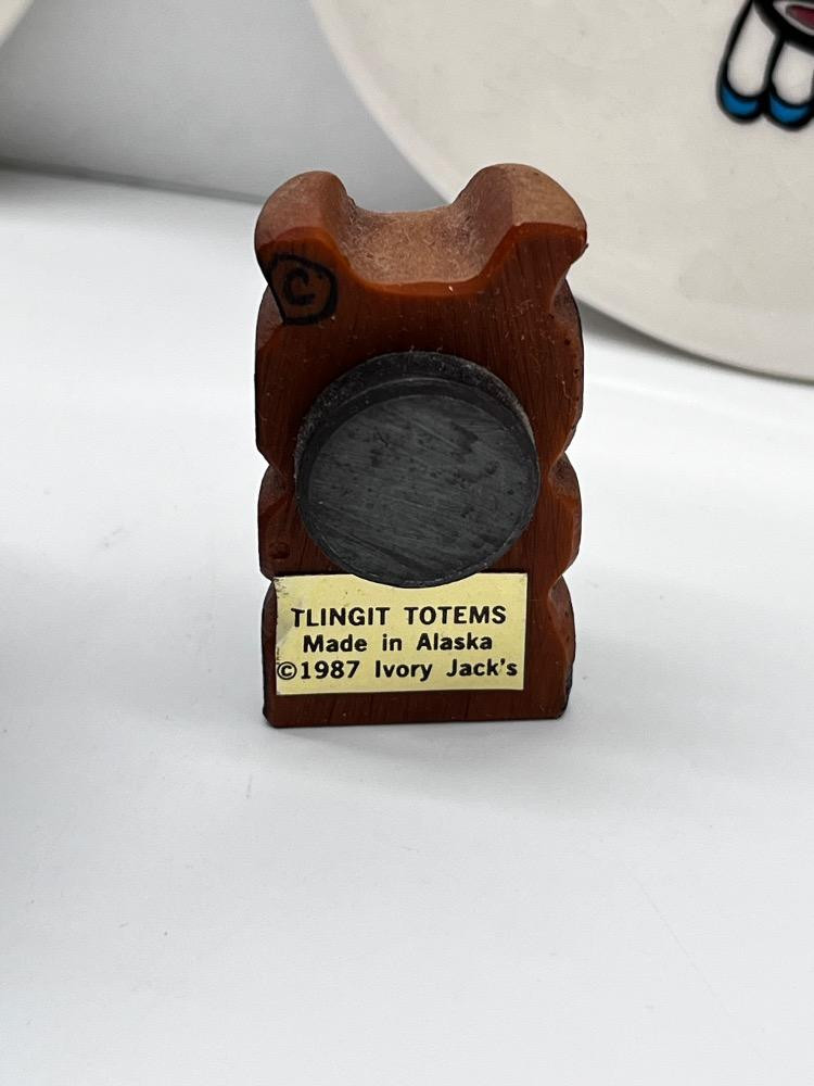 Small Hand-Carved Wooden Totem Magnet - Tlingit Totems, Made in Alaska, 1987 - 2" Tall
