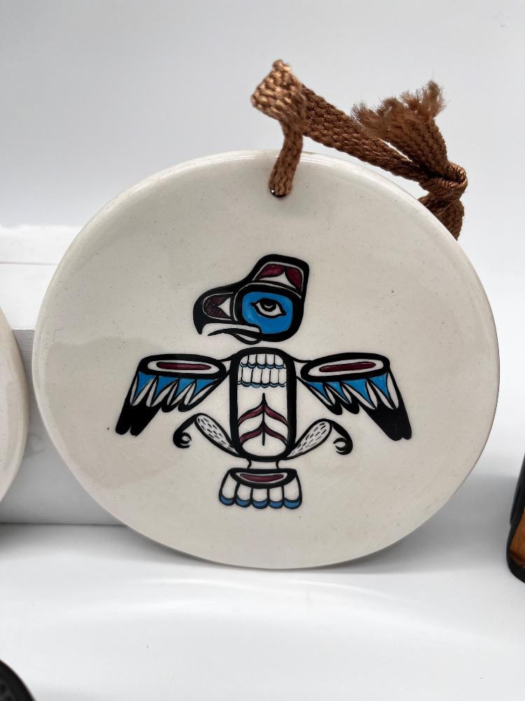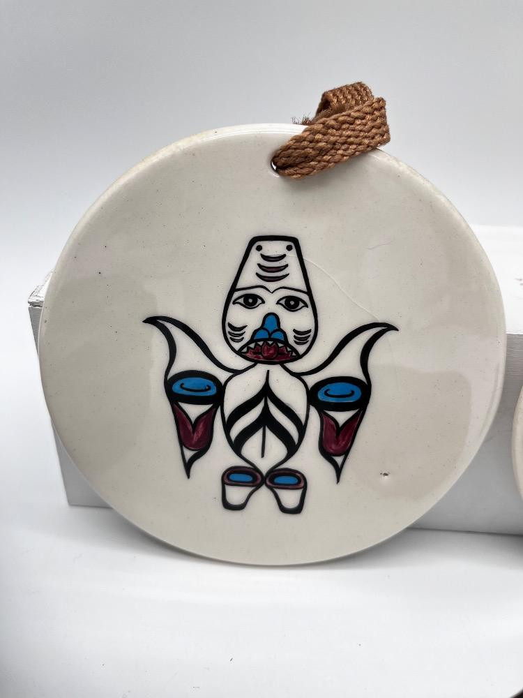 Two Hand-Painted Ceramic Discs with Totem Designs - 5" W