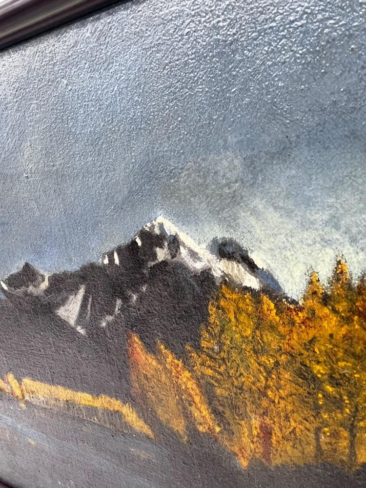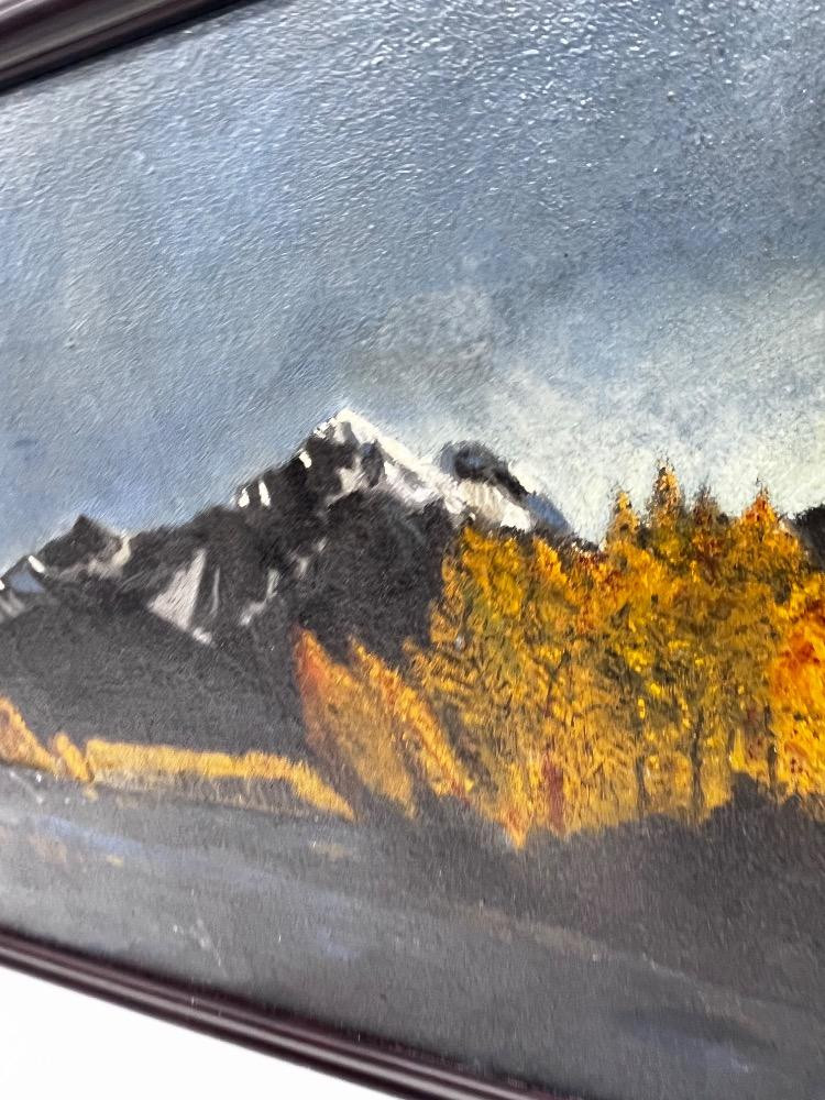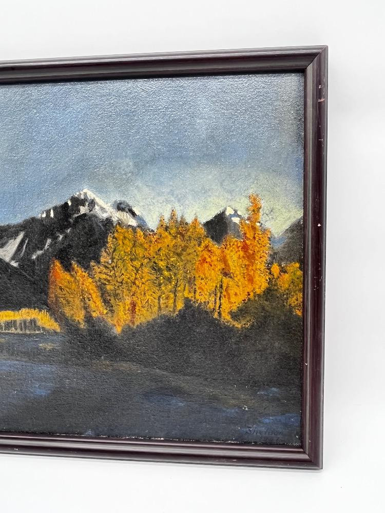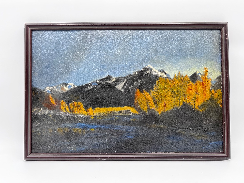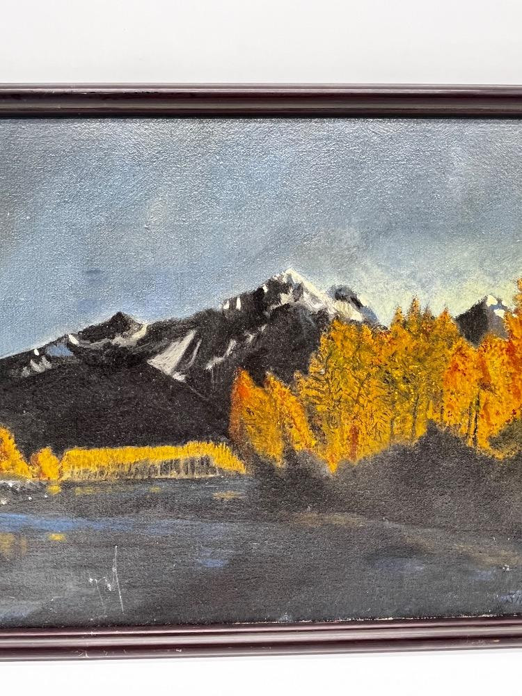 Signed Oil Painting – Autumn Mountain Landscape – Framed by Husted. 18 1/2 W x 12 1/2 H