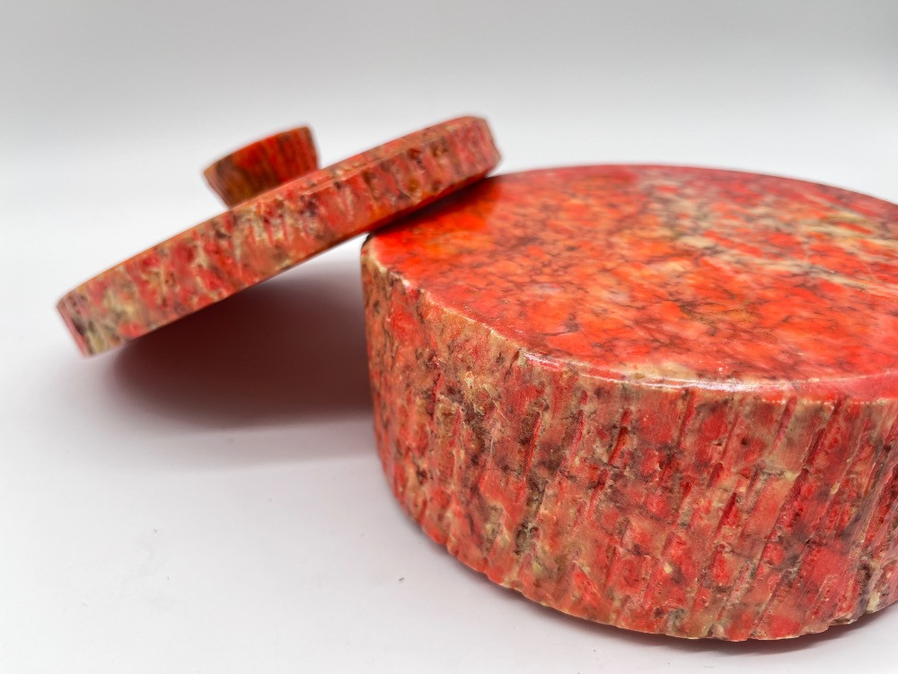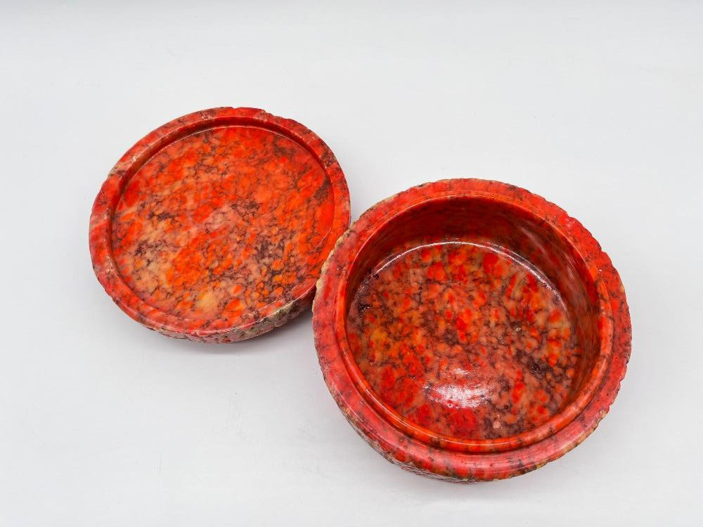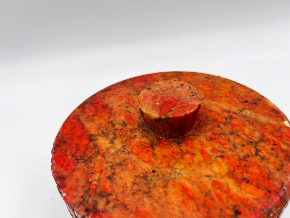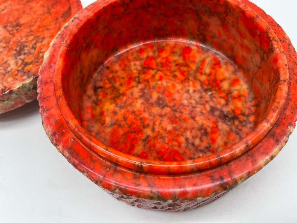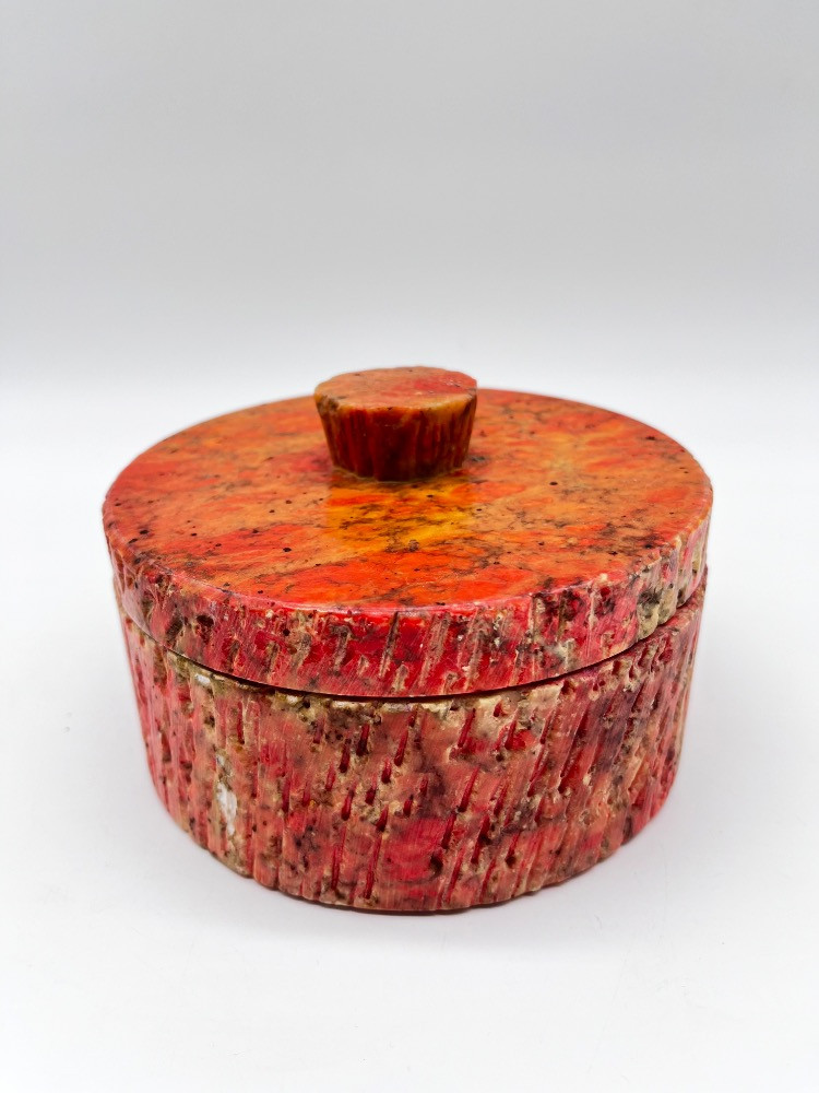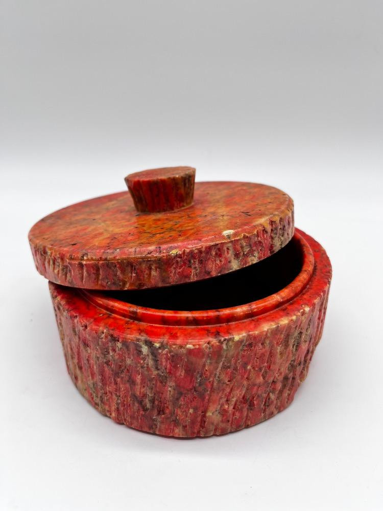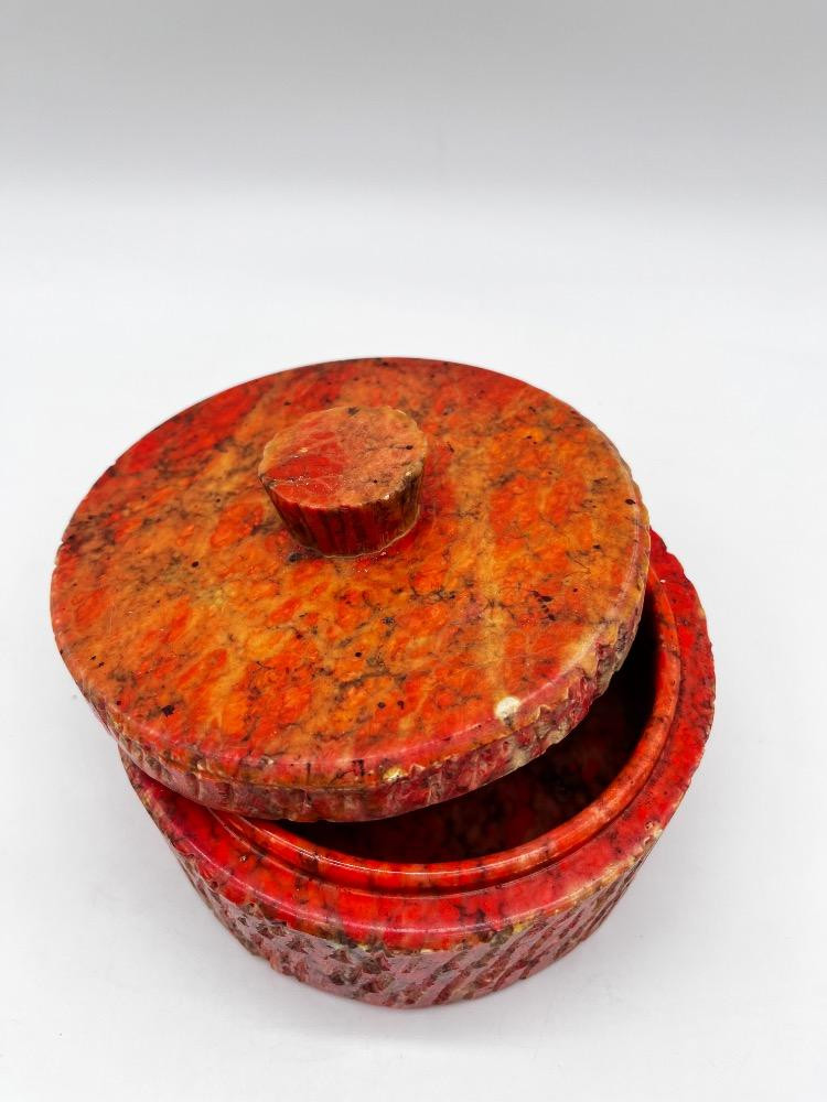 Lot # 90 - Natural Stone Lidded Box – Handcrafted Red & Orange Marbled Container