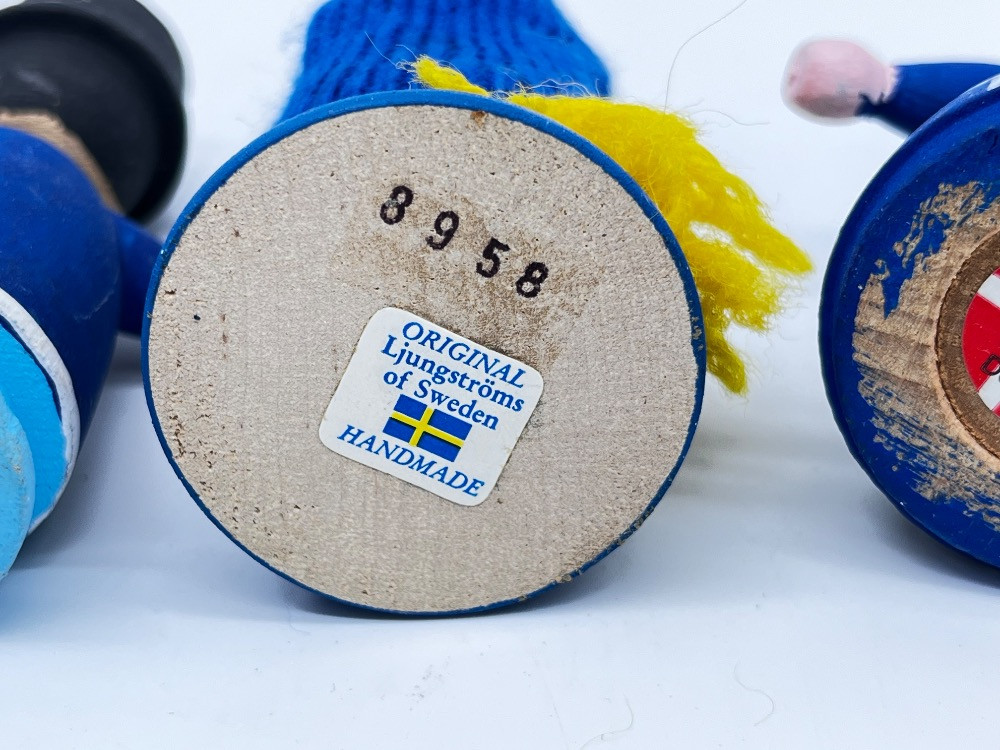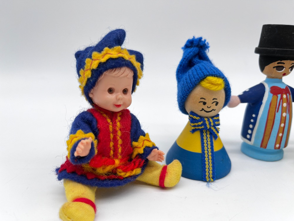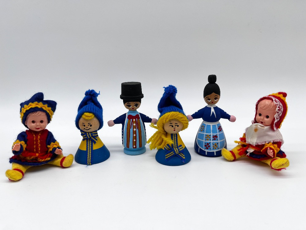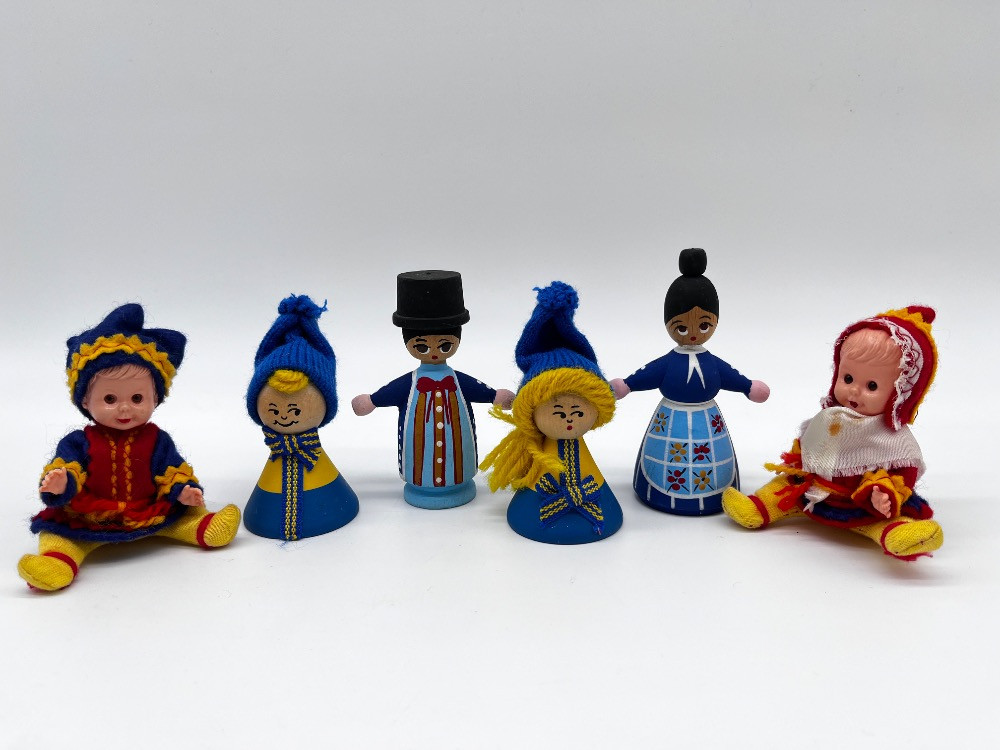 Set of 6 Scandinavian Folk Dolls – Sweden & Denmark Handmade Figures. 3 1/2" Height