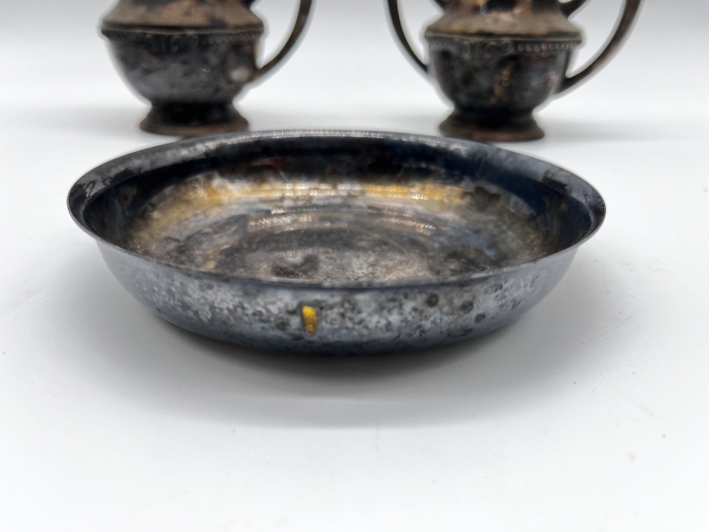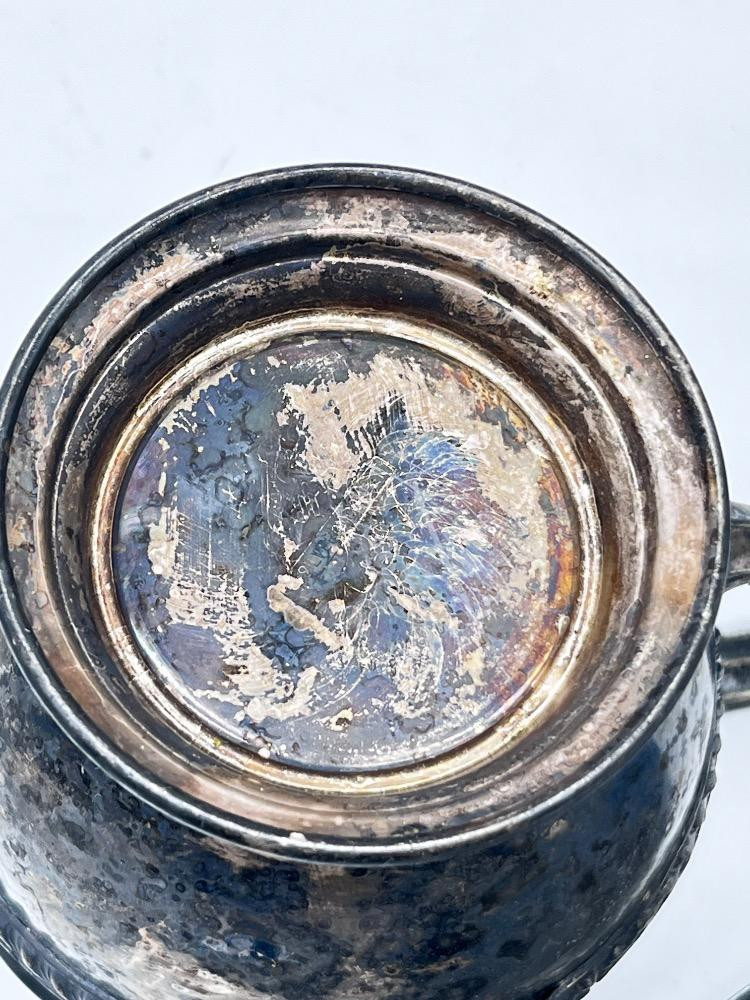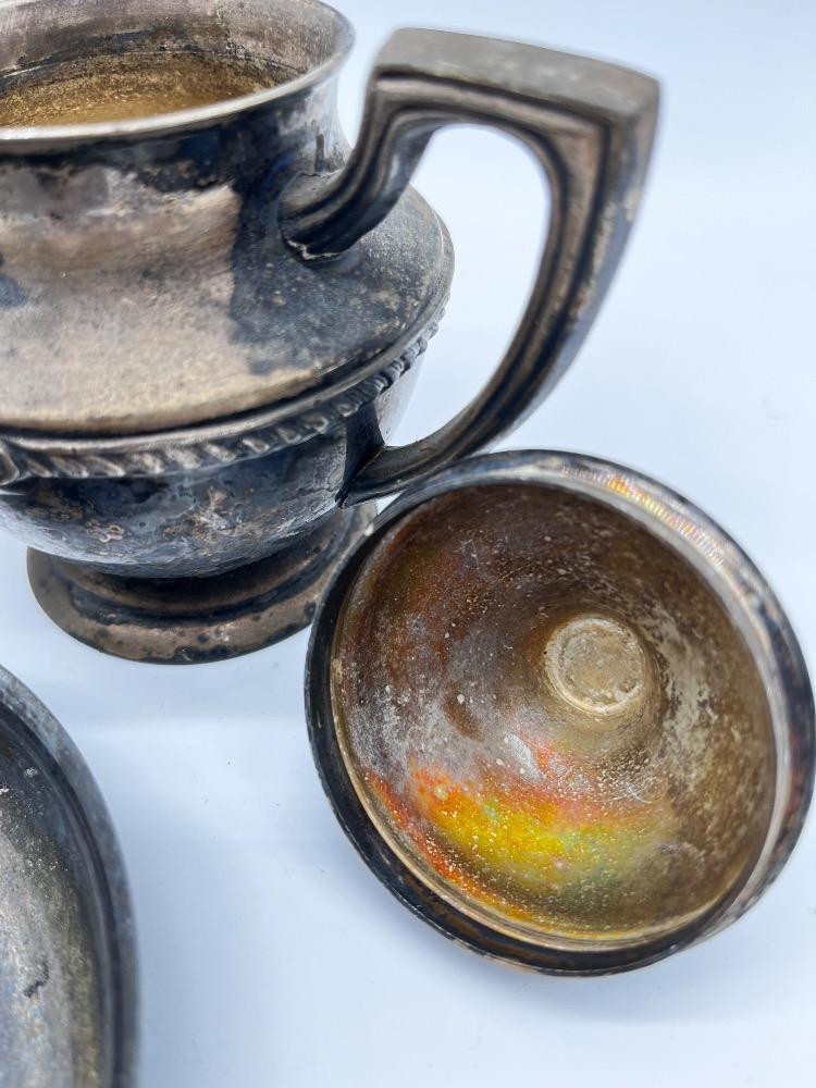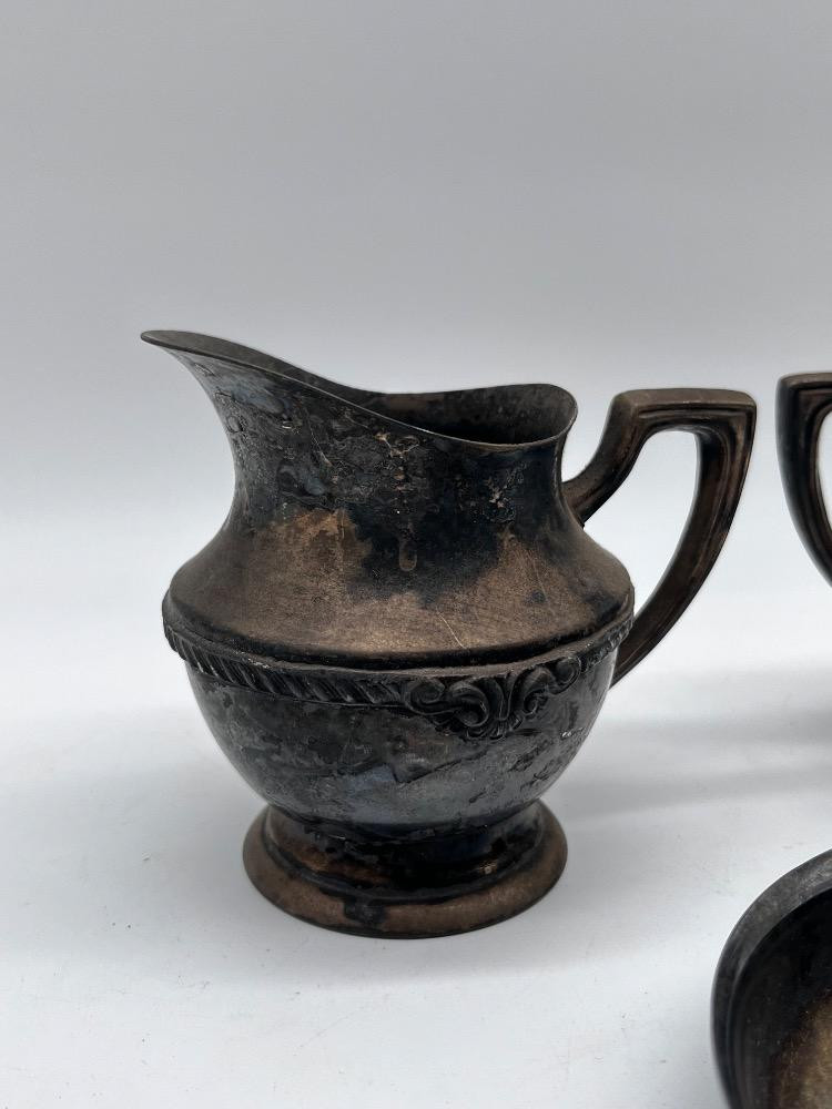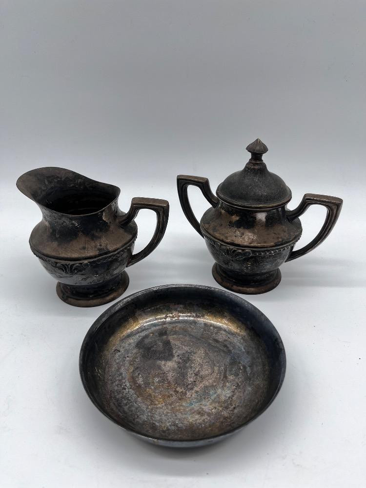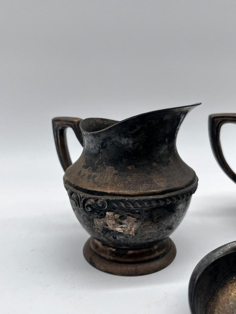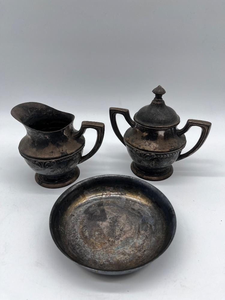 Antique Tea Service - Silver-Plated Creamer & Sugar Set + Bowl. Creamer 4" Tall