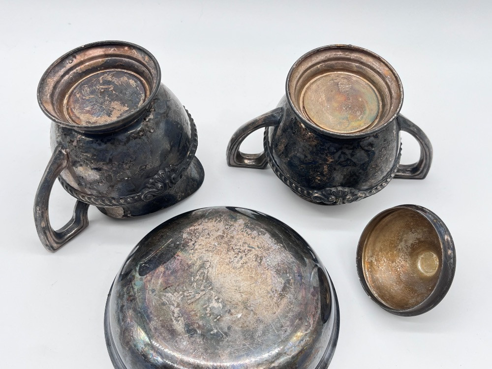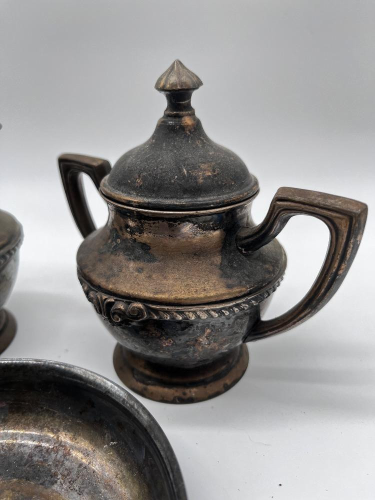 Lot # 101 - Antique Tea Service - Silver-Plated Creamer & Sugar Set + Bowl