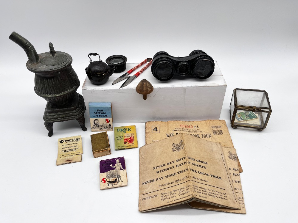 WWII Collectibles – Vintage Ration Books, Trojan Binoculars, Mini Stove & More.