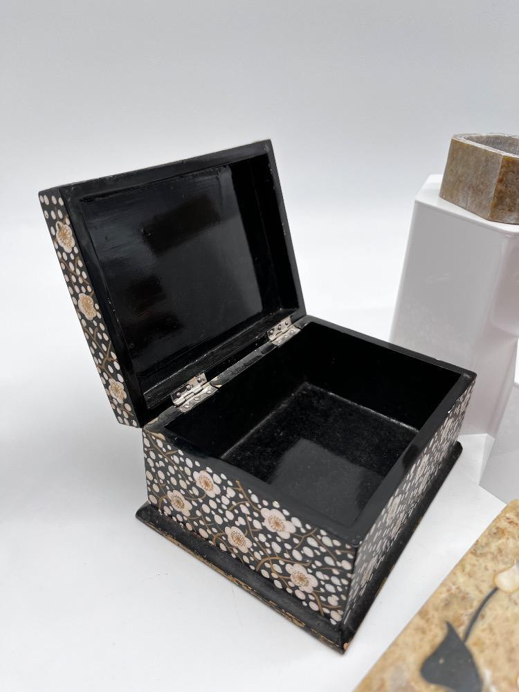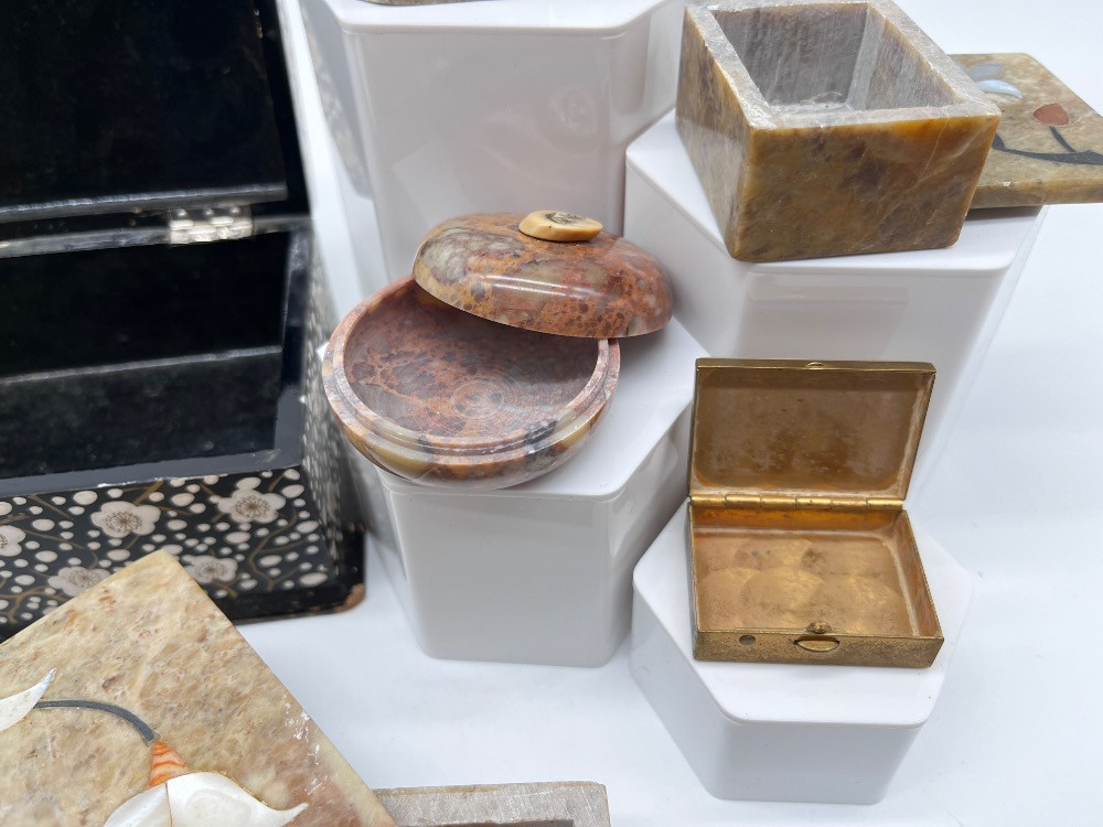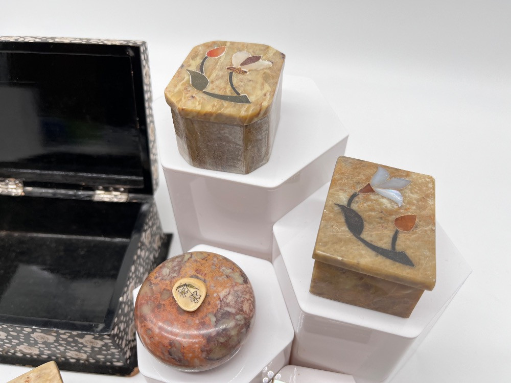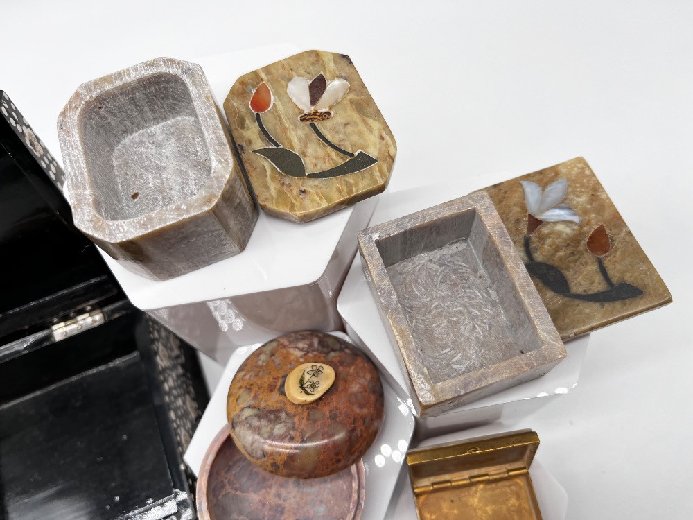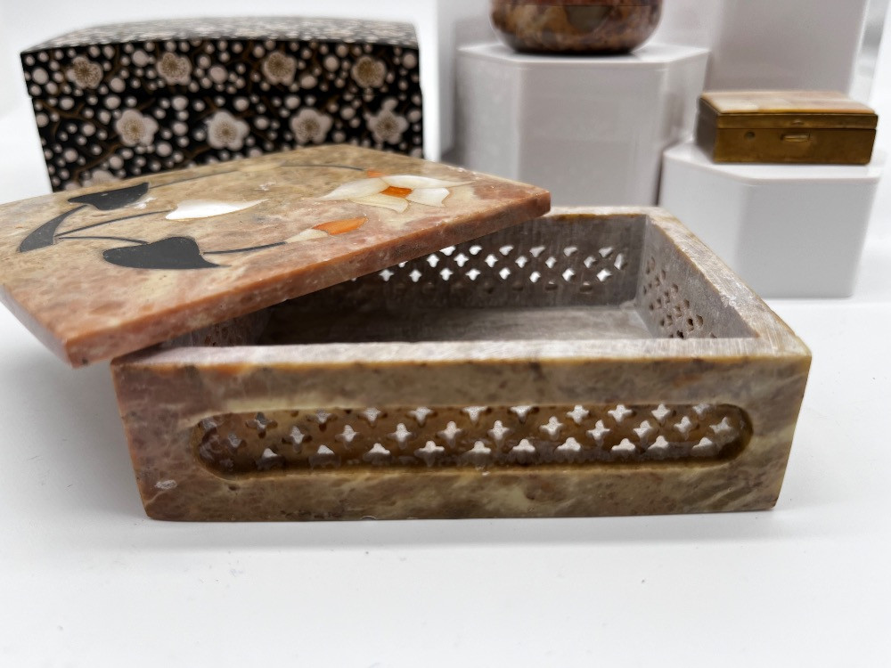 Lot # 106 - #1 Vintage Trinket & Jewelry Boxes – Stone, Wood, & Inlay Boxes