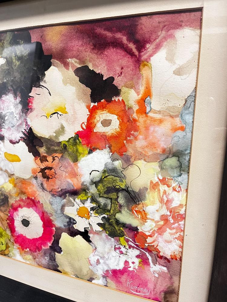 Lot # 118 - Watercolor Floral Painting – Signed Kenney – Vibrant Abstract Flowers