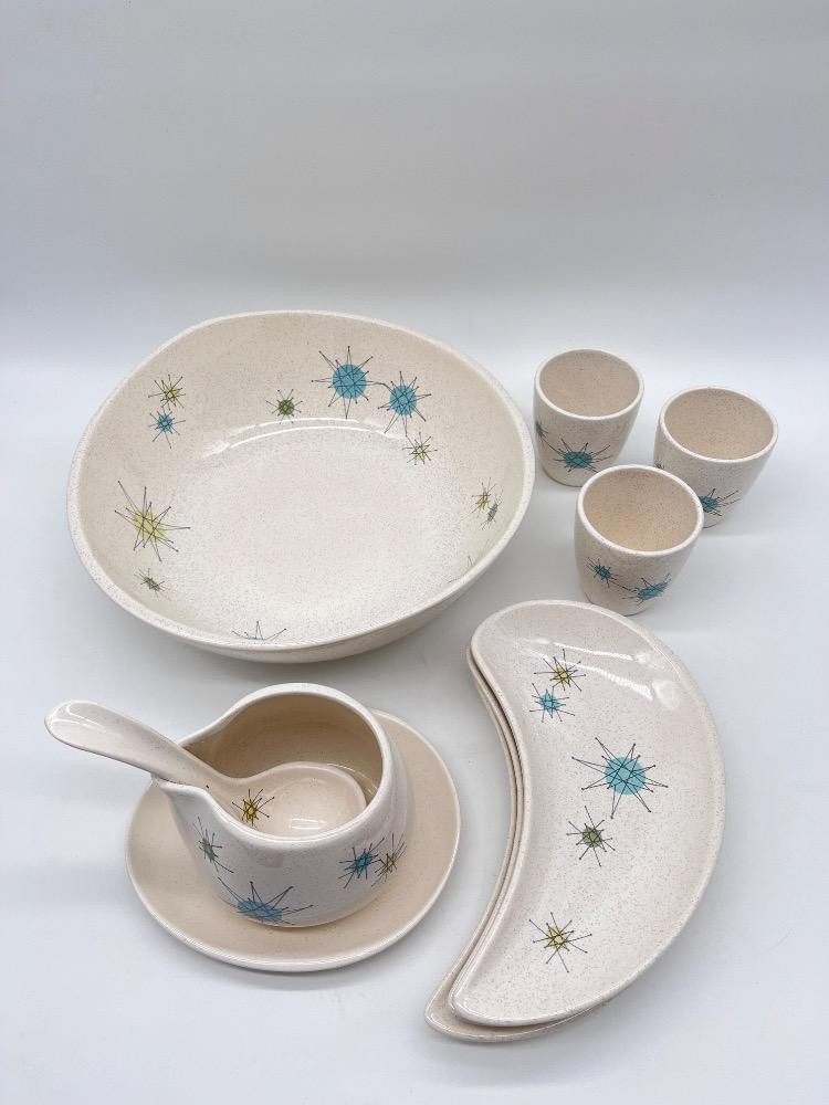 Vintage Franciscan Starburst Pattern Set – Serving Bowl, Cups & More.