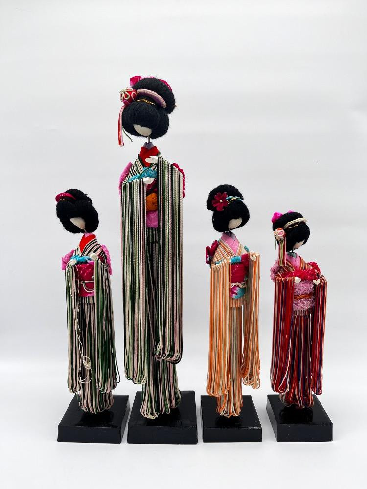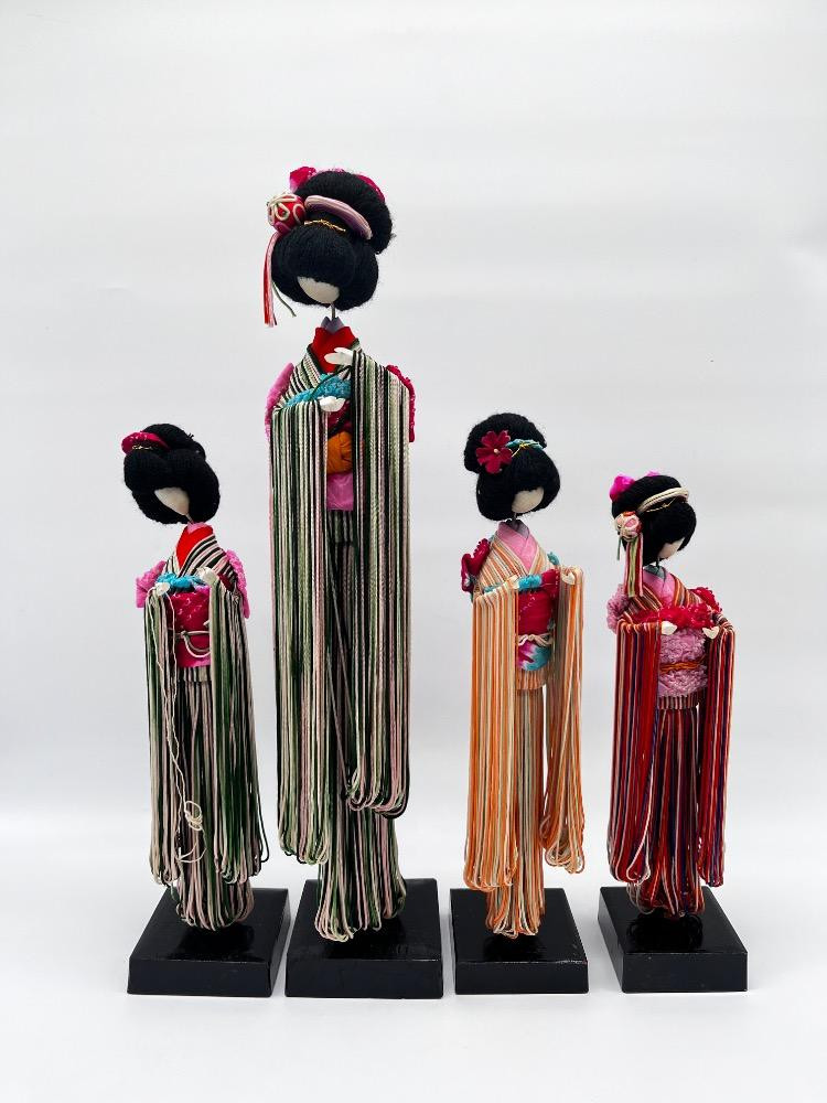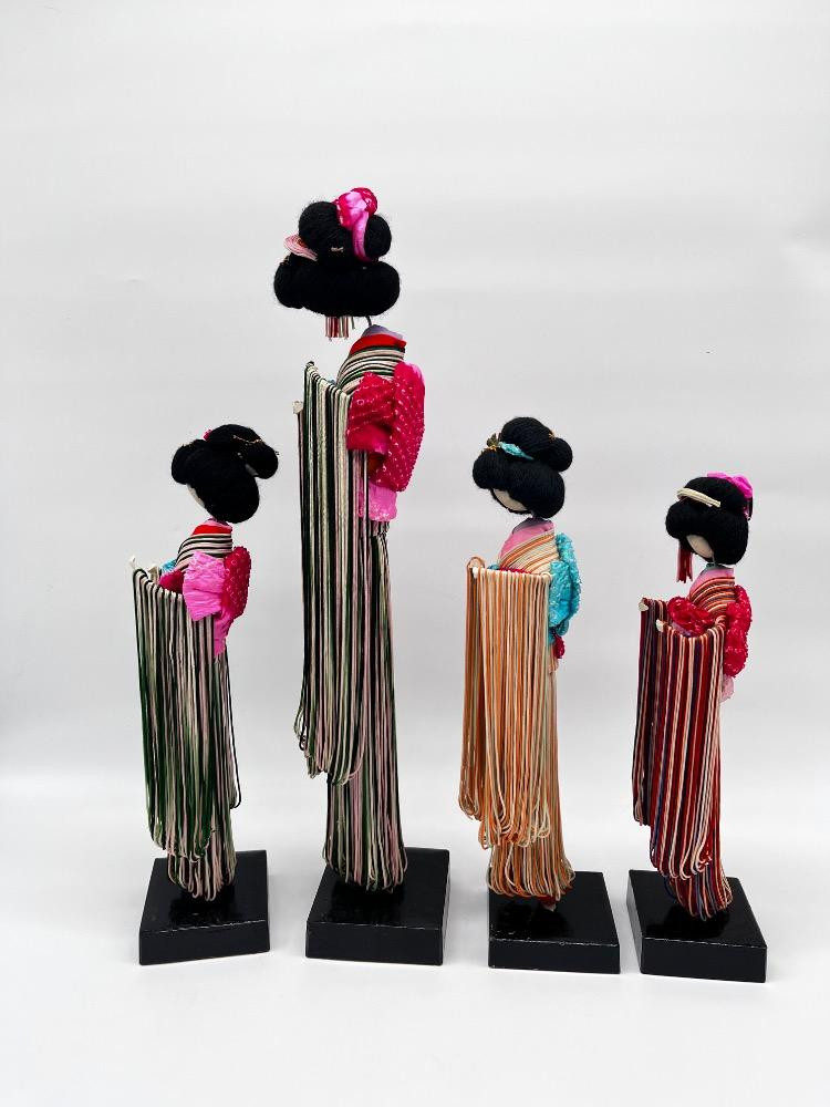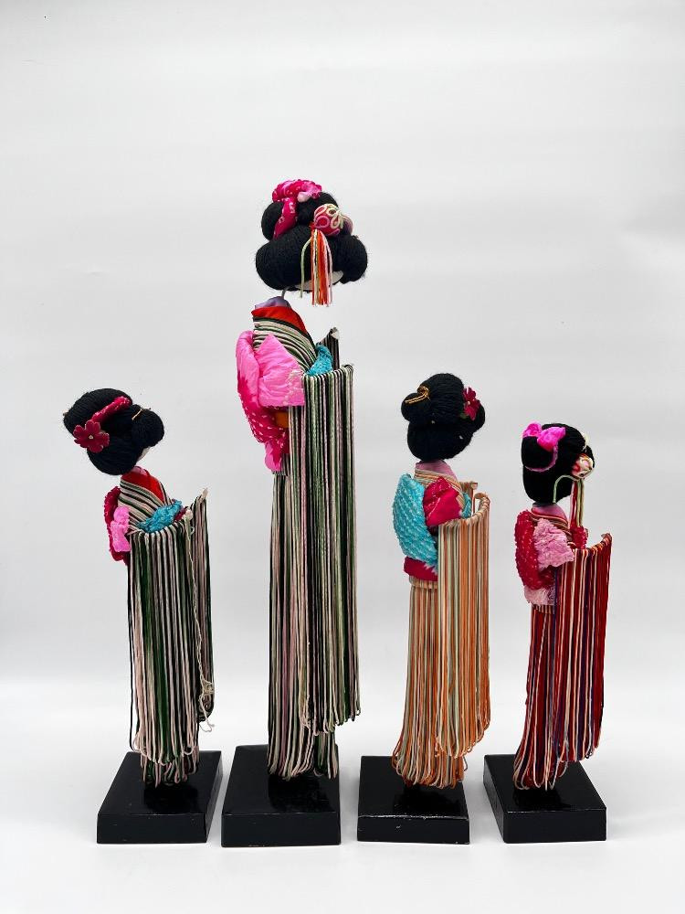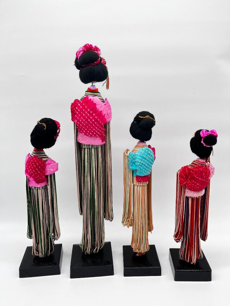 Lot # 120 - Set of 4 Vintage Japanese String Dolls – Elegant Kimono Display