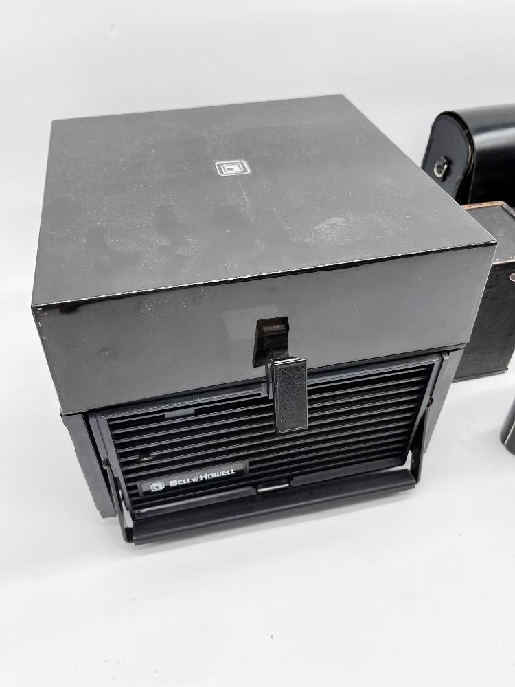 Vintage Cameras & Optics Lot – Bell & Howell Slide Cube, Jiffy Kodak + Bell & Howell Slide Cube RF 60 Remote Focus Projector