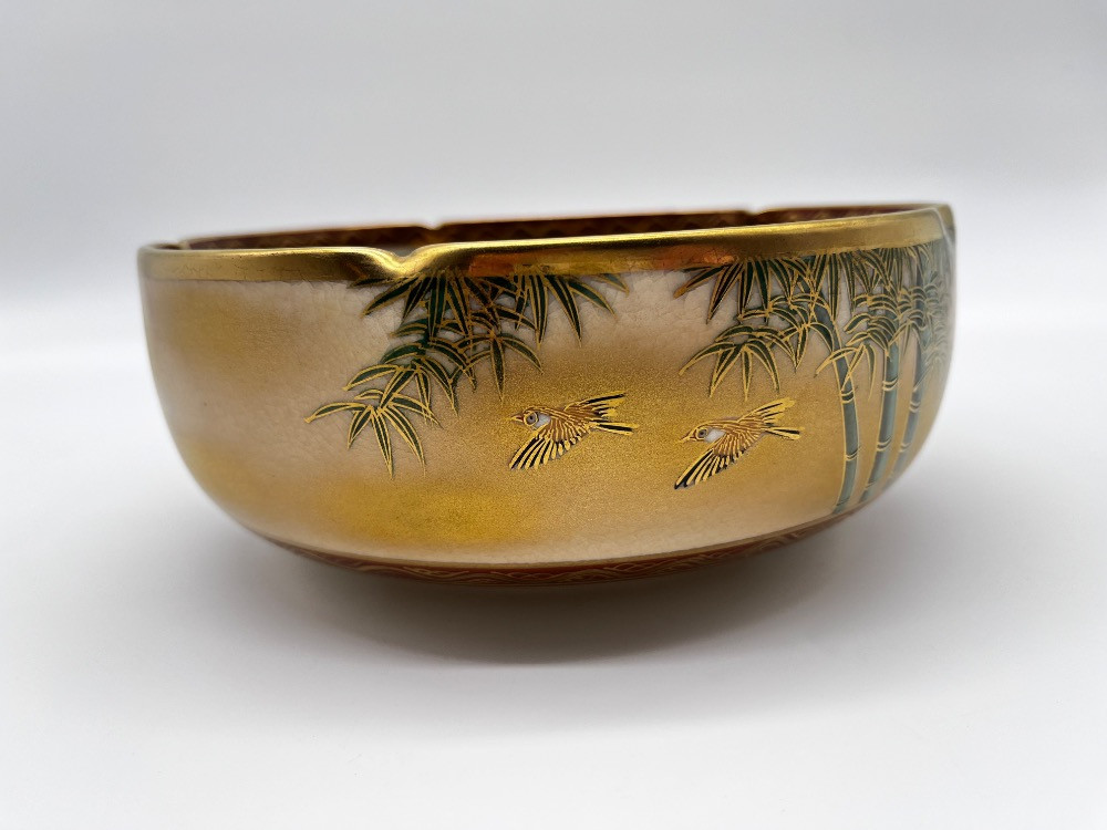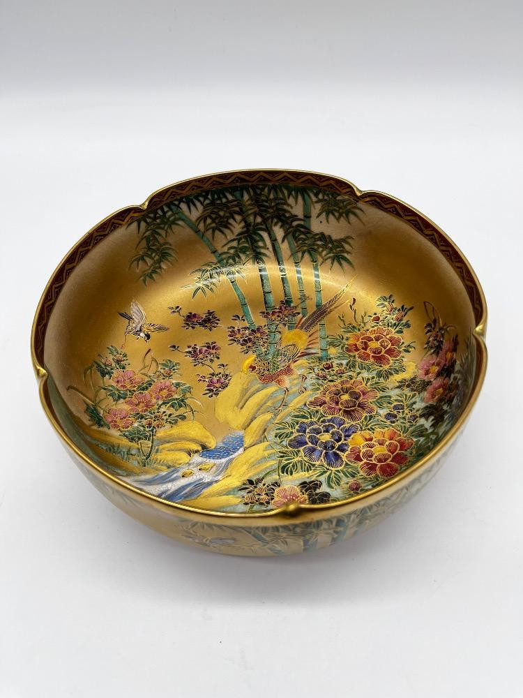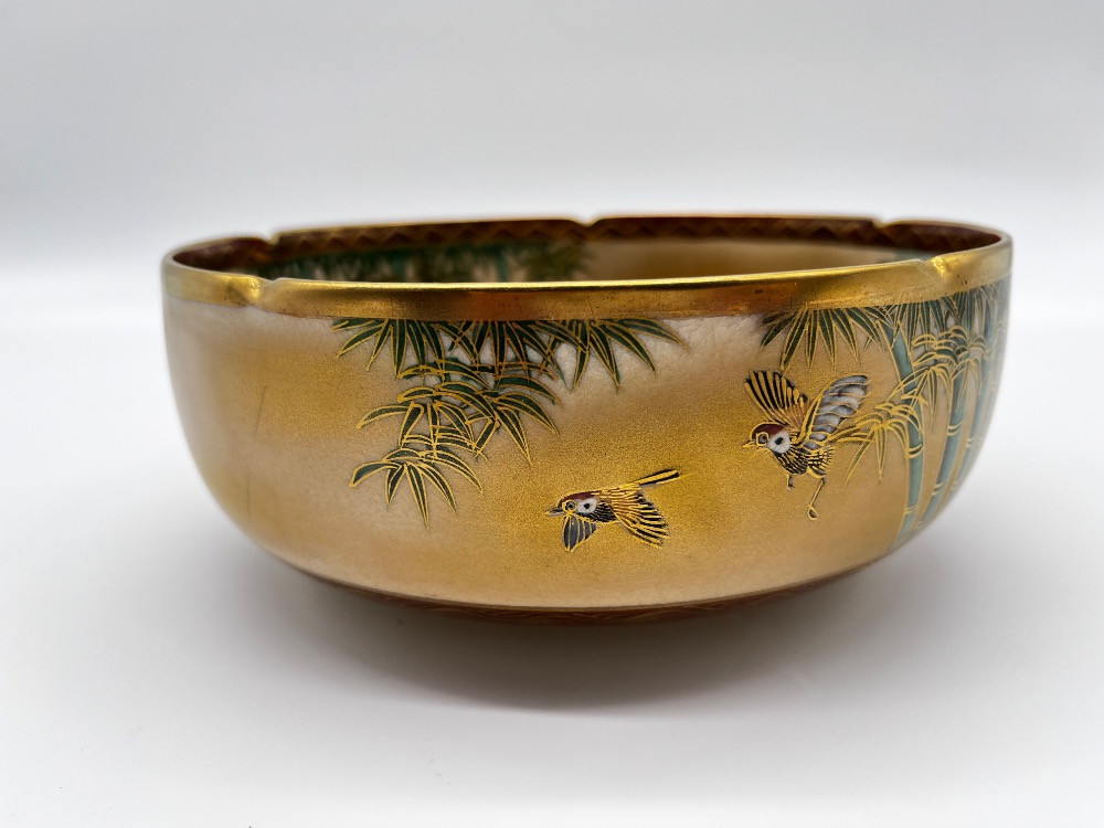 Lot # 123 - Vintage Japanese Satsuma Bowl - Gold Gilded Birds & Floral Design