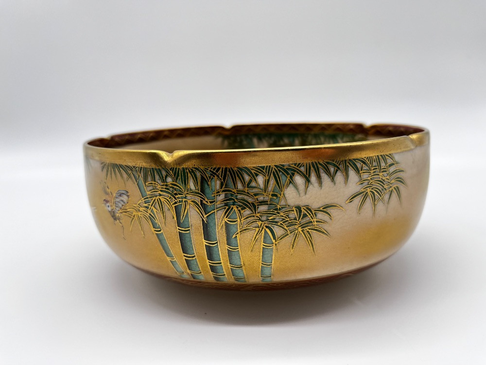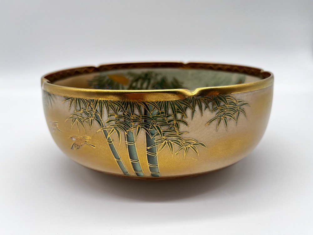 Vintage Japanese Satsuma Bowl - Gold Gilded Birds & Floral Design, Marked. 3" H x 7 1/4" W Disclaimer: We do not test the metals of the items listed for auction. By placing a bid, you acknowledge and agree that you are purchasing the item "as is" and without any guarantee of metal quality. We do not offer refunds based on metal content or purity.