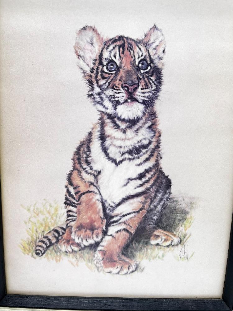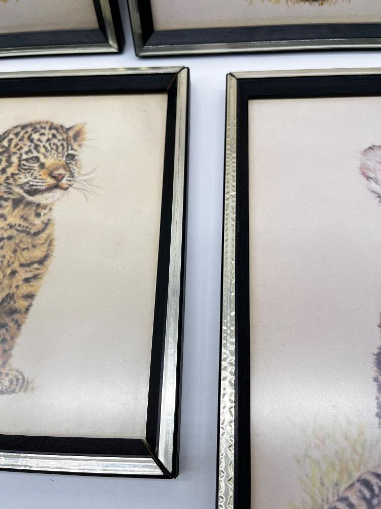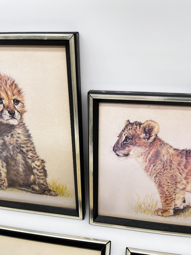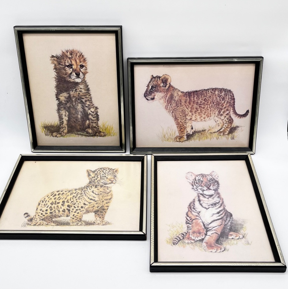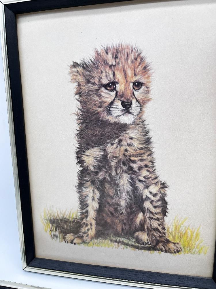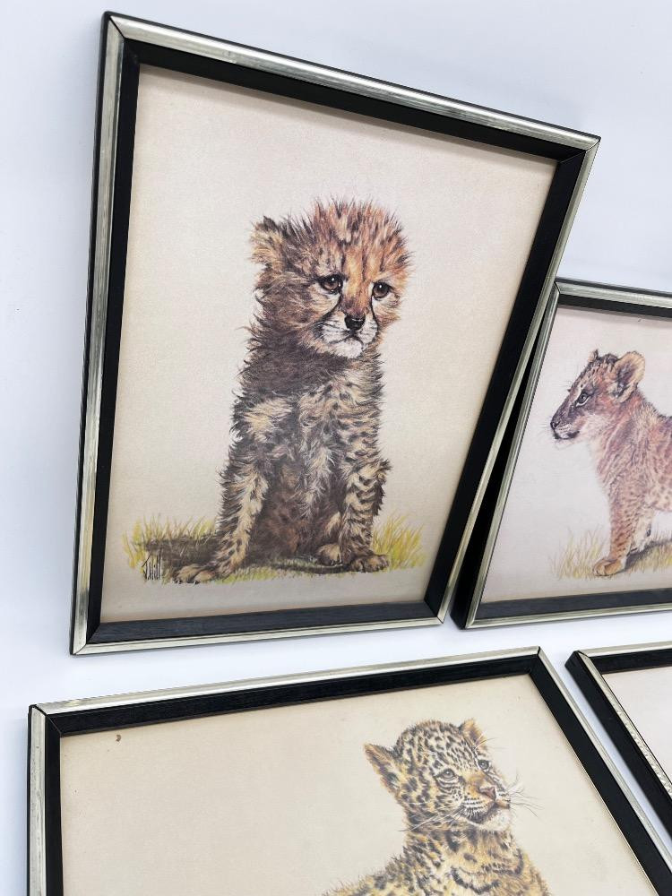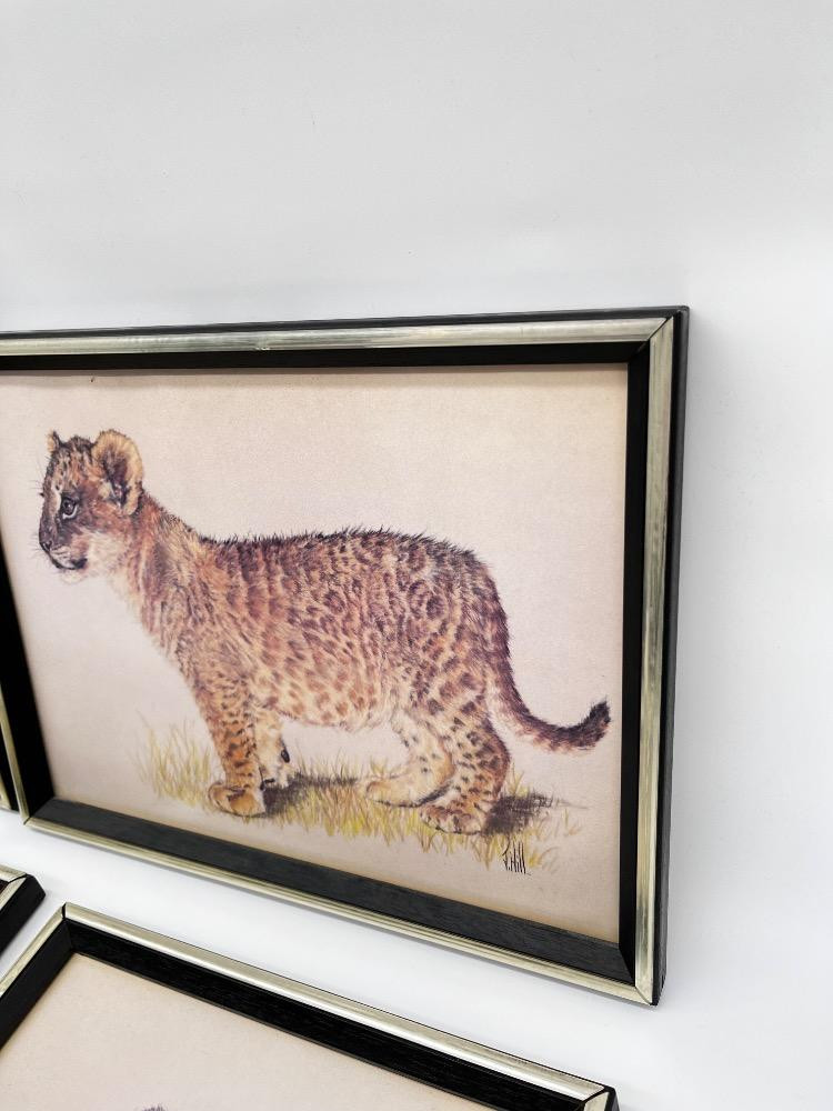 Lot # 124 - Lion Cub Signed J. Hill Vintage Print + Cheetah, Leopard, Tiger Cubs