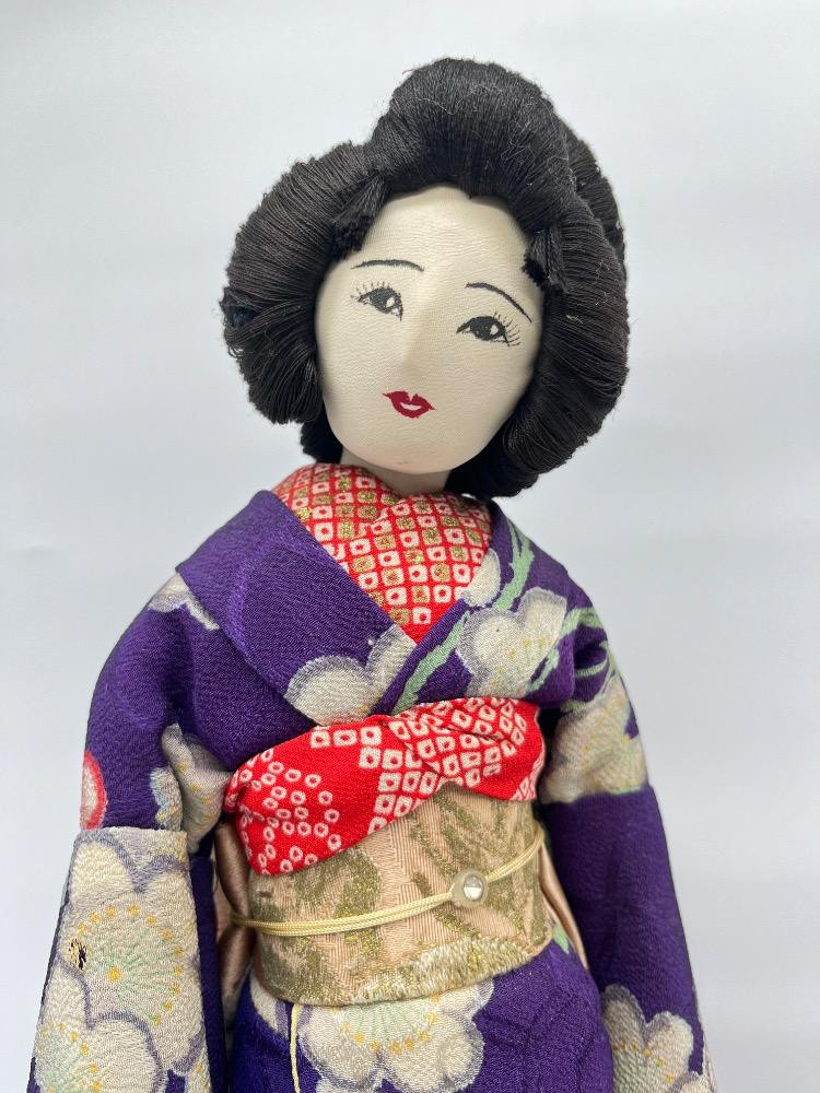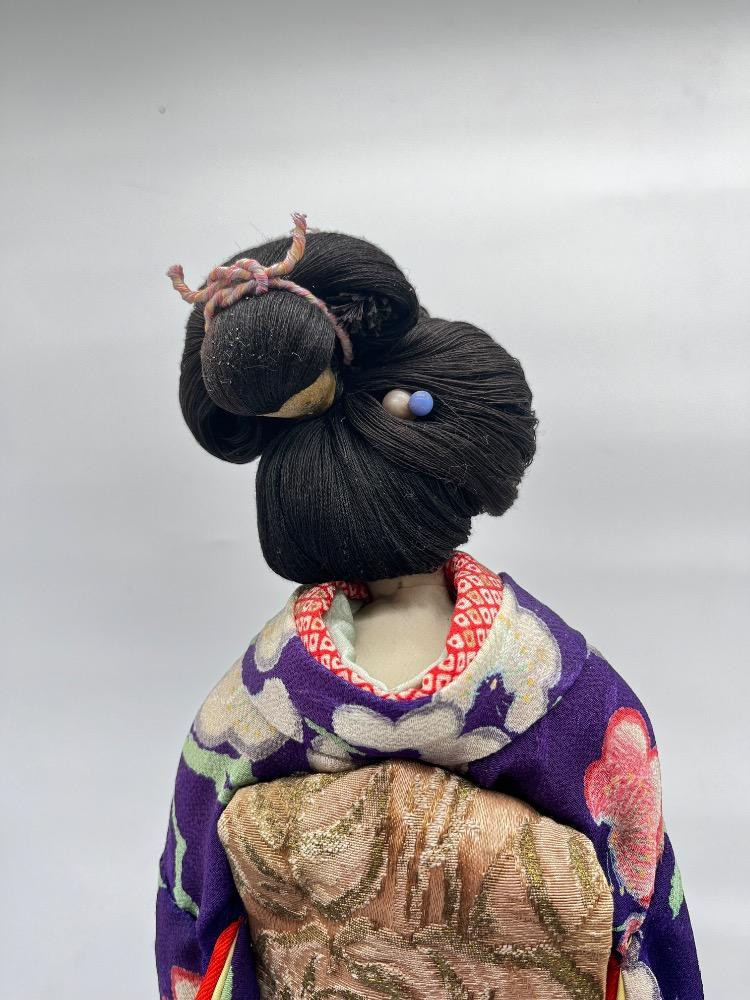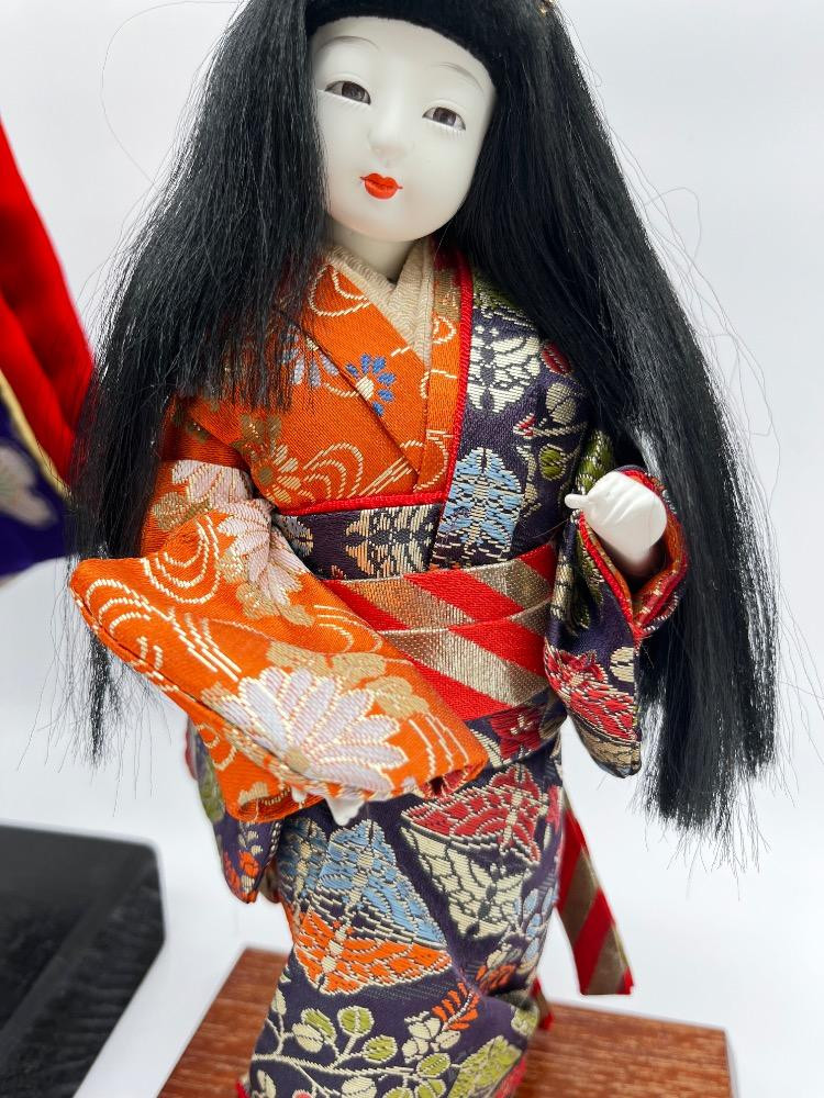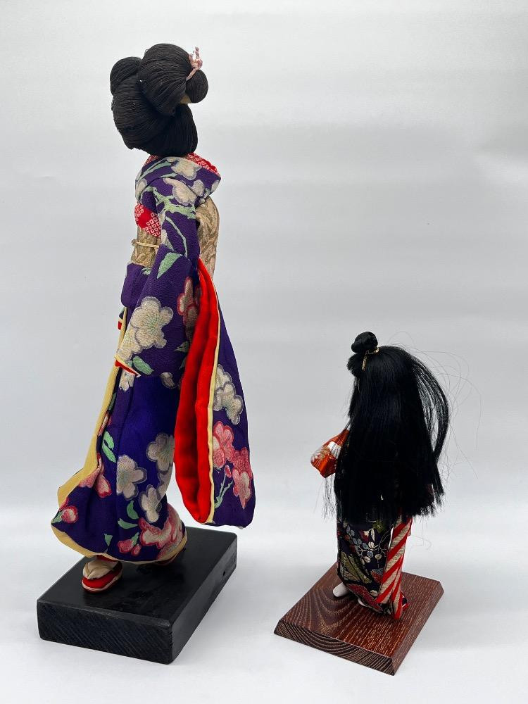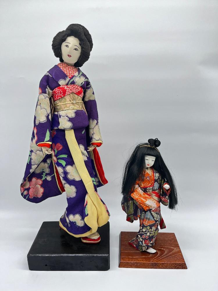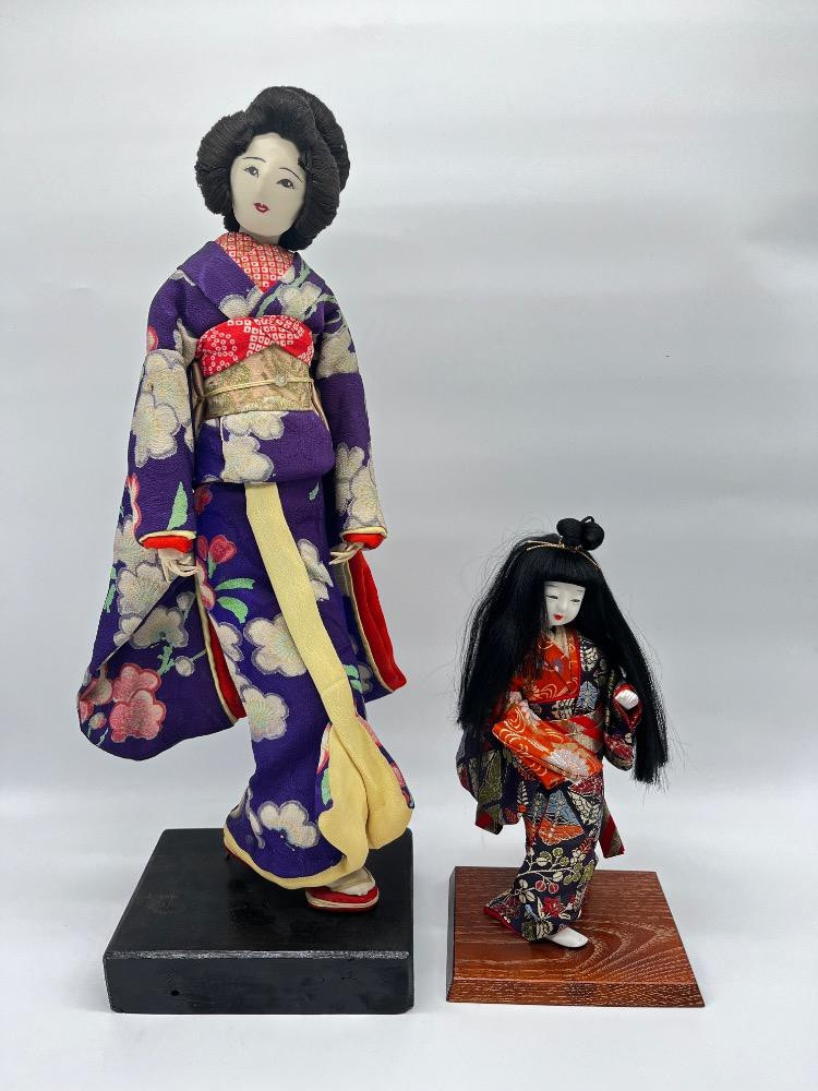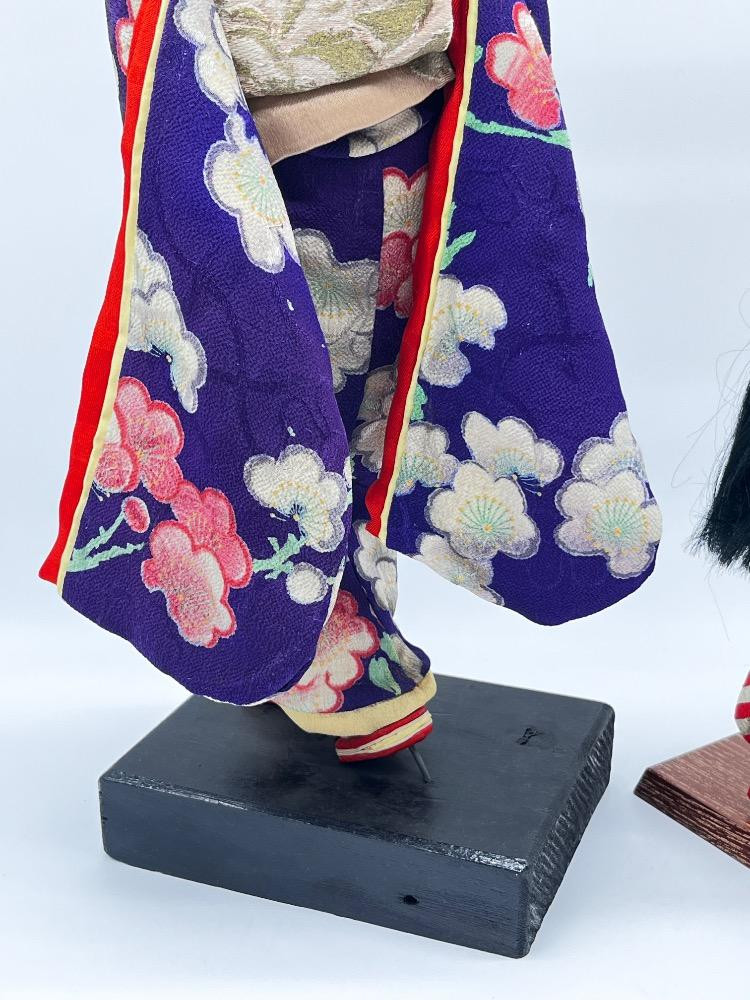 Lot # 125 - Japanese Geisha Dolls – Floral Kimono Display Figures on Stand
