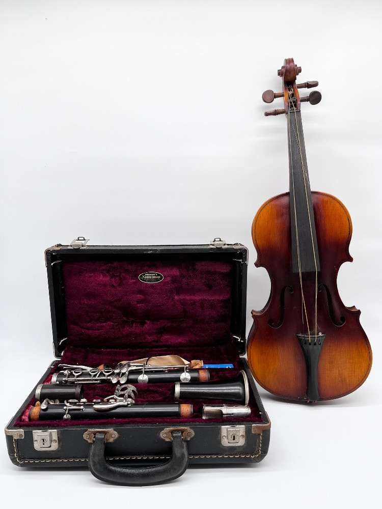 Woodwind & String Duo: Vintage Clarinet & Antique-Style Violin. Vintage Clarinet in Case – Denham’s Music Shop, Bellflower – Woodwind Instrument