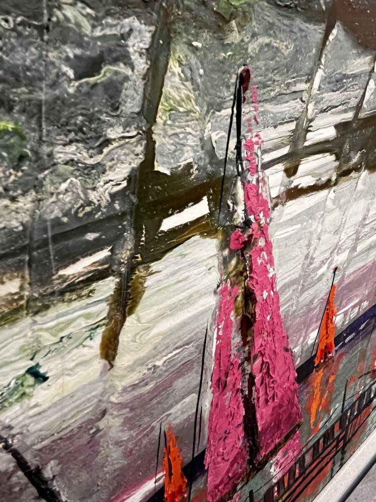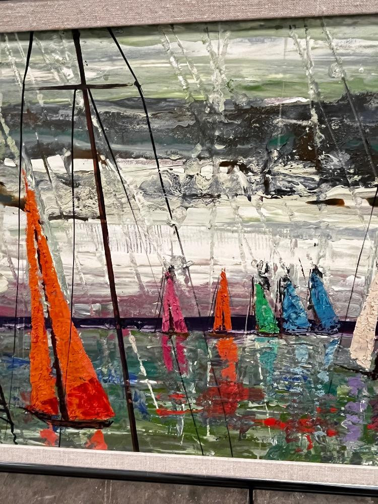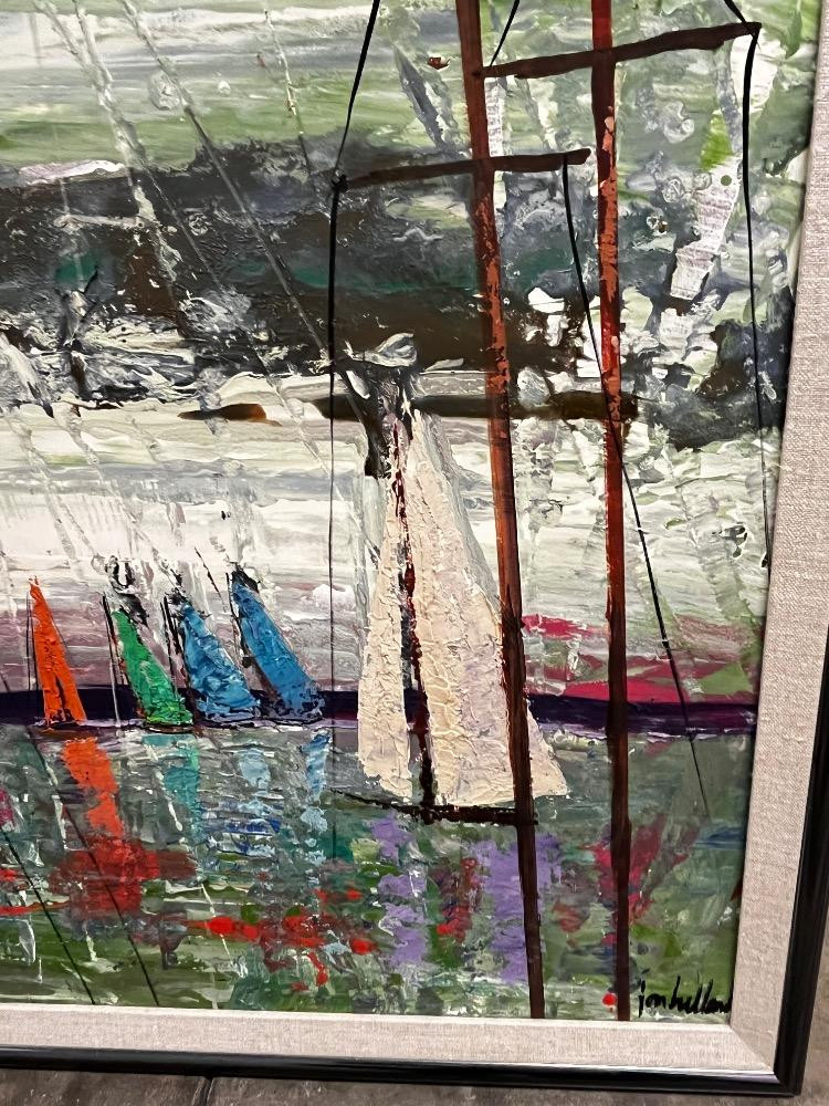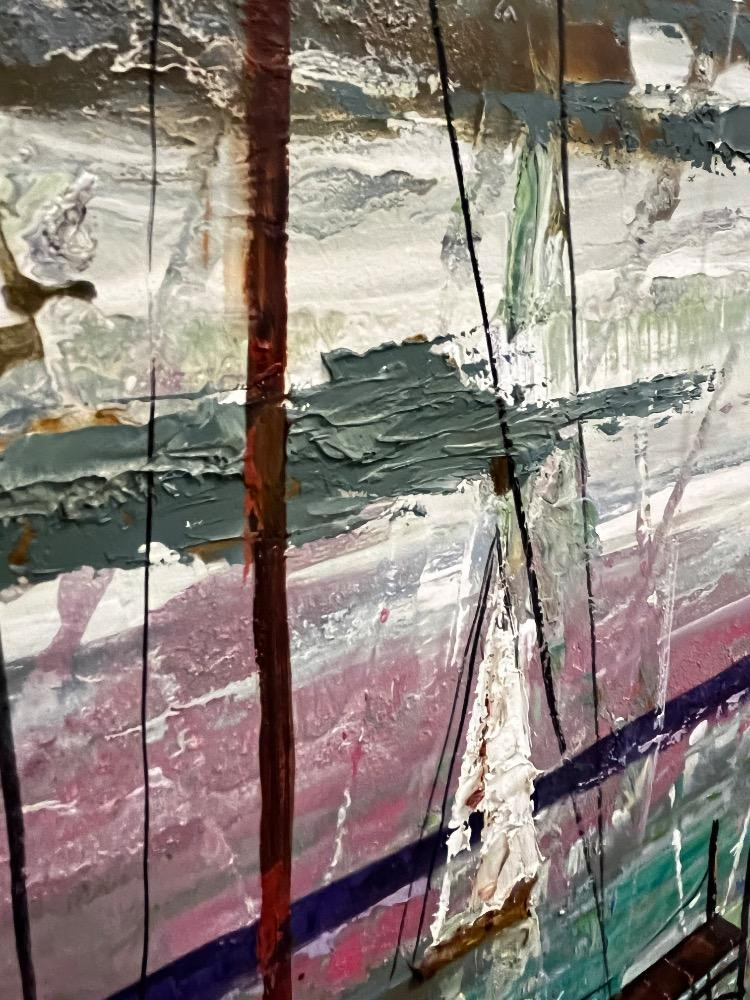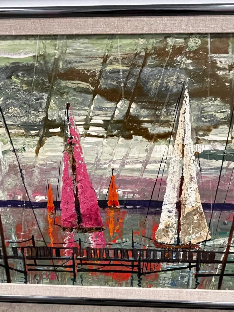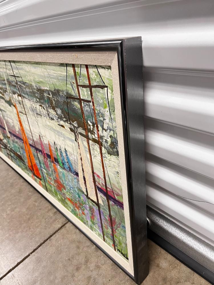 Lot # 128 - Vintage MCM Harbor Scene – Large Acrylic Painting on Canvas – Signed