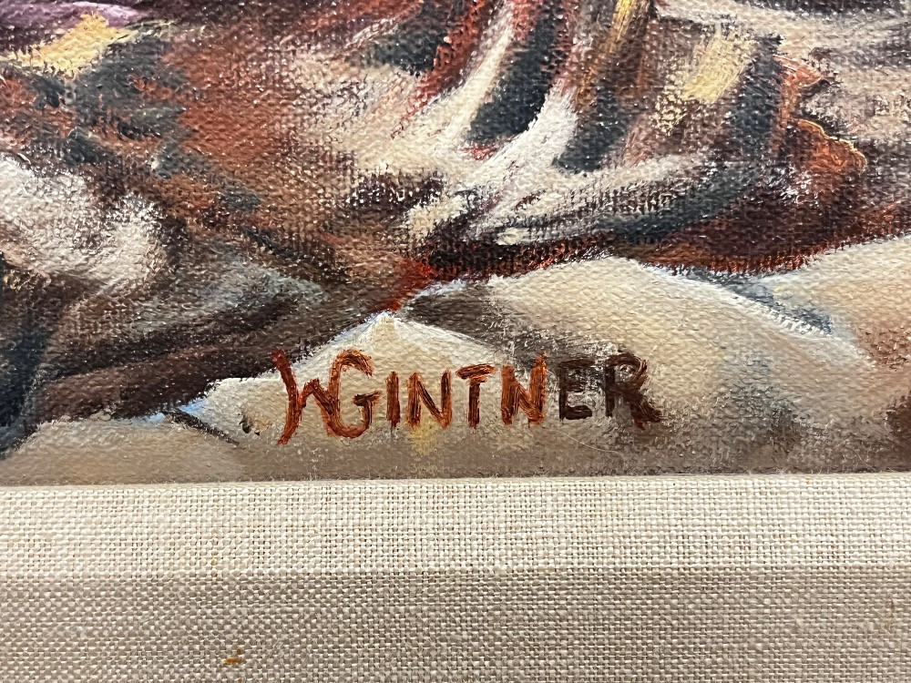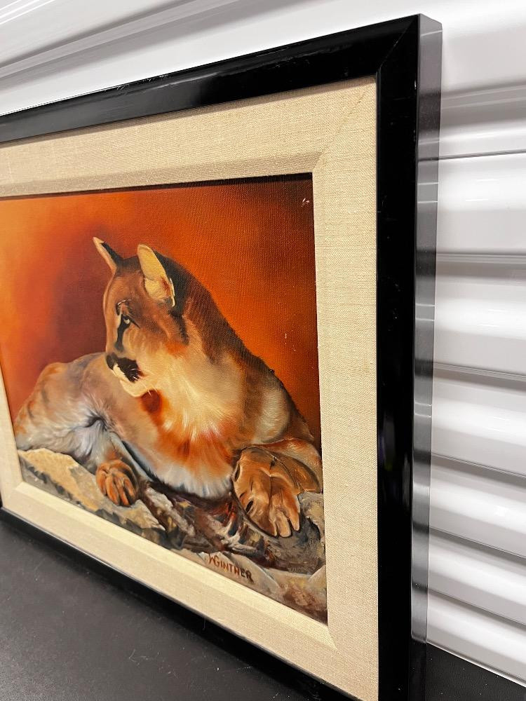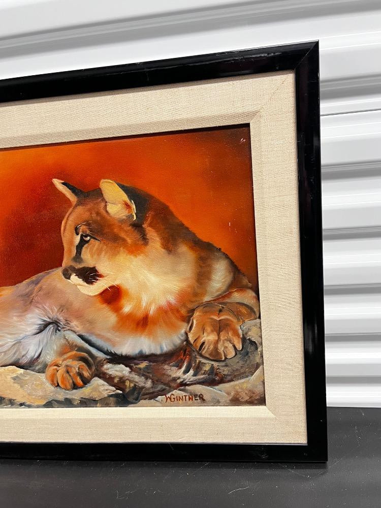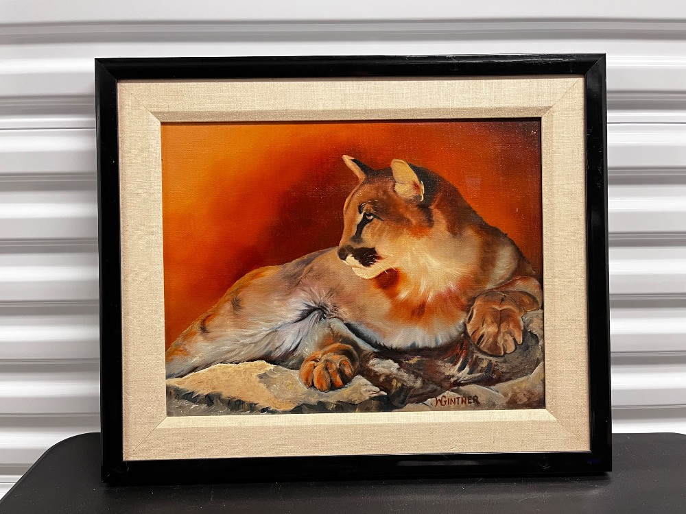 Majestic Mountain Lion – Original Oil Painting Signed by W. Gintner. 19" H x 23" W