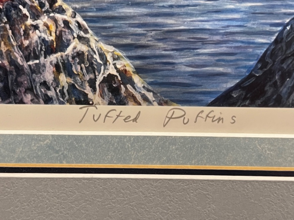 Ed Newbold Signed & Numbered Print – 'Tufted Puffins' (1990) – Limited Edition 125/950 17 1/2" H X 21 1/2 W
