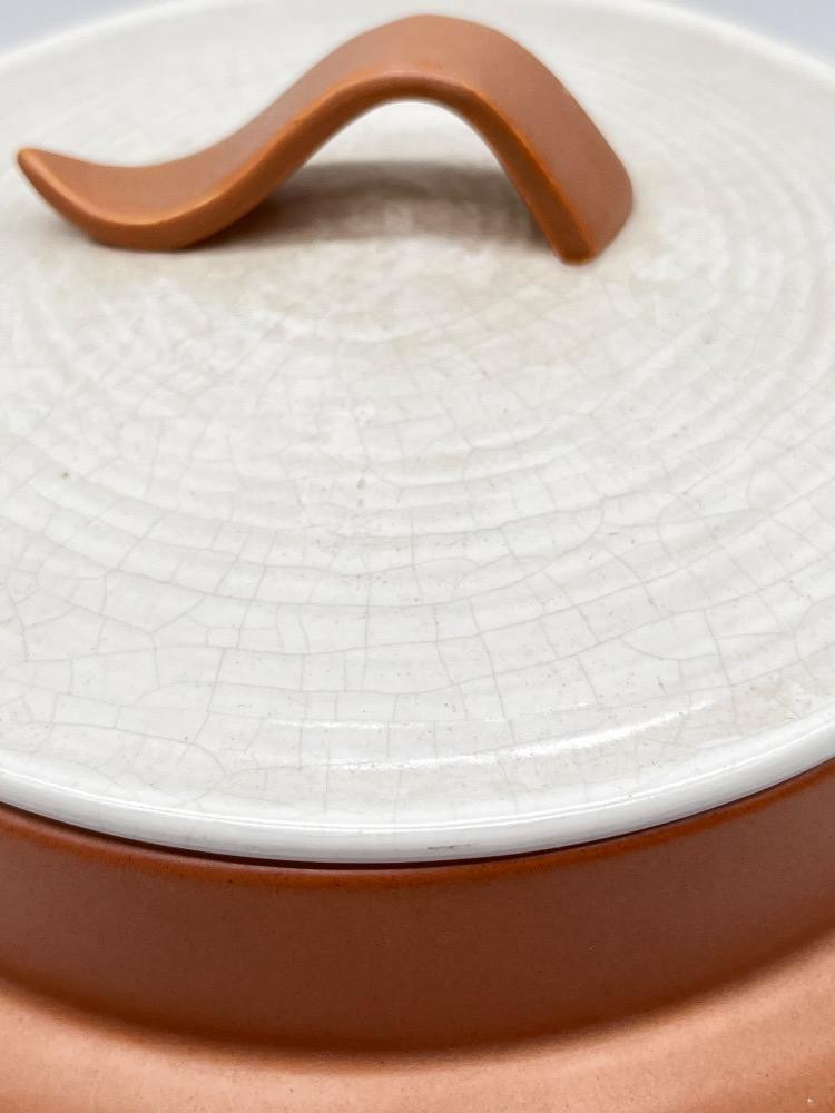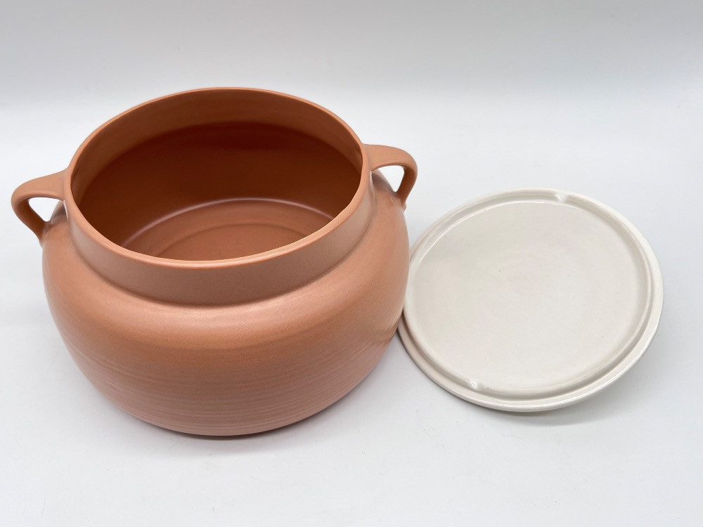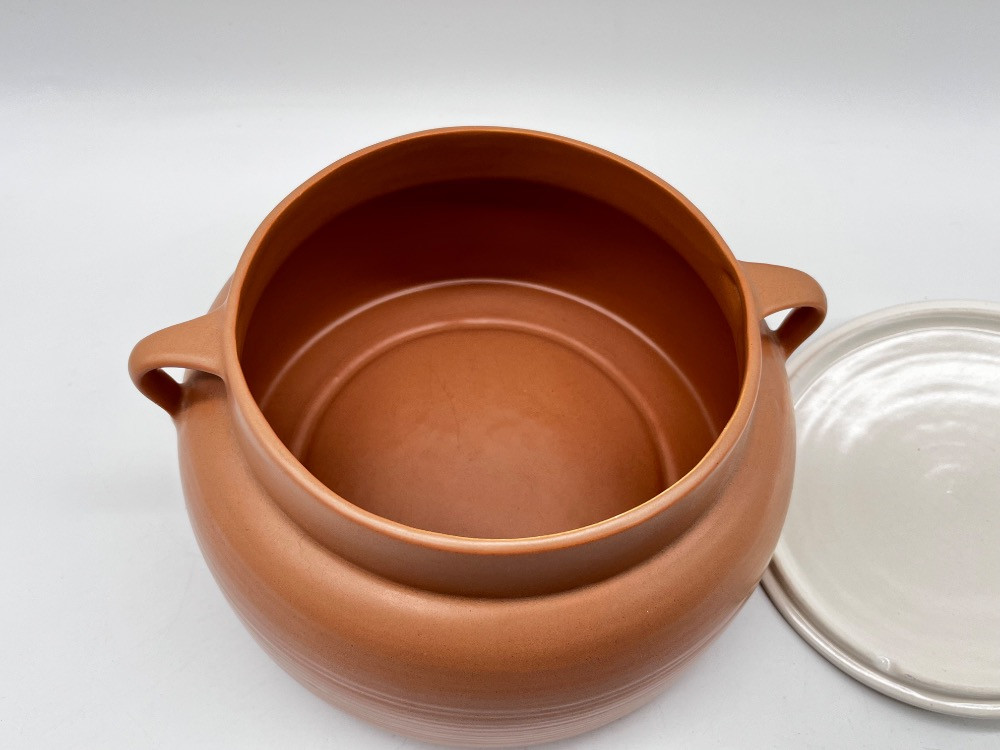 Hoenig California Pottery Bean Pot – Terra Cotta & White Lid. 5" H x 8" W