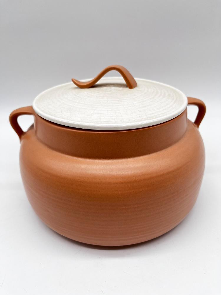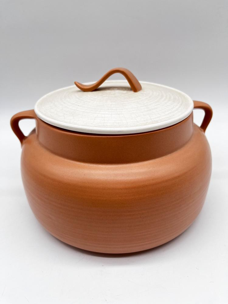Lot # 151 - Vintage Hoenig California Pottery Bean Pot – Terra Cotta & White Lid
