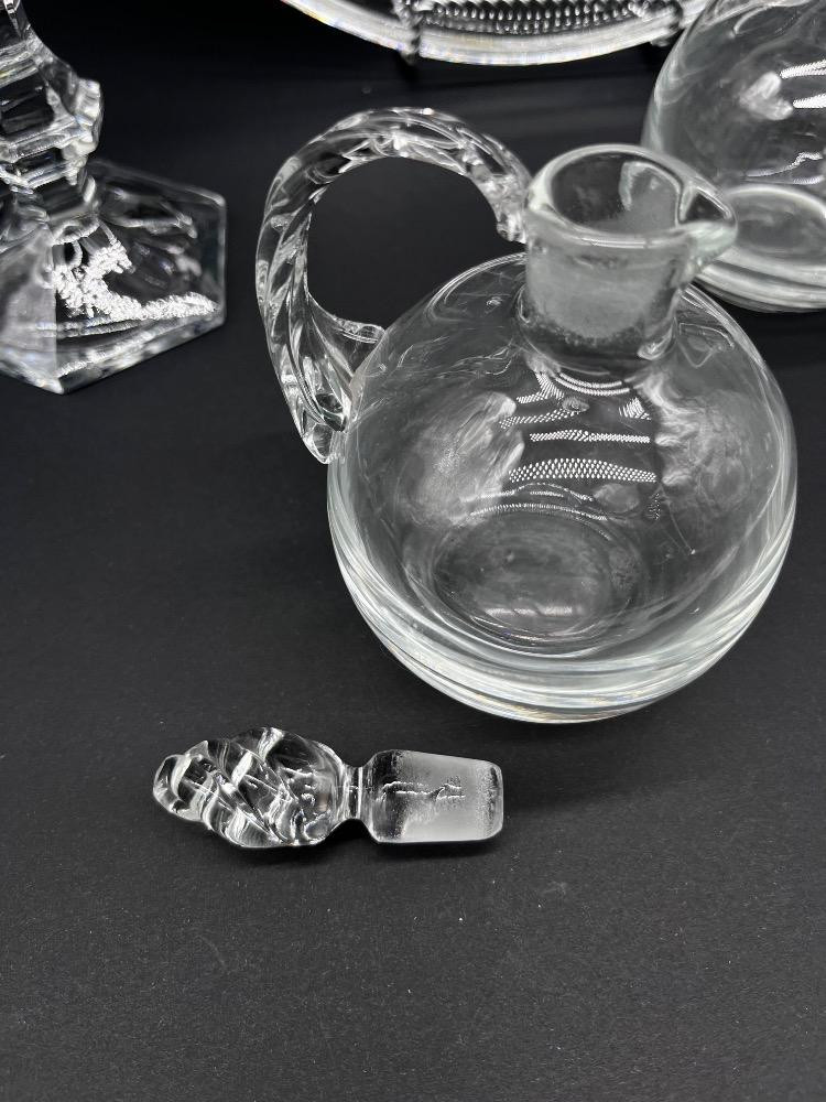 2 Crystal Cruet with Rose-Like Stopper – Twisted Handle & Elegant Design Small Scratches On Glass Tray