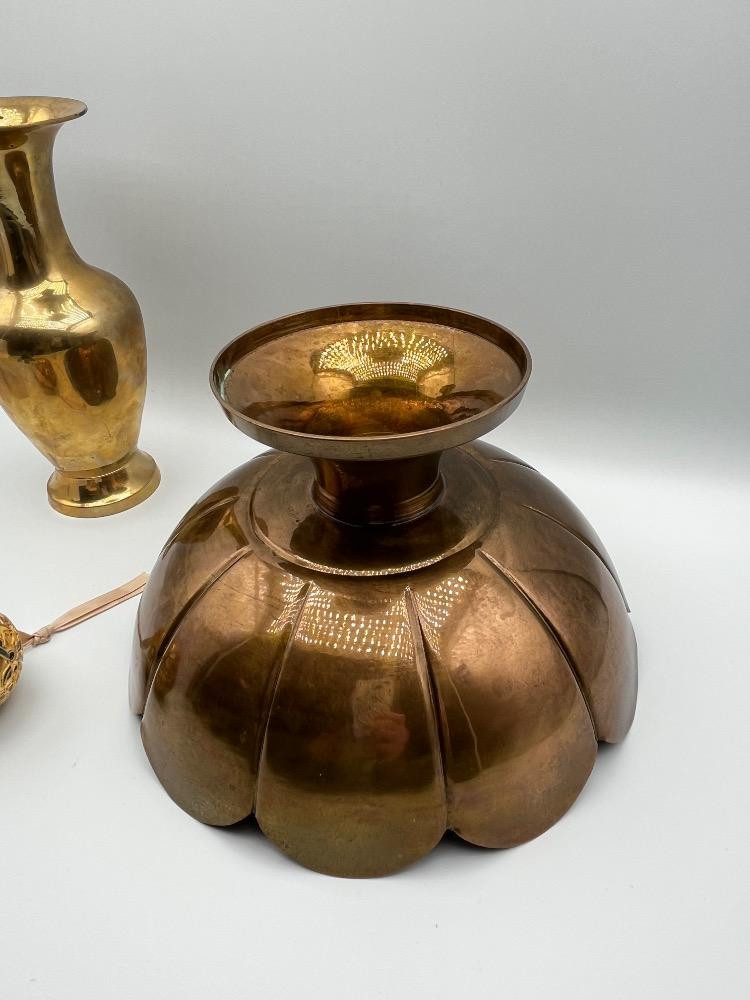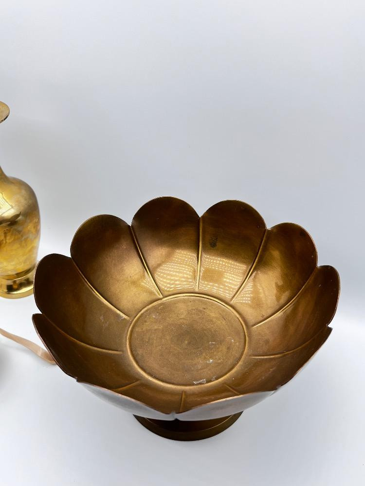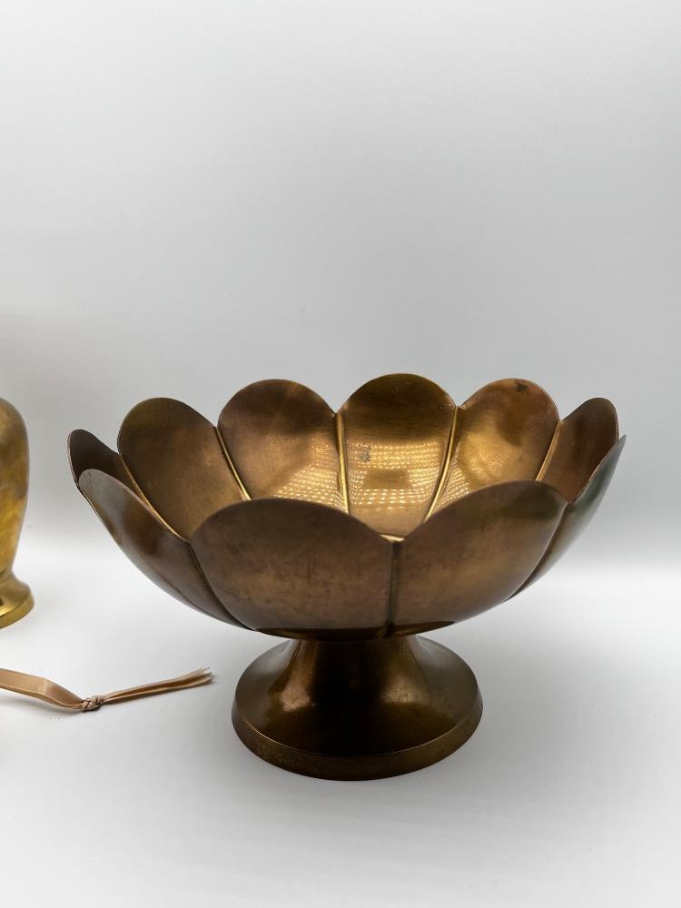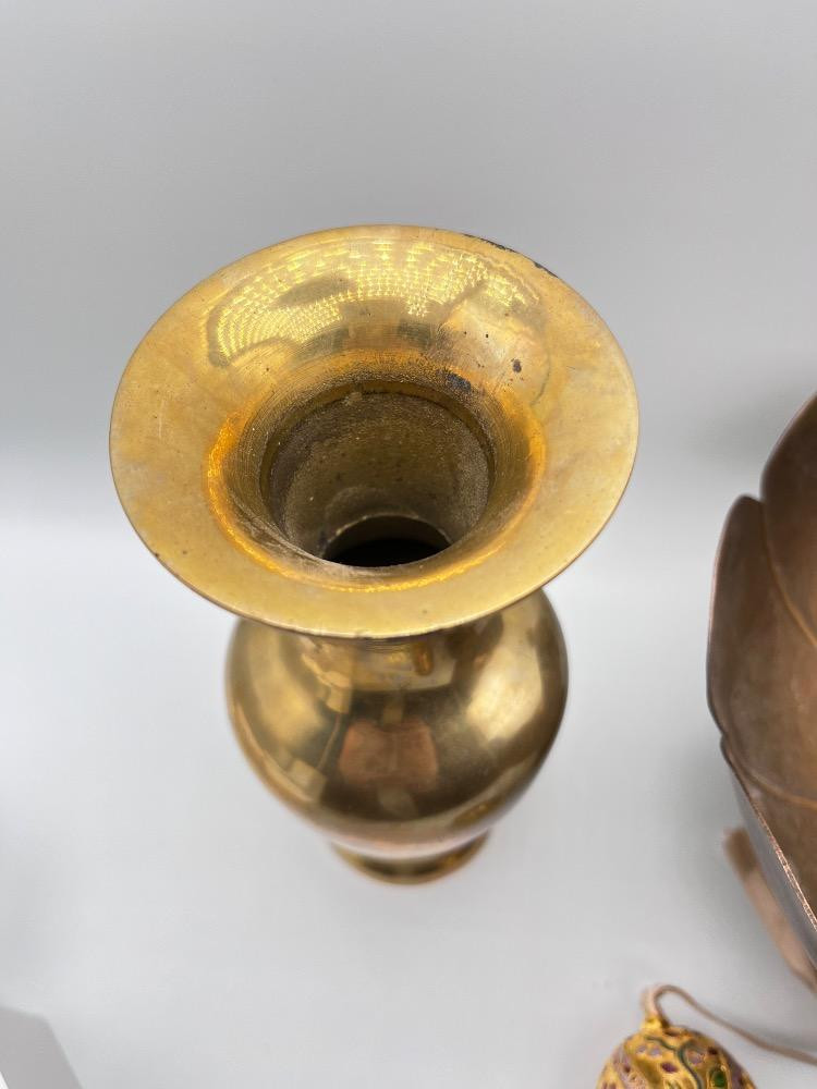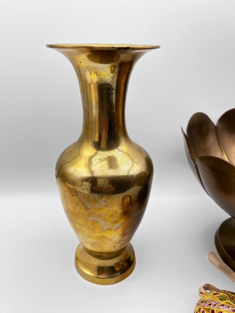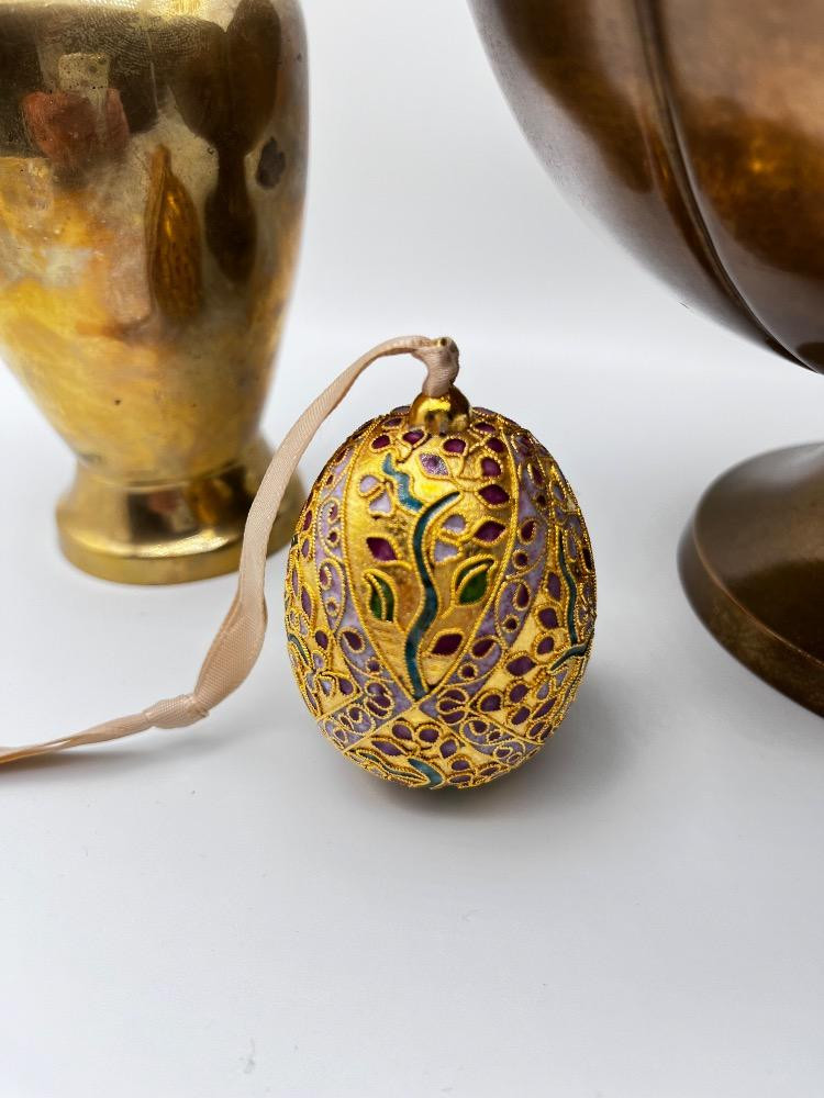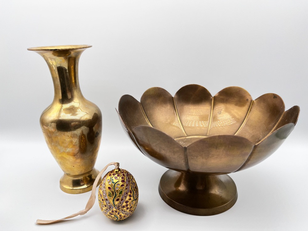 Lot # 165 - Indian Brass Vase, Lotus Bowl & Fabergé Style Egg Ornament