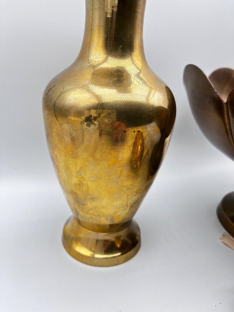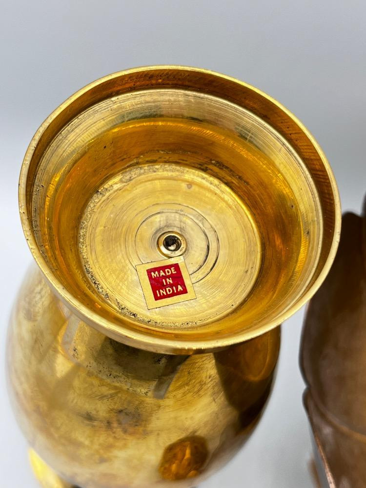 Indian Brass Vase, Lotus Bowl & Fabergé Style Egg Ornament. Vintage Polished Brass Vase – Made in India - 8" H
