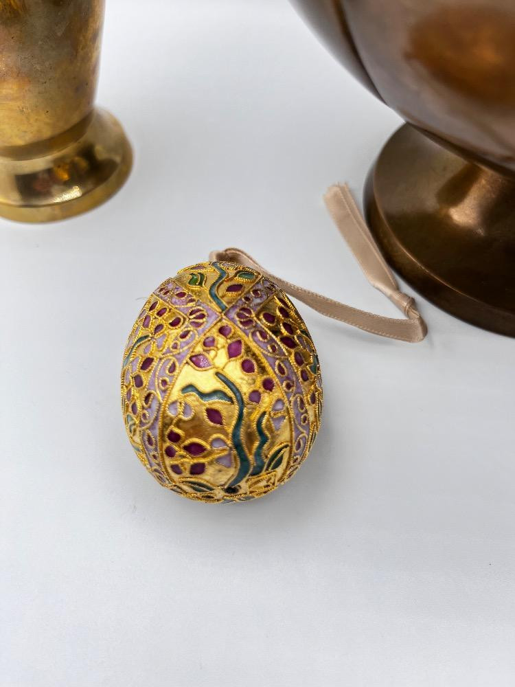 Ornate Fabergé Style Egg Ornament – Gold Filigree & Jewel-Tone Accents Disclaimer: We do not test the metals of the items listed for auction. By placing a bid, you acknowledge and agree that you are purchasing the item "as is" and without any guarantee of metal quality. We do not offer refunds based on metal content or purity.