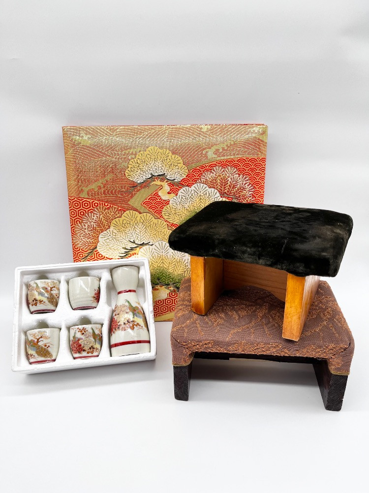 Lot # 172 - Vintage Japanese Sake Set, Photo Album & Footstools Lot