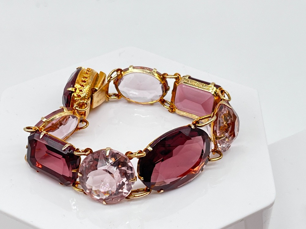 Lot # 173 - Vintage Amethyst Colored Jewelry - Bracelet, Pendant, & Brooch