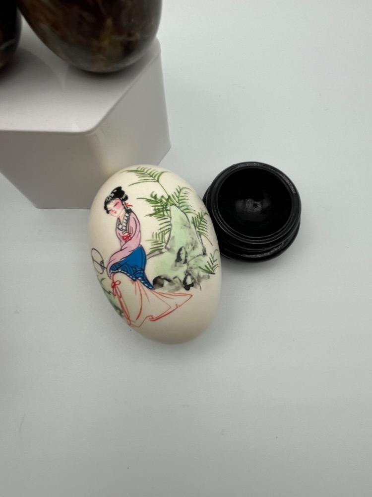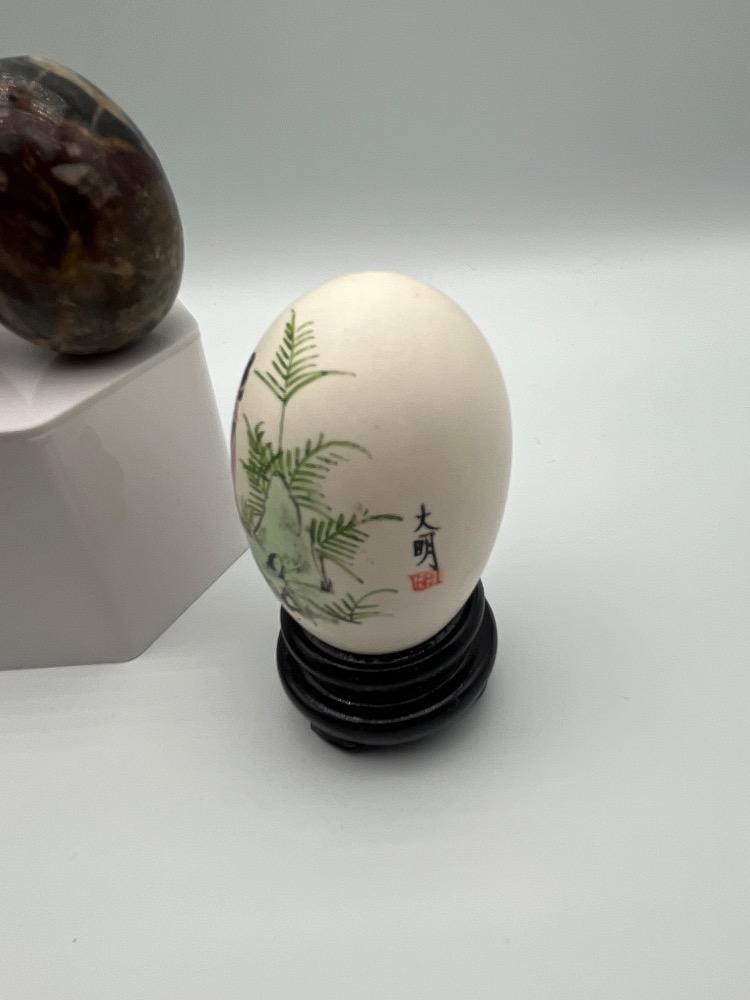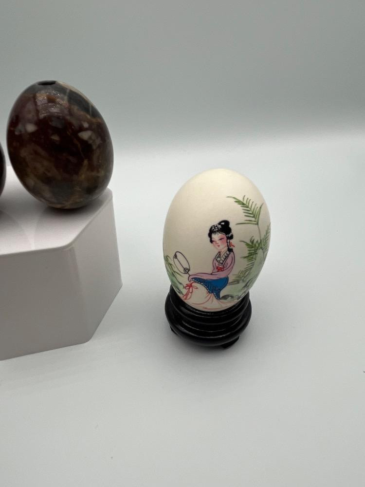 Lot # 184 - Hand-Painted Box, Chinese Hand Painted Egg, & 2 Polished Stone Eggs