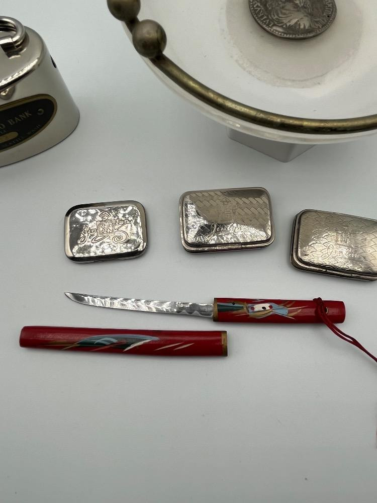 Lot # 185 - Sumitomo Bank Coin Bank, Lvervsavgarm VIIII Coin Replica, Mini Knife +