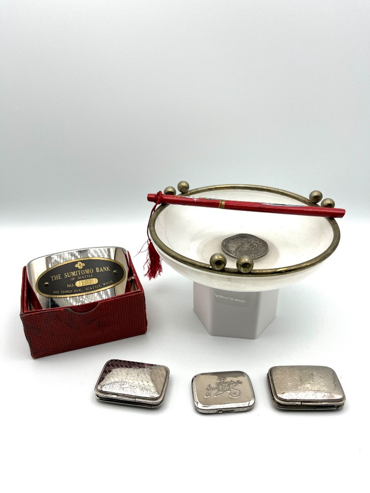 Sumitomo Bank Coin Bank, Lvervsavgarm VIIII Coin Replica, Mini Knife +