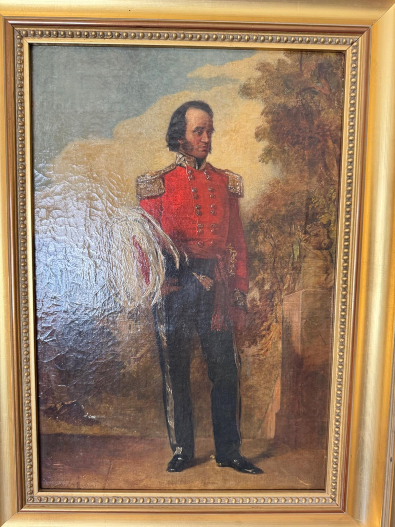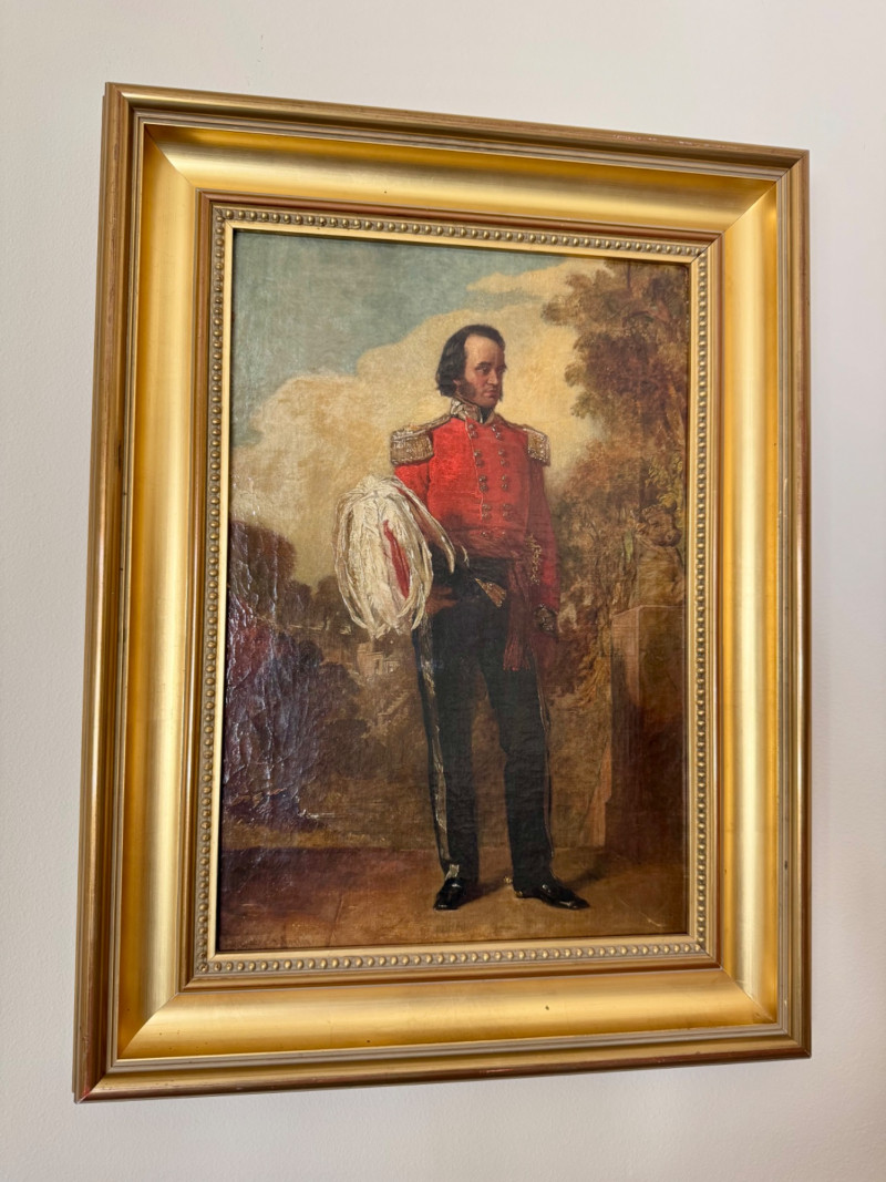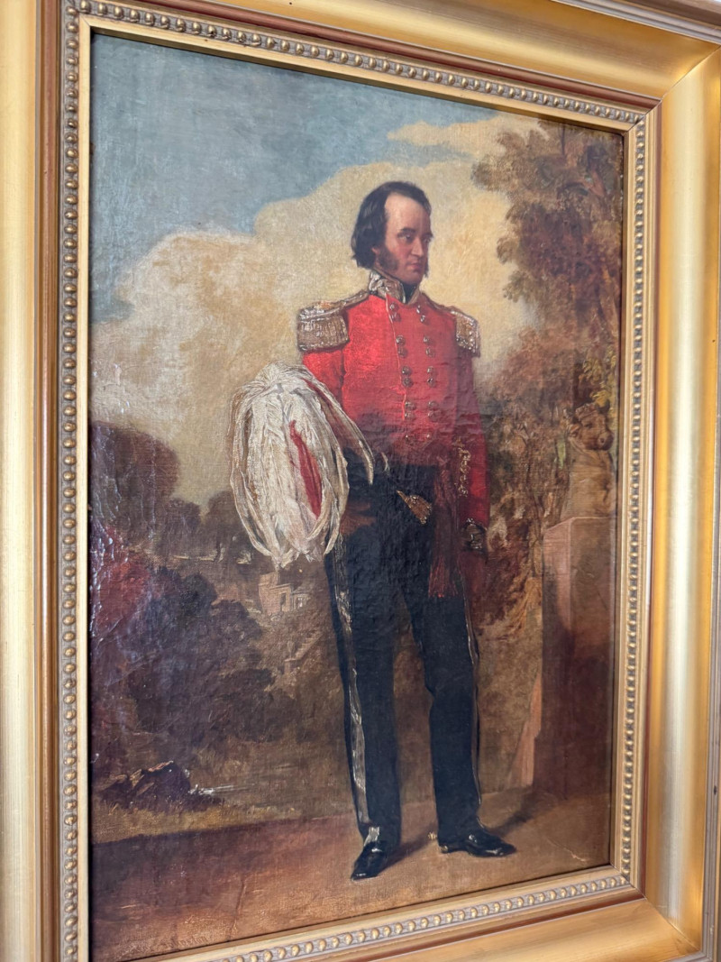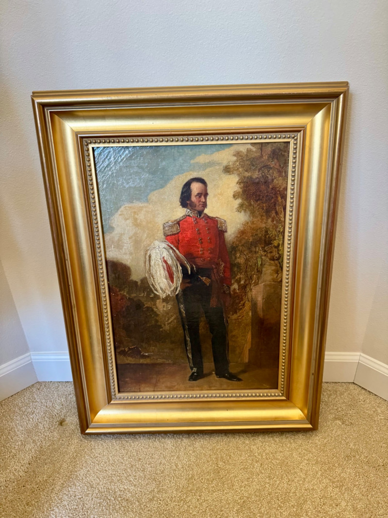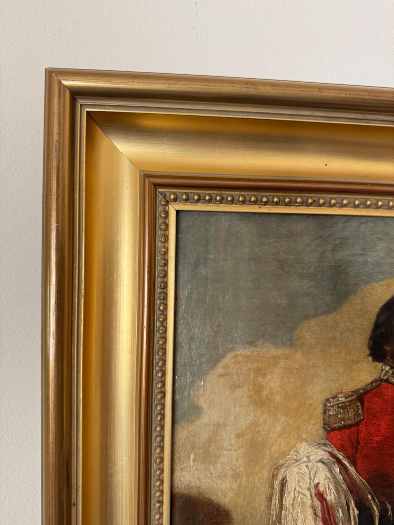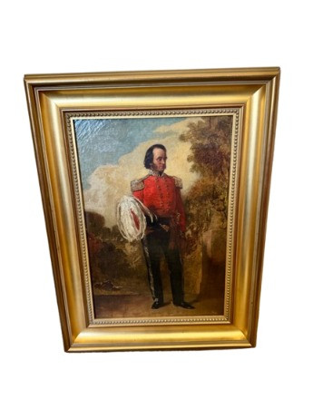 Alexander Johnston (1815–1891) – "Portræt af Officer" 19th C. Oil on Canvas. 19 x 25” Born in London, educated through the Royal Academy Schools. Johnston painted historical and military subjects, often in romanticized or narrative styles, with strong academic technique. He exhibited at the Royal Academy and other prestigious venues. This particular portrait, Portræt af officer, likely dates from the mid to late 1800s, and fits within his known style of dignified, full-length military portraits.Alexandre Johnston (1815–1891)