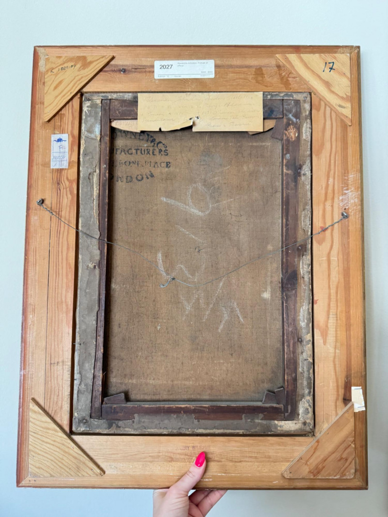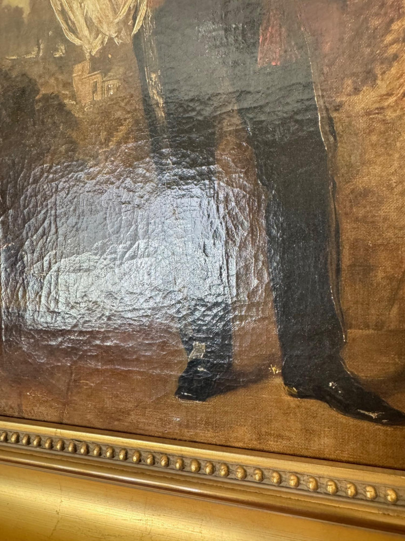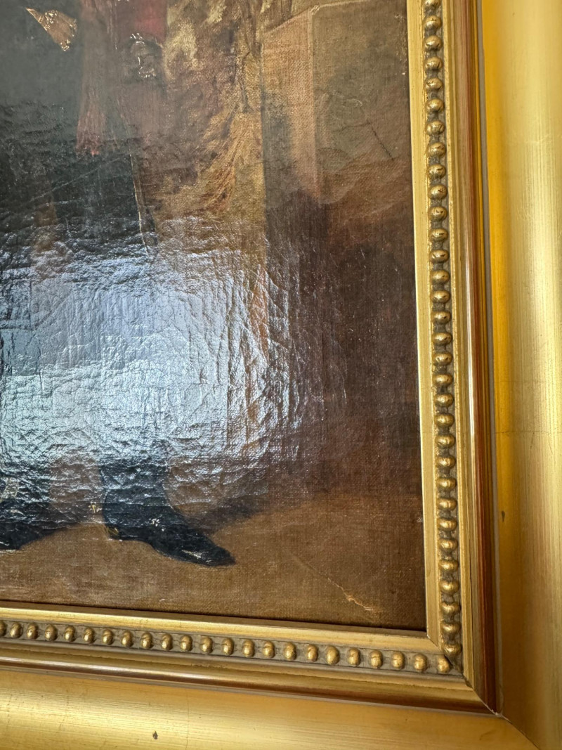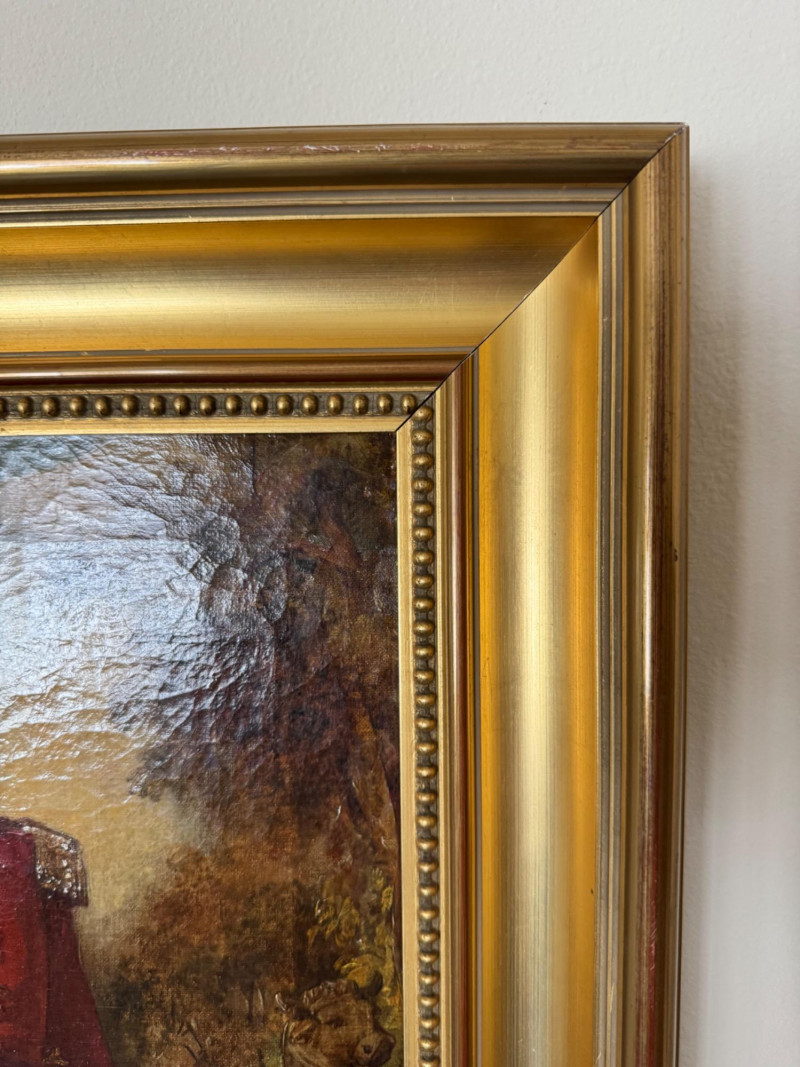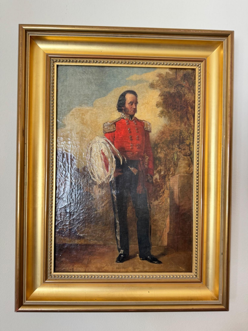 Alexander Johnston (1815–1891) – "Portræt af Officer" 19th C. Oil on Canvas. 19 x 25” Born in London, educated through the Royal Academy Schools. Johnston painted historical and military subjects, often in romanticized or narrative styles, with strong academic technique. He exhibited at the Royal Academy and other prestigious venues. This particular portrait, Portræt af officer, likely dates from the mid to late 1800s, and fits within his known style of dignified, full-length military portraits.Alexandre Johnston (1815–1891)