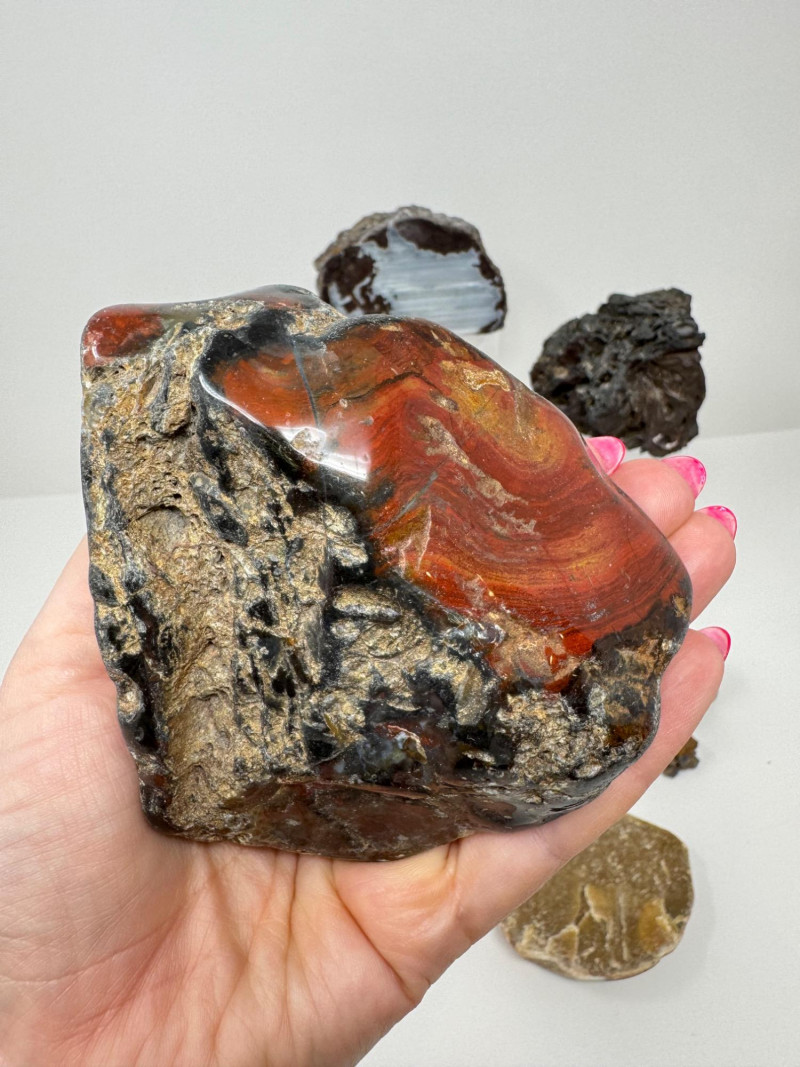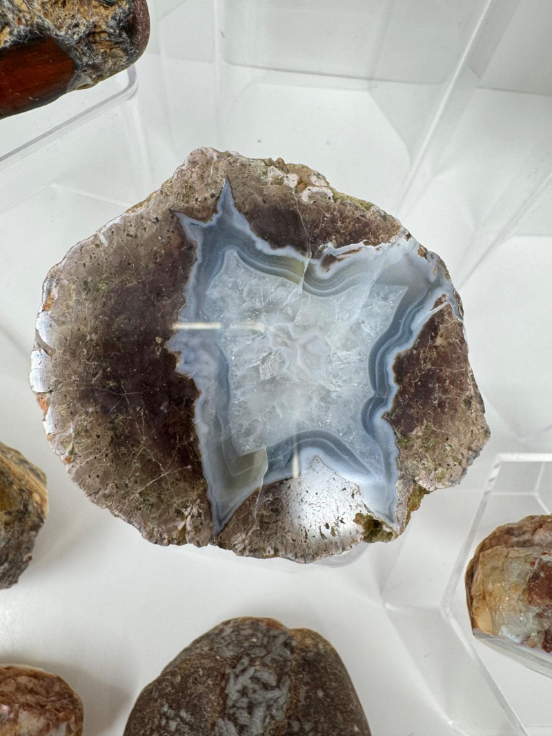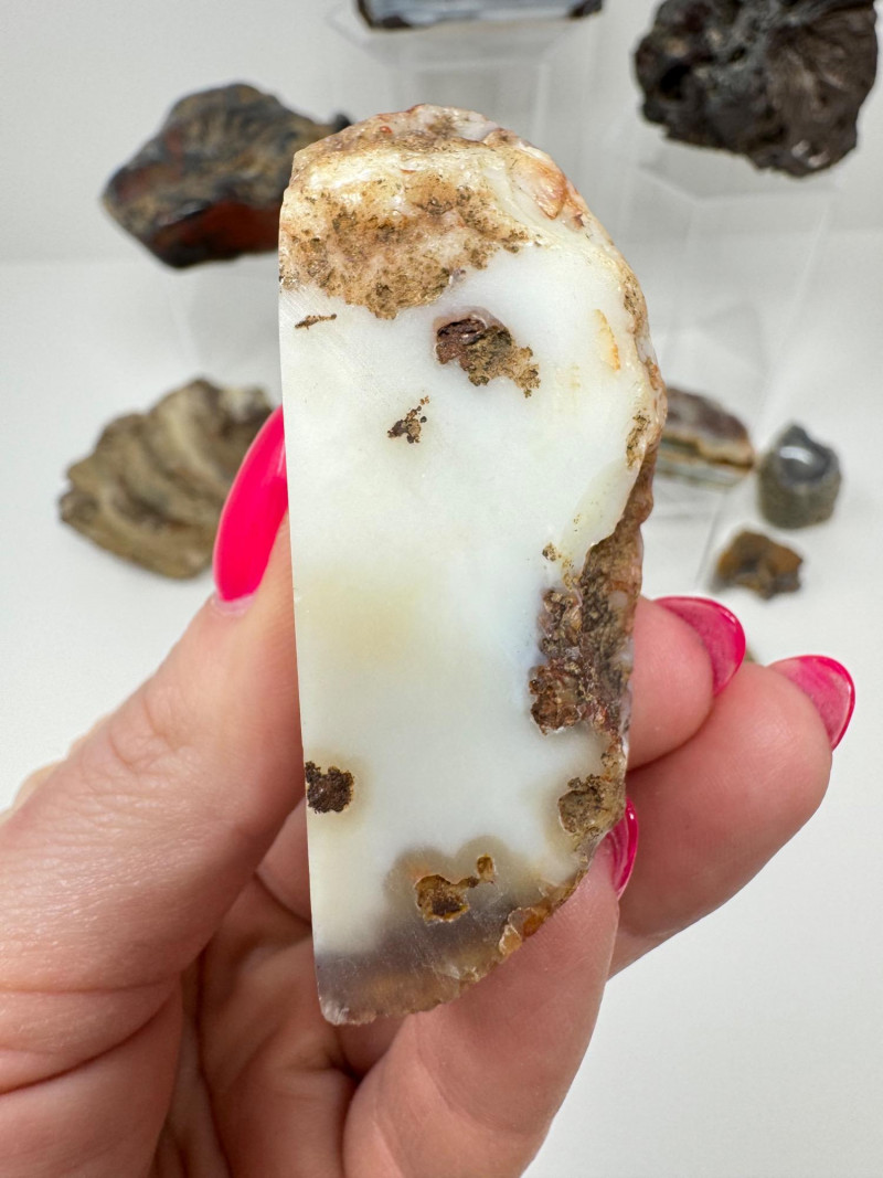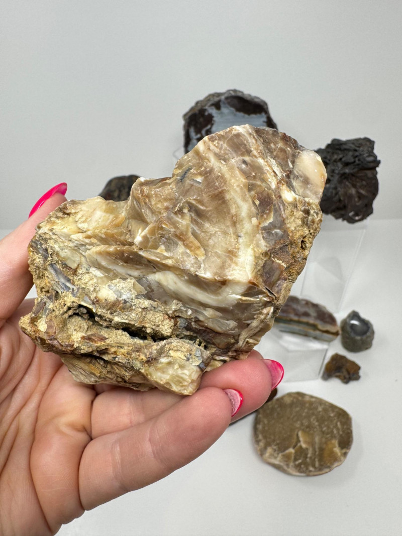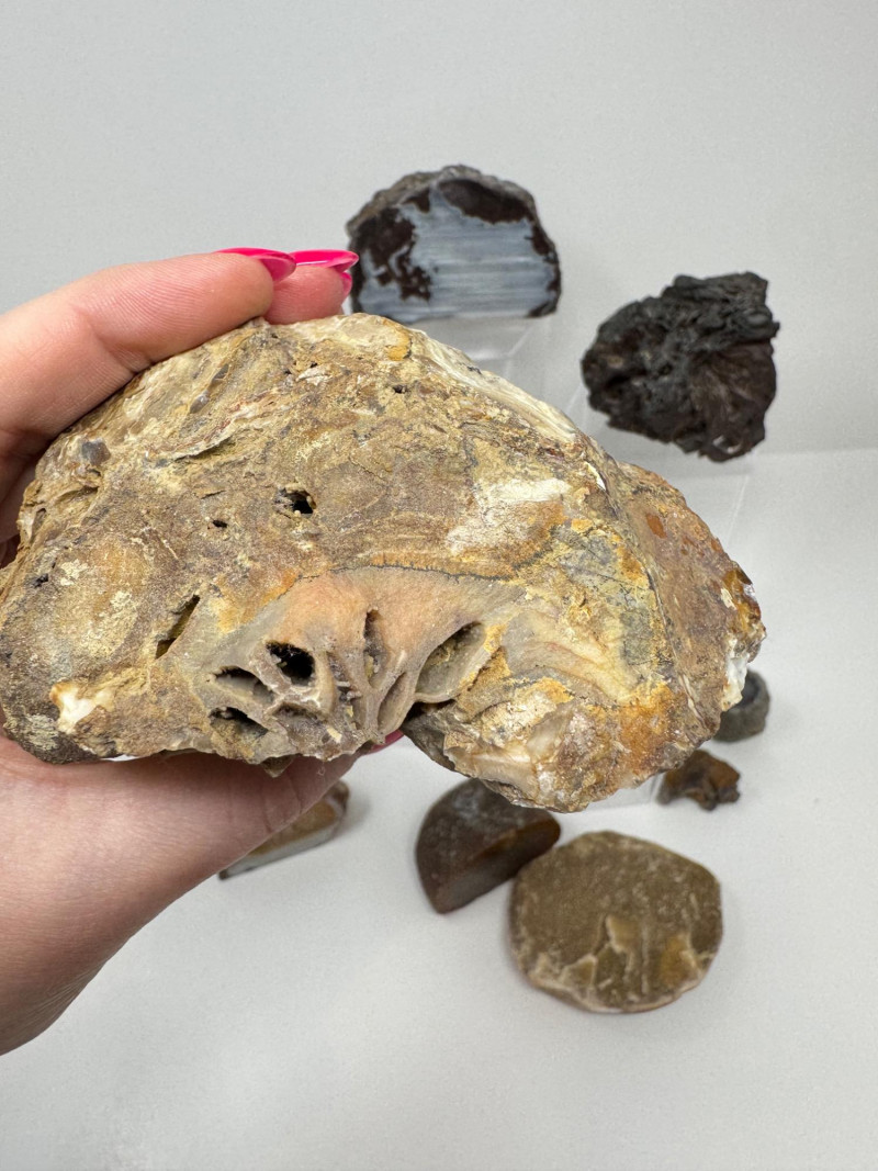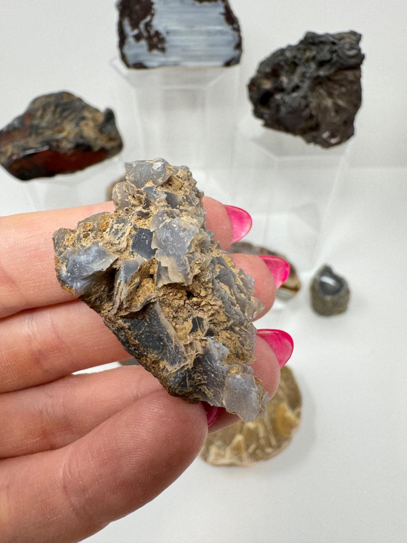 Natural Agate Slices & Rugged Stone Fossil Specimens - Set 1. Please note: These mineral specimens have not been professionally tested or identified. They are offered "as-is" based on visual assessment. Bid accordingly.